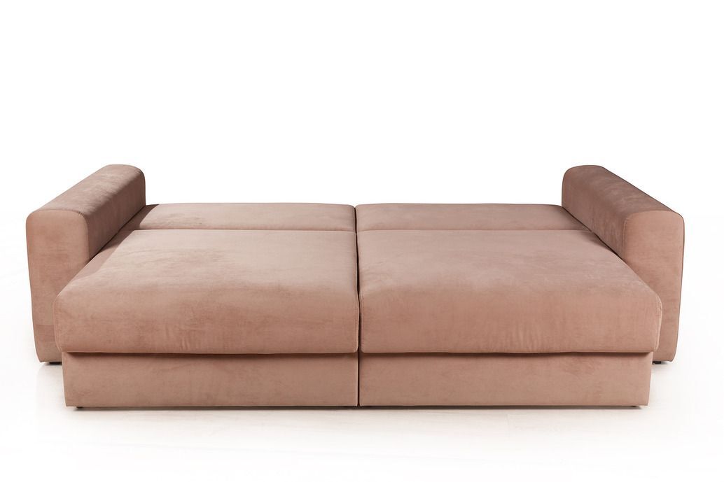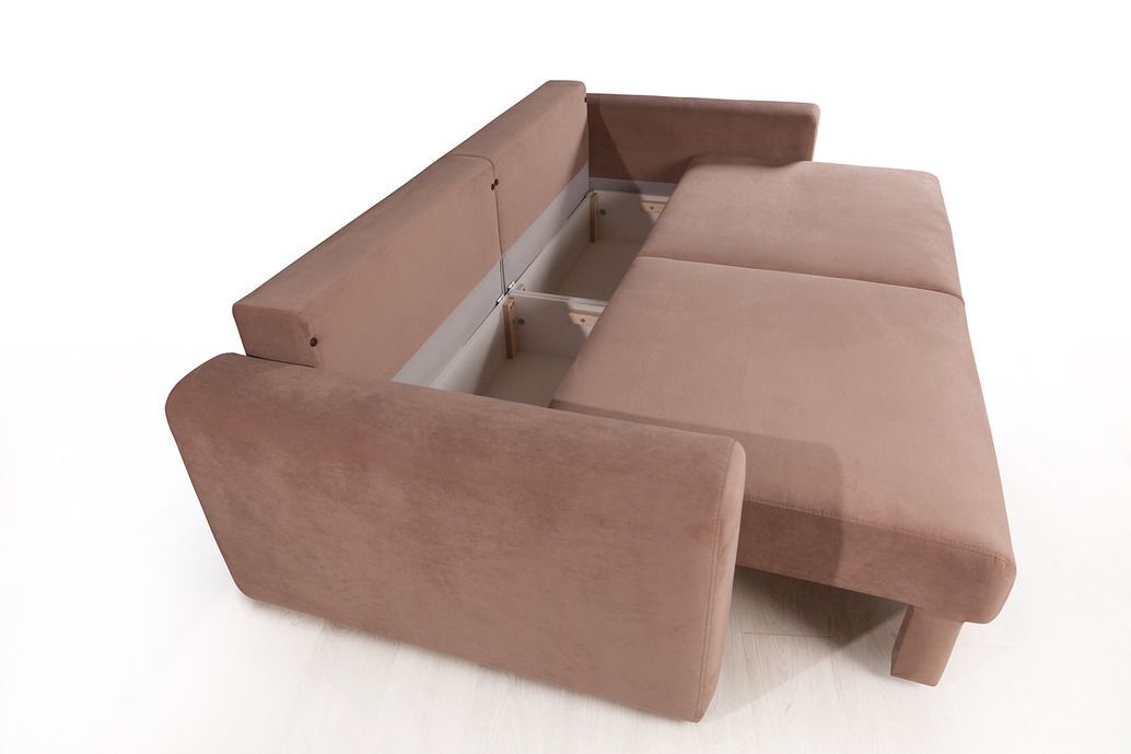 Части сиденья дивана легко выдвигаются вперёд по направляющим, открывая бельевые ящики. Спинка опускается на освободившееся место.