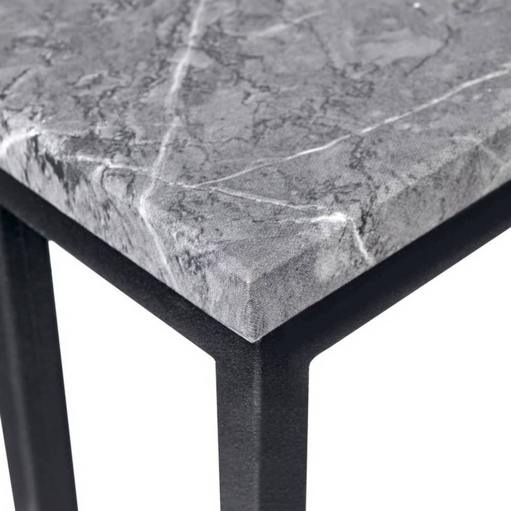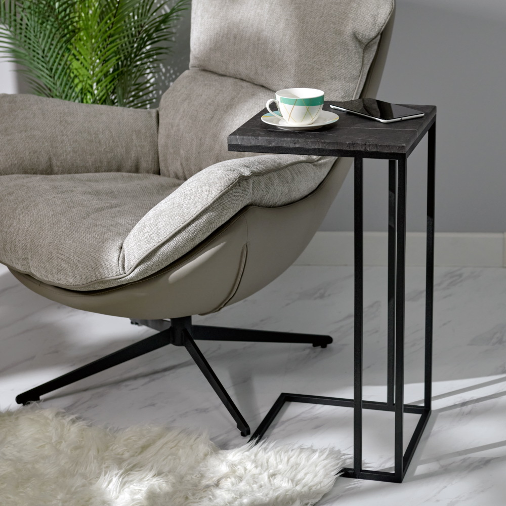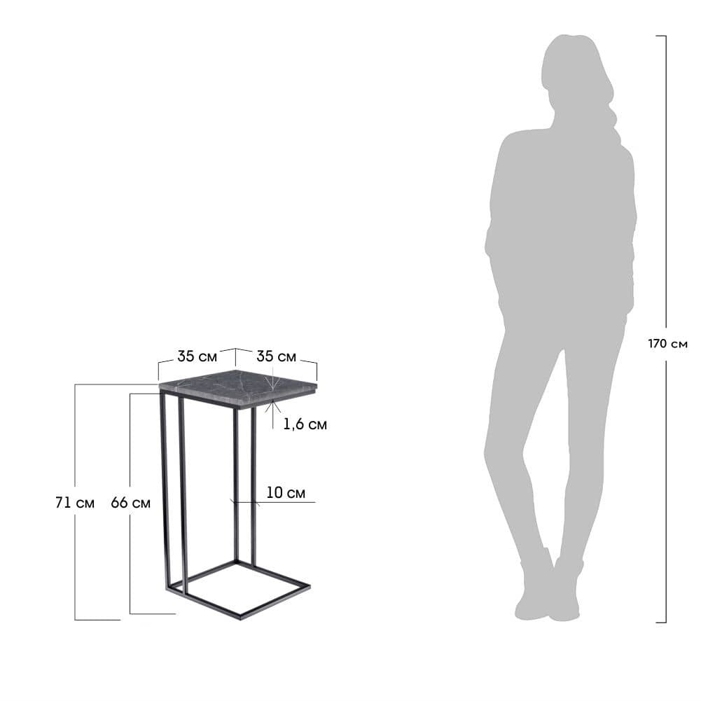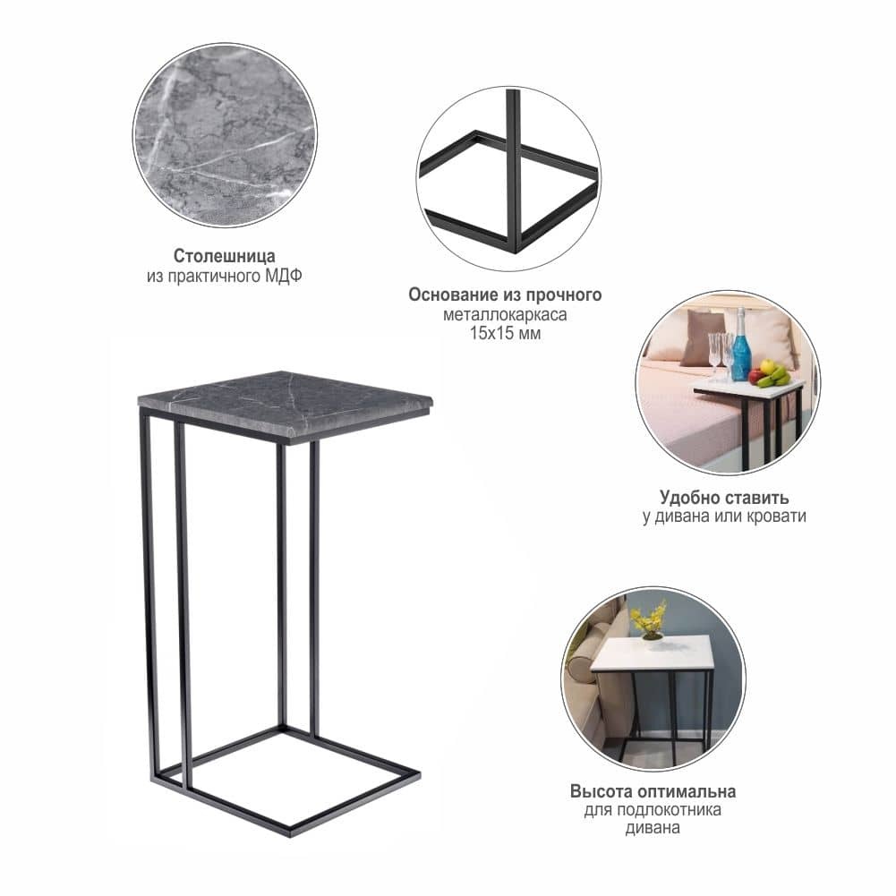 Придиванный столик Loft станет настоящим дополнением к интерьеру в современном стиле. Столик не займет много места и легко поместится рядом с диваном или креслом. Конструкция столика позволяет расположить столешницу прямо над диваном или боковиной дивана, что достаточно удобно и функционально. Столик выполнен из прочного ЛДСП оттенка серый мрамор, что придает ему изящный вид, а черные металлические ножки добавляют конструкции дополнительную прочность и устойчивость. Будьте уверены, что столик Loft станет удачным приобретением для вашего уютного уголка.