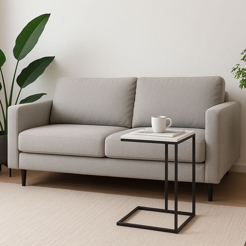 Придиванный столик Loft - это стильный и функциональный предмет мебели, который дополнит интерьер в современном стиле. Loft не займет много места и легко поместится рядом с диваном или креслом. Конструкция столика позволяет расположить столешницу прямо над диваном или боковиной дивана, что достаточно удобно и функционально. Столик выполнен из прочного ЛДСП оттенка белый мрамор, что придает ему изящный вид, а черные металлические ножки добавляют конструкции дополнительную воздушность и устойчивость. Будьте уверены, что столик Loft станет удачным приобретением для вашего уютного уголка.
