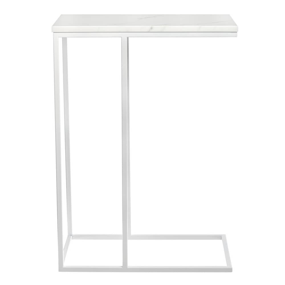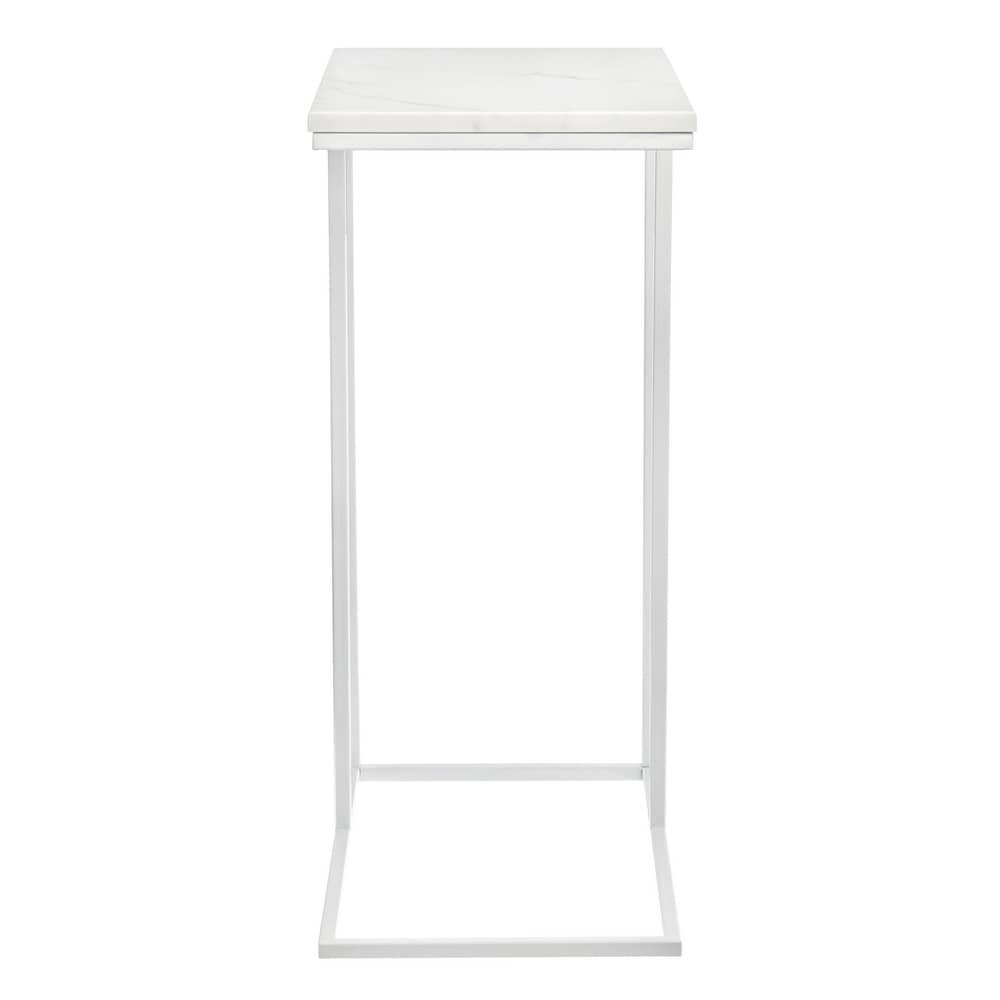 Придиванный столик Loft станет настоящим дополнением к интерьеру в современном стиле. Столик не займет много места и легко поместится рядом с диваном или креслом. Конструкция столика позволяет расположить столешницу прямо над диваном или боковиной дивана, что достаточно удобно и функционально. Столик выполнен из прочного ЛДСП оттенка белый мрамор, что придает ему изящный вид, а белые металлические ножки добавляют конструкции дополнительную изящность и устойчивость. Будьте уверены, что столик Loft станет удачным приобретением для вашего уютного уголка.