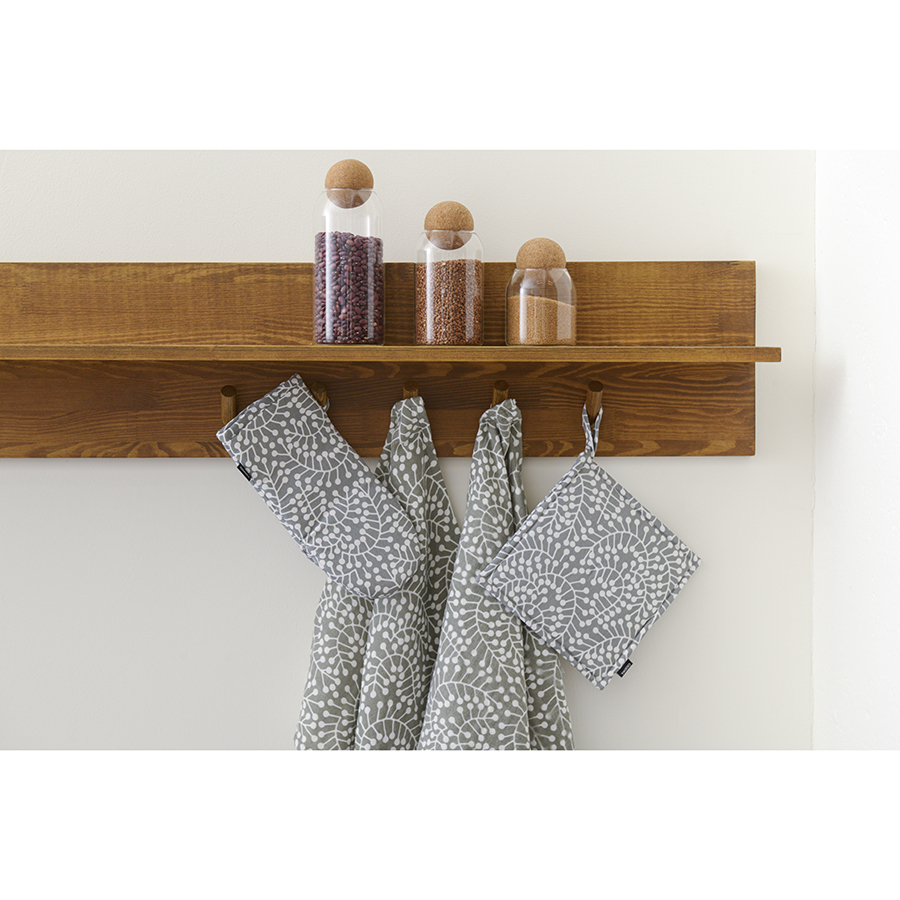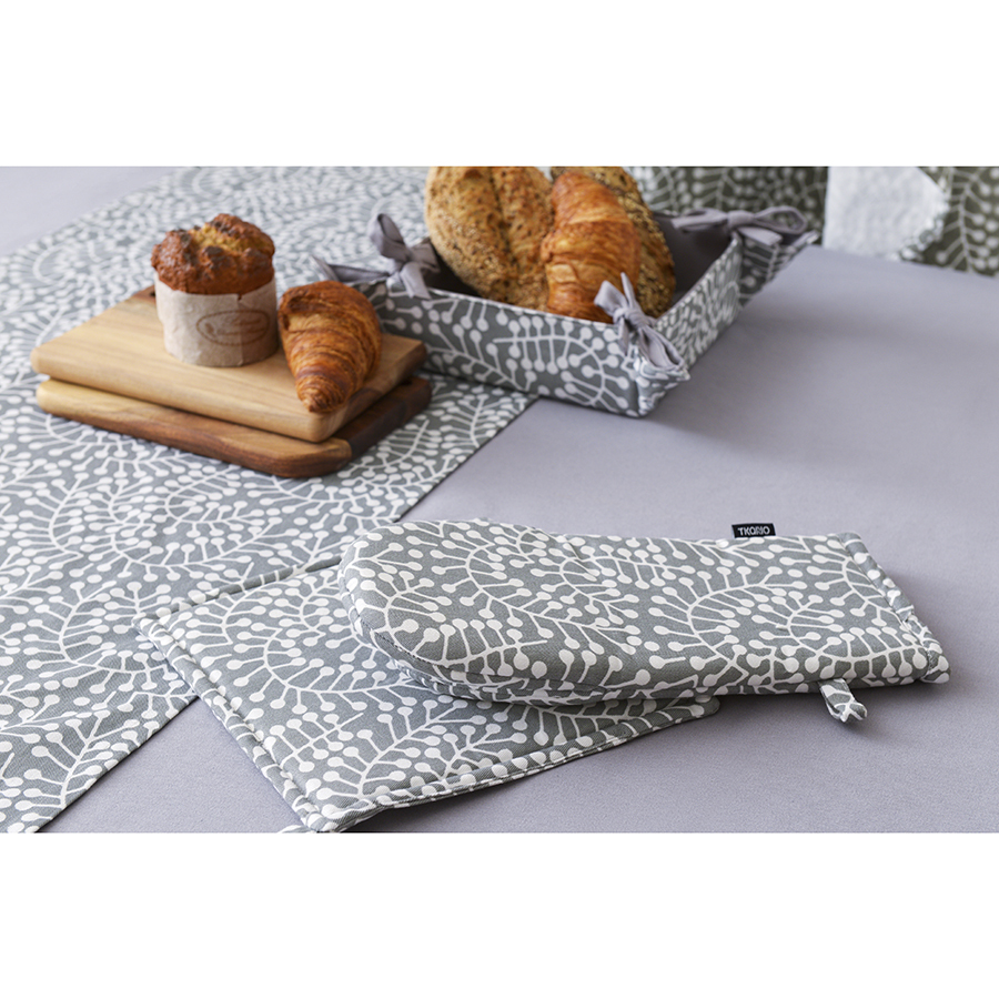 Прихватка серого цвета с принтом Спелая Смородина из коллекции Scandinavian touch – практичный и полезный кухонный аксессуар. Рисунок со стилизованными ягодами смородины и округлыми линиями веточек разработан одним из ведущих финских дизайнерских агентств. Изделие хорошо сочетается с другим кухонным текстилем из этой же коллекции, оно станет ярким акцентом в интерьере кухни и гармонично впишется в любой современный стиль. Прихватка не нагревается и хорошо защищает от контакта с горячими поверхностями. Есть удобная петелька для подвешивания.