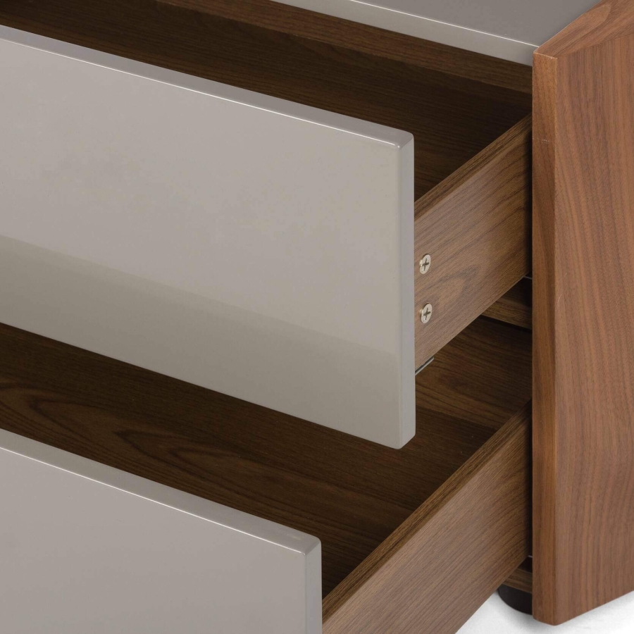 Эта тумба выделяется своим лаконичным и минималистичным дизайном, что делает её универсальным решением для различных стилей интерьеров. Теплый серый цвет добавляет глубину и текстуру, а натуральные элементы ореха подчеркивают изысканность.