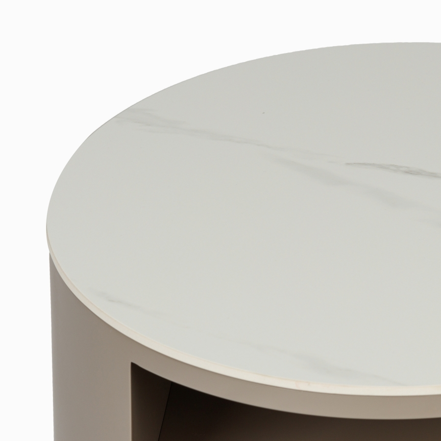 Столешница выполнена из керамики, что придает тумбе современный и стильный вид. Керамика устойчива к царапинам и легко моется, что делает её практичной для использования. Тумба оснащена вместительным ящиком, который позволяет организовать хранение различных предметов — от книг и очков до мелких аксессуаров.