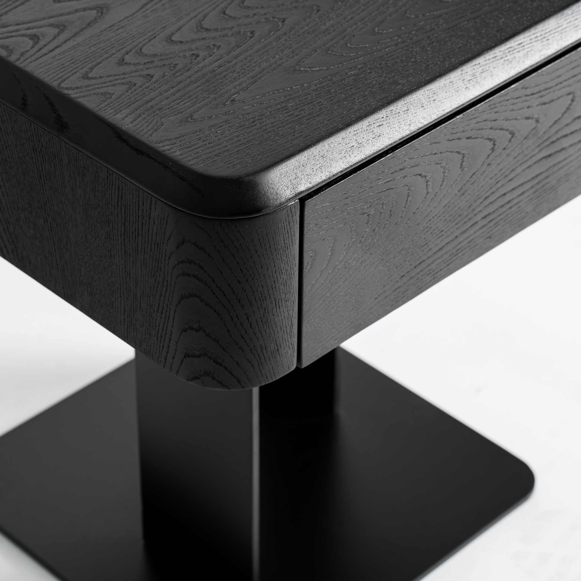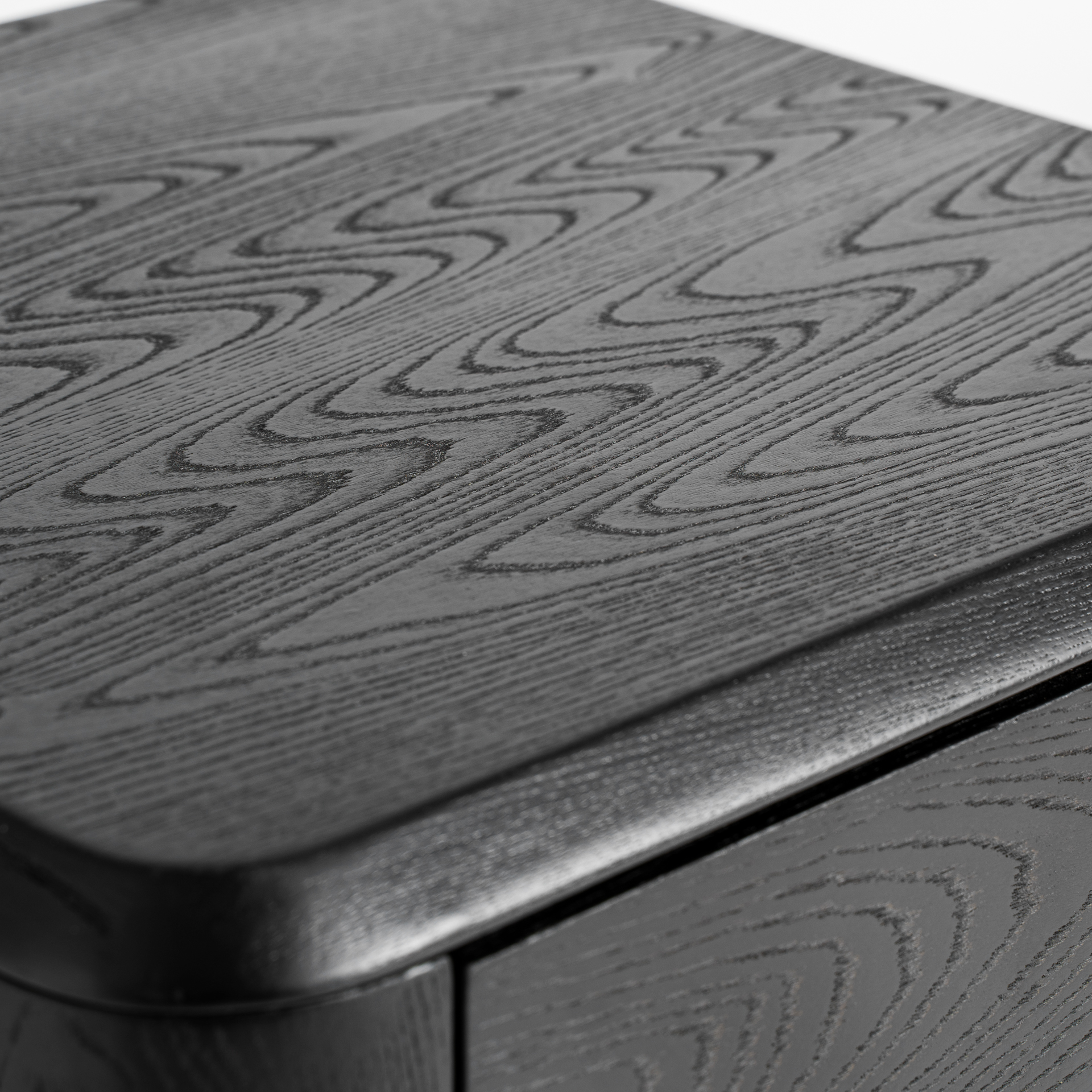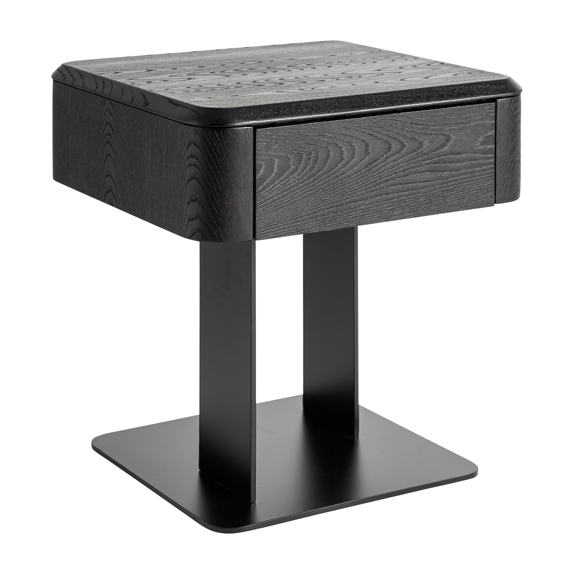 Прикроватная тумбочка Caiza в современном стиле, изготовлена из черного МДФ в сочетании со шпоном черного вяза и черным железом.