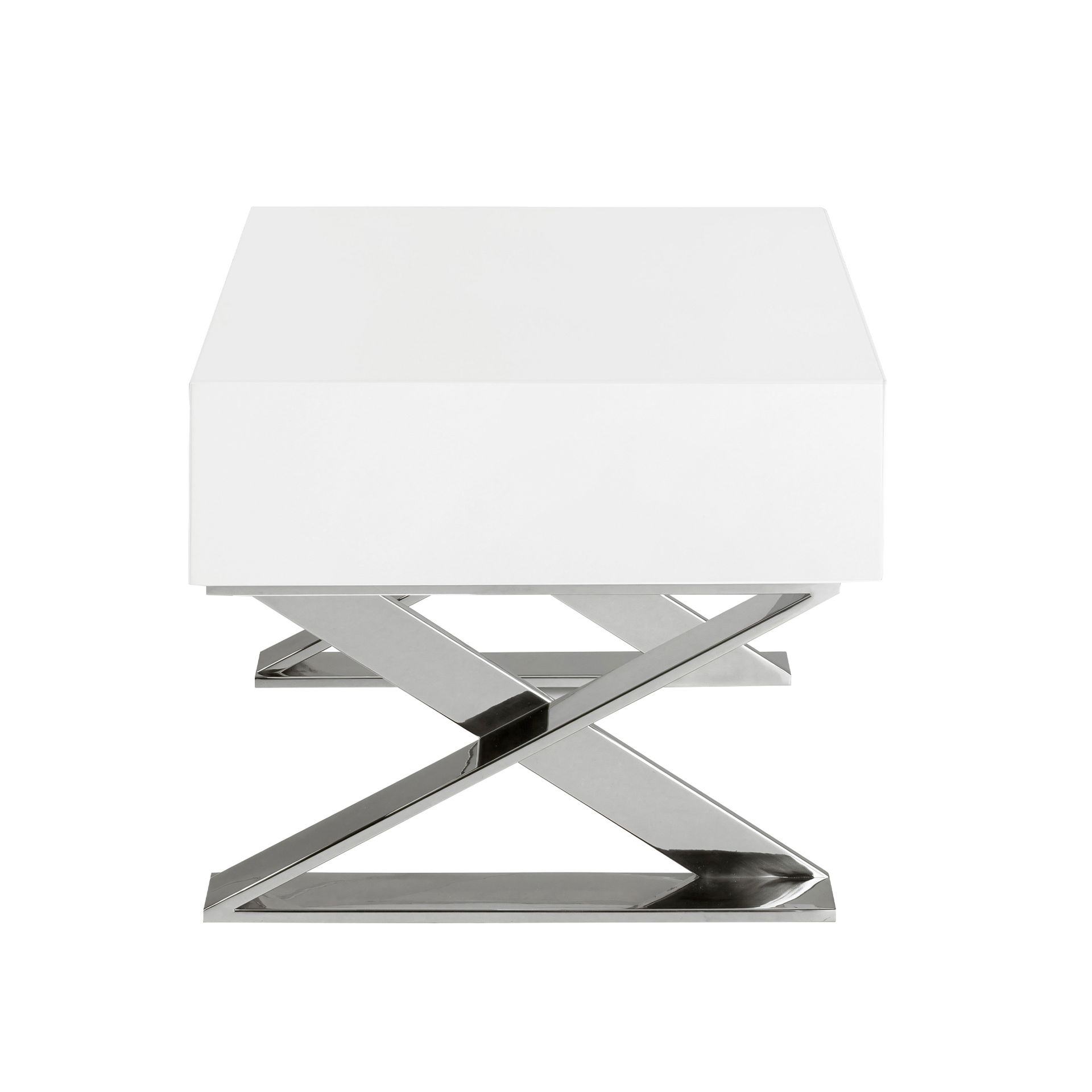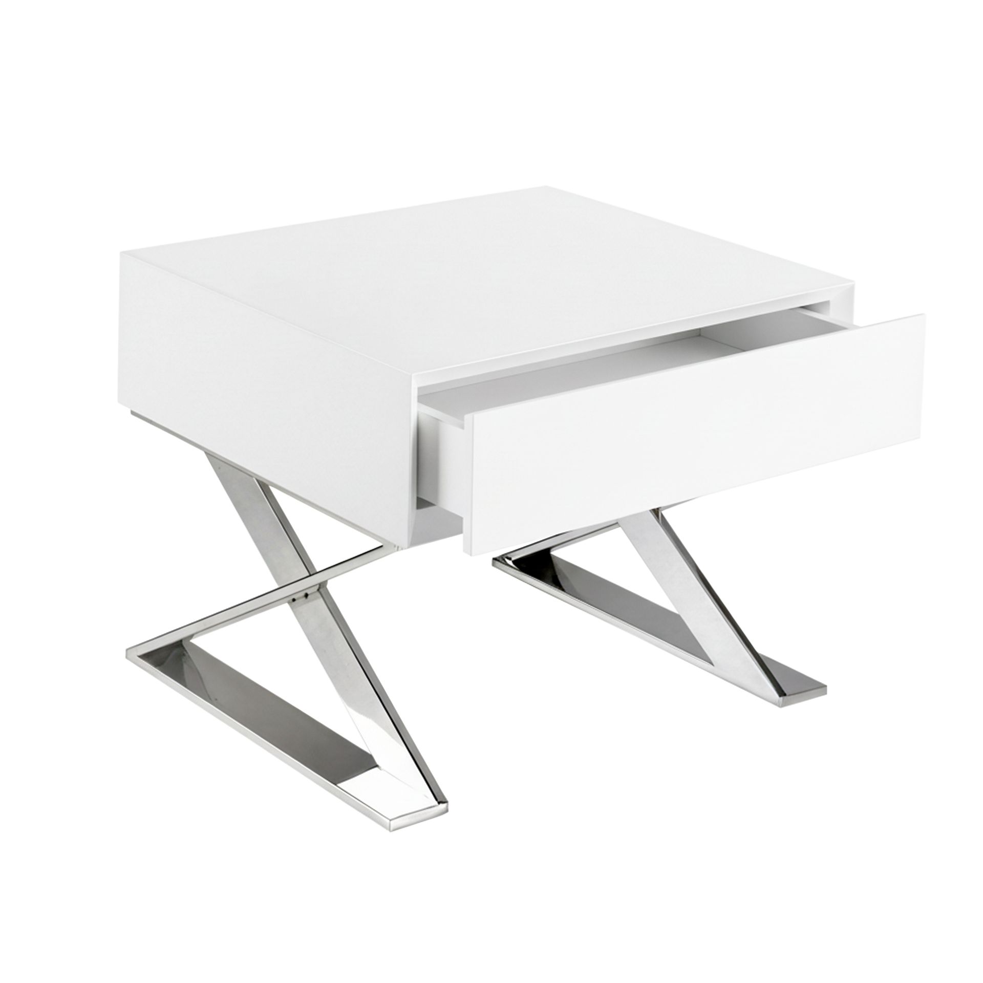Прикроватная тумбочка LE373 от Angel Cerda – необычный дизайн для современных интерьеров. Прикроватная тумбочка LE373 очаровывает с первой секунды. Ее оригинальное исполнение будоражит воображение. Ведь такой дизайн выглядит не просто современно, но и уникально. Рискнув укоротить каркас до высоты ящика и поставив его на две высокие крестовые ноги, создателям удалось изготовить модель неординарную, подходящую как для спальни, так и для гостиной. Прикроватная тумбочка по сути состоит из одного выдвижного ящика и двух крестовых опор. Все грани у ящика одинаковые, т.е фасадная его часть никак не выделена. Это позволяет ставить тумбу любой стороной по отношению к другой мебели. Изделие оснащено доводчиками и прочными металлическими направляющими. Материал изготовления – МДФ белого цвета с лаковым покрытием (в базовом варианте). Ножки сделаны из хромированной стали. Они имеют рамочно-крестовую конструкцию и крепятся симметрично друг от друга по краям нижней грани. Благодаря большой площади опоры, обеспечивается хорошая устойчивость на любом напольном покрытии. Вес тумбочки составляет 27 кг. Габариты изделия: ширина – 50 см, высота – 38 см, глубина – 48 см. Ножки потребуется прикрутить самостоятельно. Крепеж и инструкция включены в комплектацию.