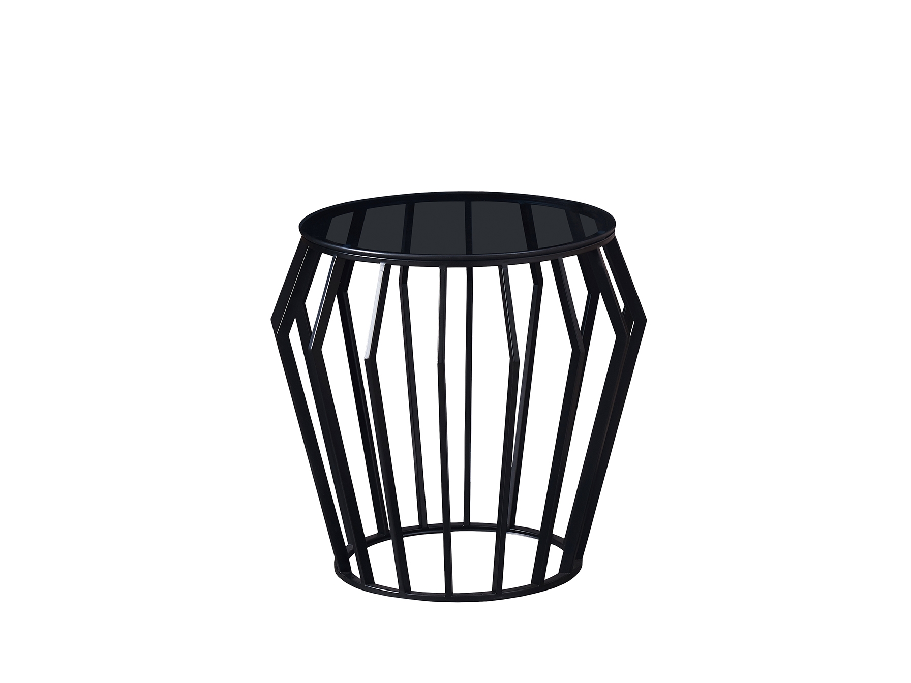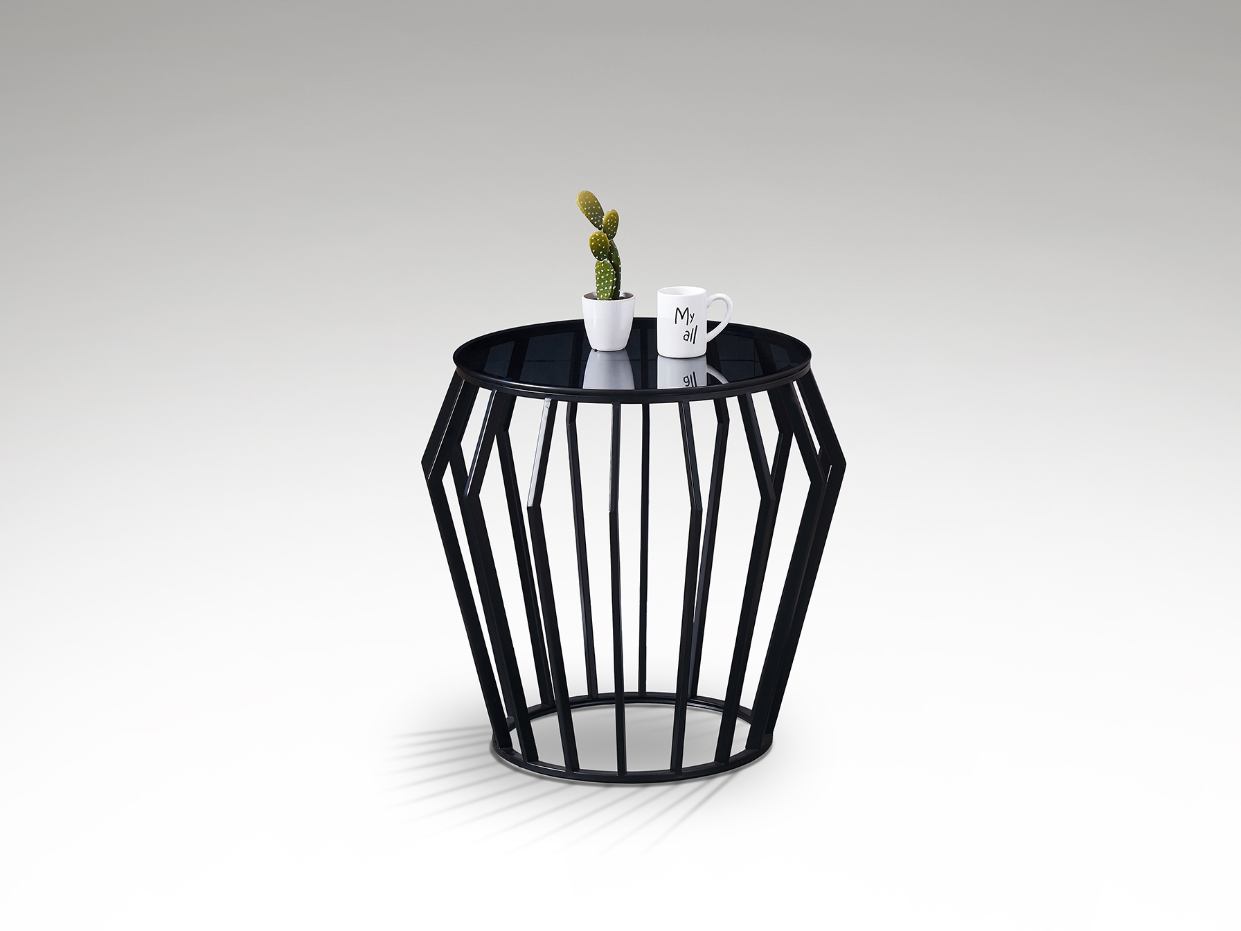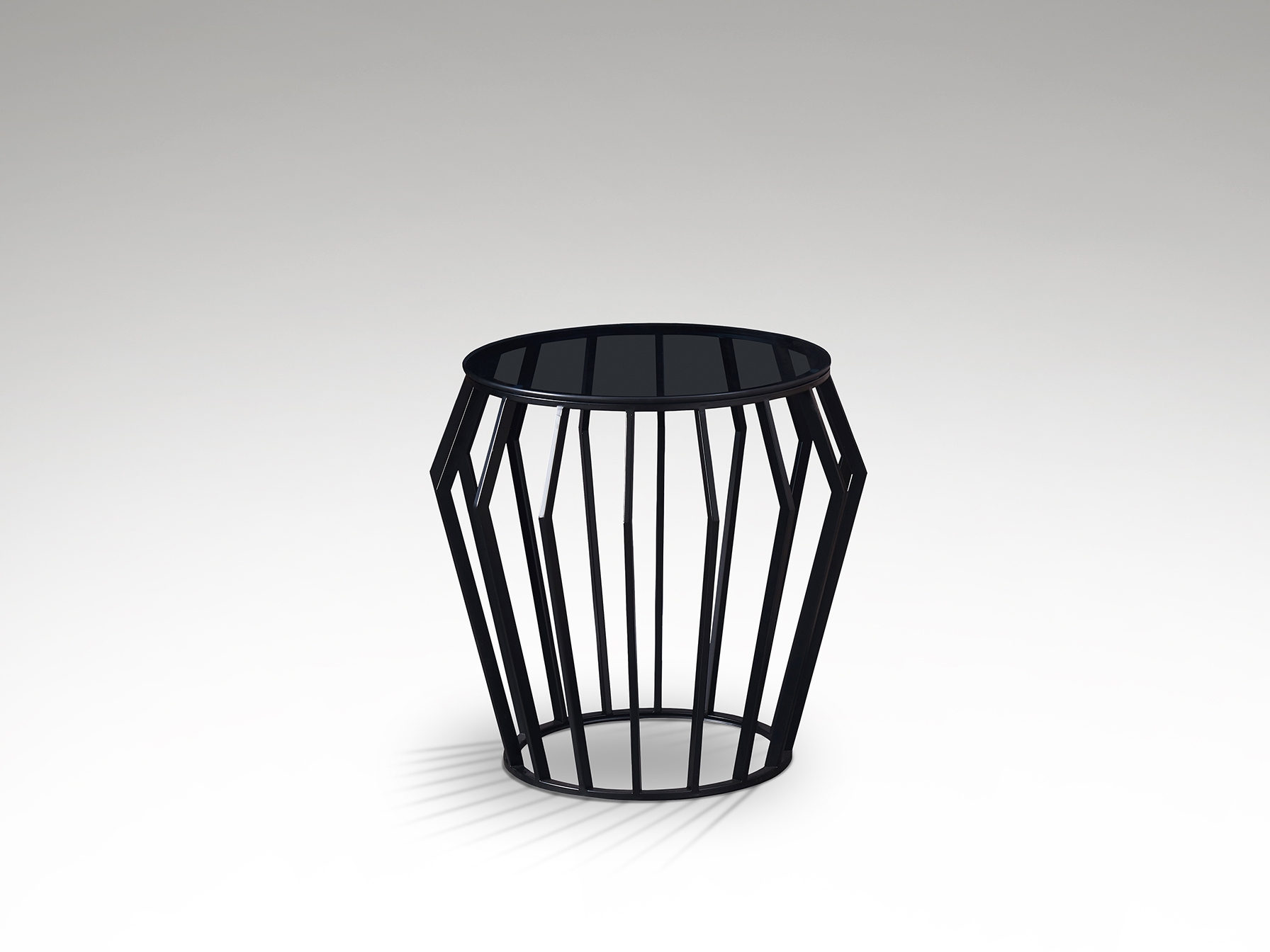 Стол-подставка из металла, черная матовая отделка. Верхняя часть из дымчатого стекла толщиной 8 мм.