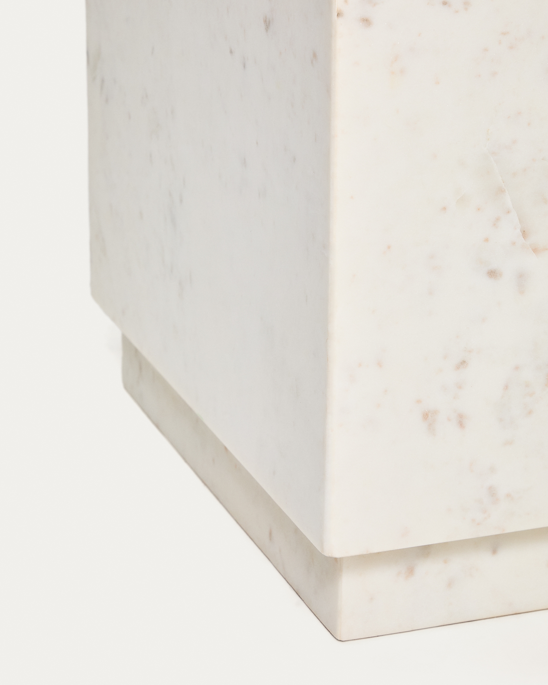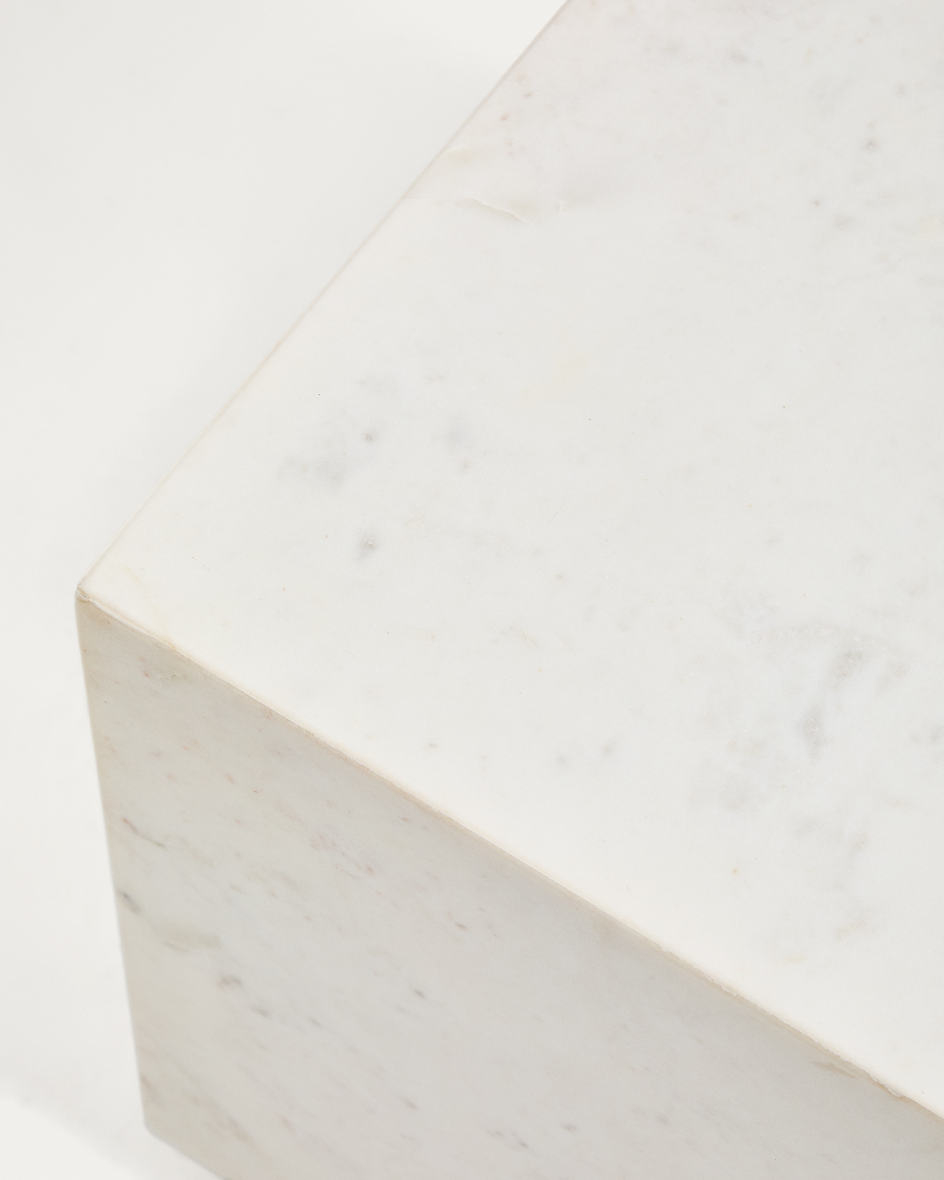 Столы Sorein сочетают в себе прочность мрамора и изысканный геометрический дизайн, который придаёт индивидуальность любому помещению. Они изготовлены из цельных плит толщиной 15 мм, собранных в куб с безупречными линиями. Полая внутренняя часть облегчает вес и облегчает транспортировку, сохраняя при этом прочность, характерную для этого материала. Каждый стол уникален, имеет свои оттенки и прожилки, что делает его эксклюзивным предметом. В комплект входят пластиковые защитные накладки на основание для предотвращения царапин.