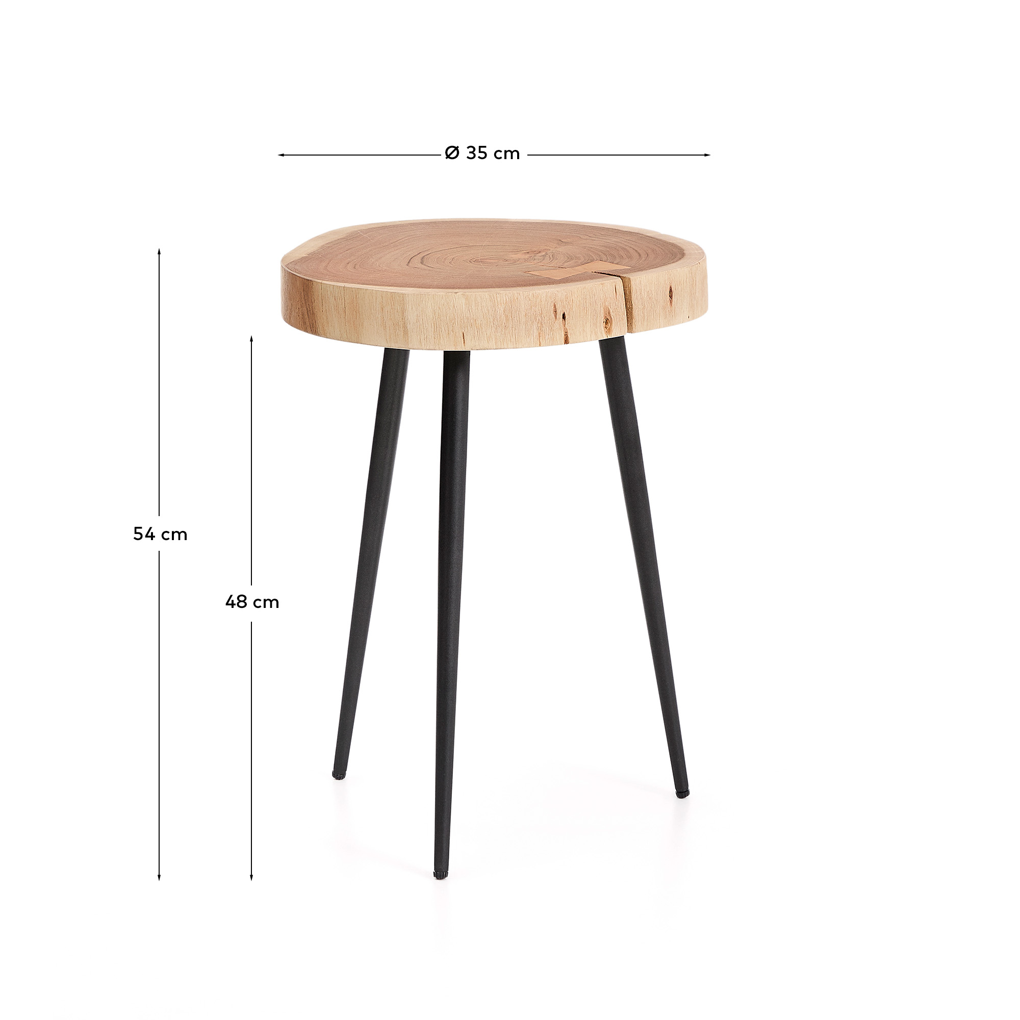 Tanive изготовлен из массива акации с беленой отделкой, сохраняющей изначальную форму ствола дерева, что делает каждый стол уникальным и индивидуальным. Каждый предмет сохраняет неровные формы, органические контуры и уникальные прожилки, которые может предложить только само дерево, привнося безошибочную индивидуальность и скульптурное присутствие в любое пространство. Беленая отделка подчеркивает текстуру дерева и добавляет тонкую яркость, которая элегантно контрастирует с черными стальными ножками.