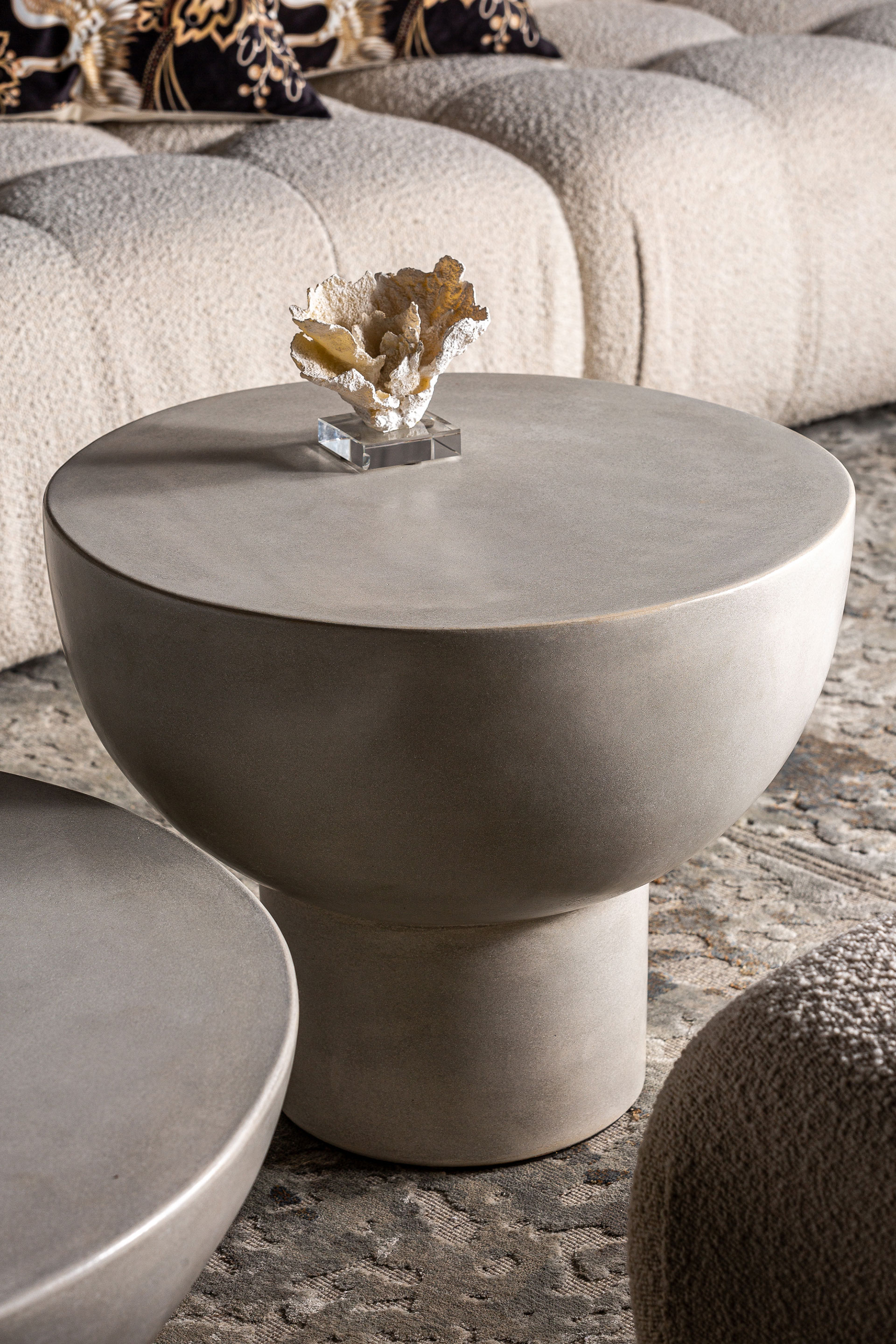 Приставные столики, серый цвет, современный стиль. Изготовлен из бетона.