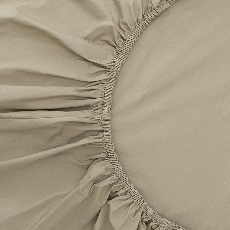 Постельное белье из коллекции Essential позволяет погрузиться в мир гармонии и уюта. Простыня на резинке из стираного перкаля бежево-серого цвета дарит приятные тактильные ощущения, радуя своим премиальным качеством. Мягкая фактура, натуральный состав и дышащие свойства материала создают идеальные условия для комфортного отдыха и сна.