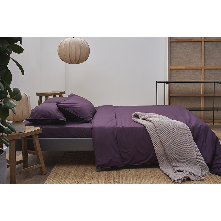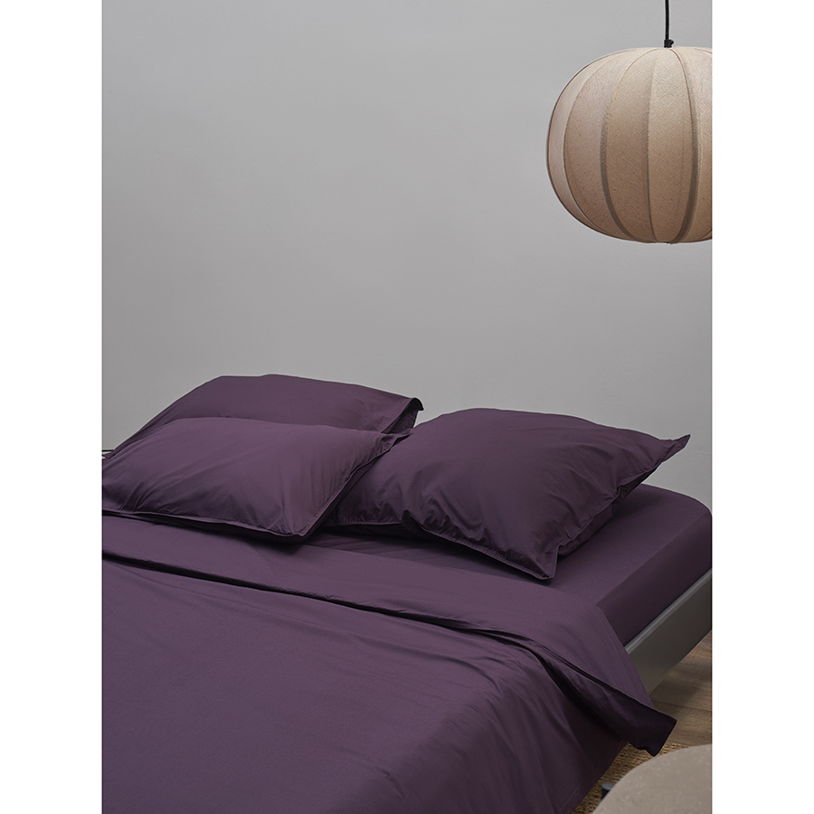 Постельное белье из коллекции Essential позволяет погрузиться в мир гармонии и уюта. Простыня на резинке из стираного перкаля сливового цвета дарит приятные тактильные ощущения, радуя своим премиальным качеством. Мягкая фактура, натуральный состав и дышащие свойства материала создают идеальные условия для комфортного отдыха и сна.