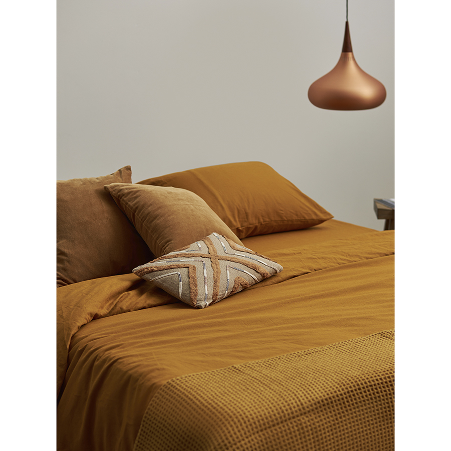 Простыня на резинке изо льна и хлопка цвета карри из коллекции Essential – стильное постельное белье высочайшего качества, которое подарит ощущение комфорта во время сна и привнесет в интерьер спальни природную элегантность.