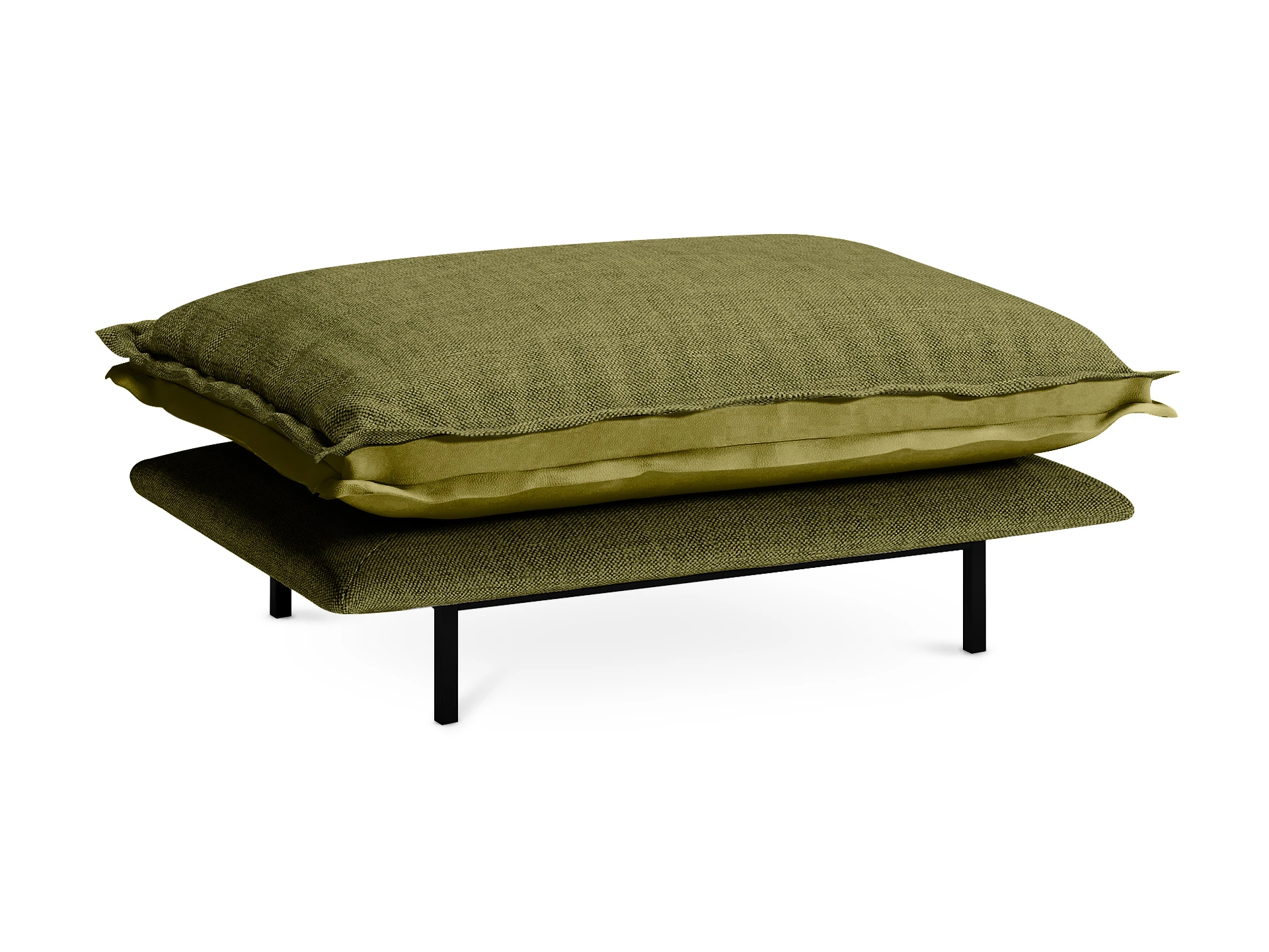 Опоры — металлические, окрашены черной матовой эмалью, защищены пластиковыми подпятниками. Высота ножек — 175 мм, что позволяет проводить уборку, не передвигая пуф.