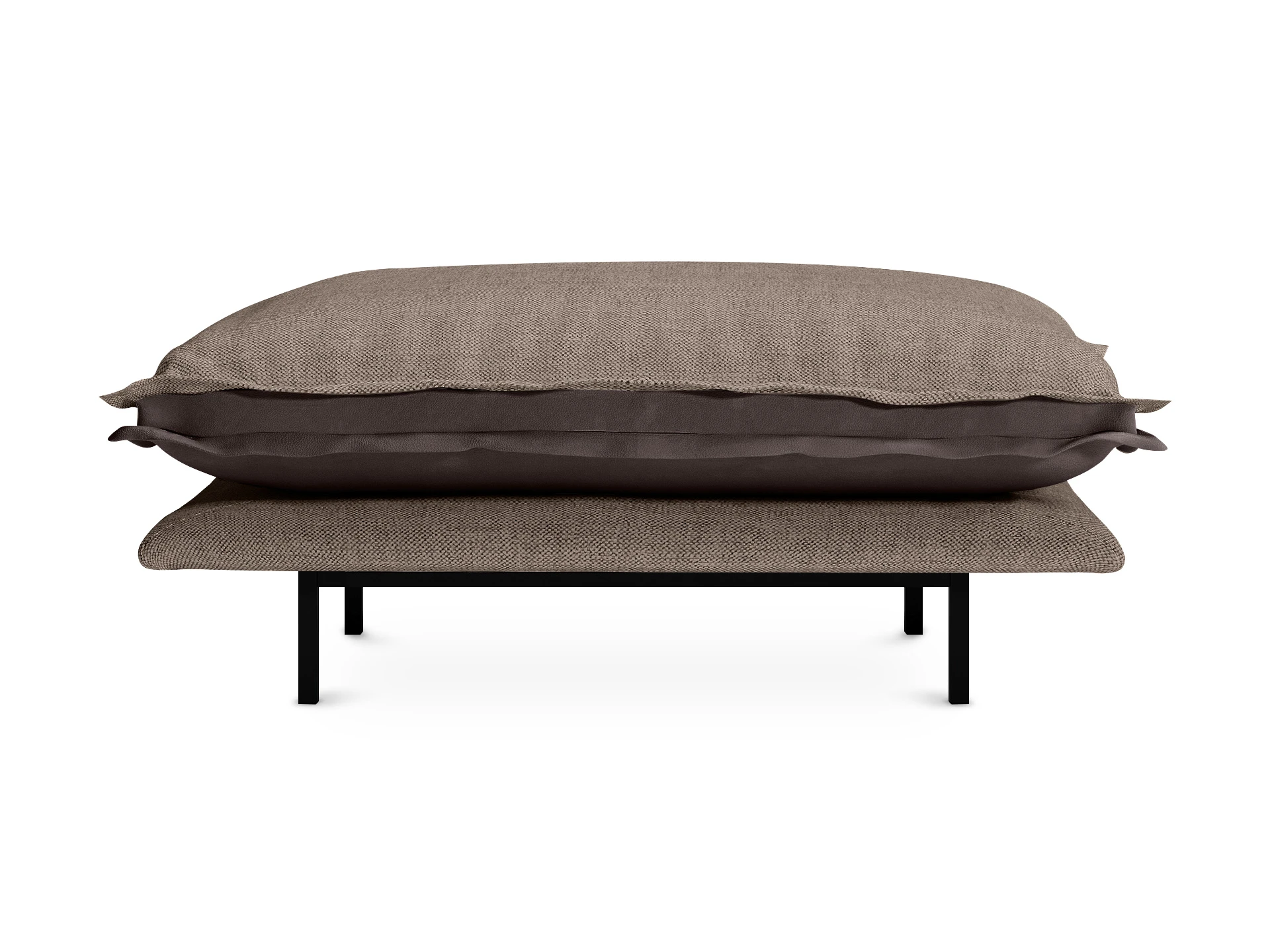 Опоры — металлические, окрашены черной матовой эмалью, защищены пластиковыми подпятниками. Высота ножек — 175 мм, что позволяет проводить уборку, не передвигая пуф.