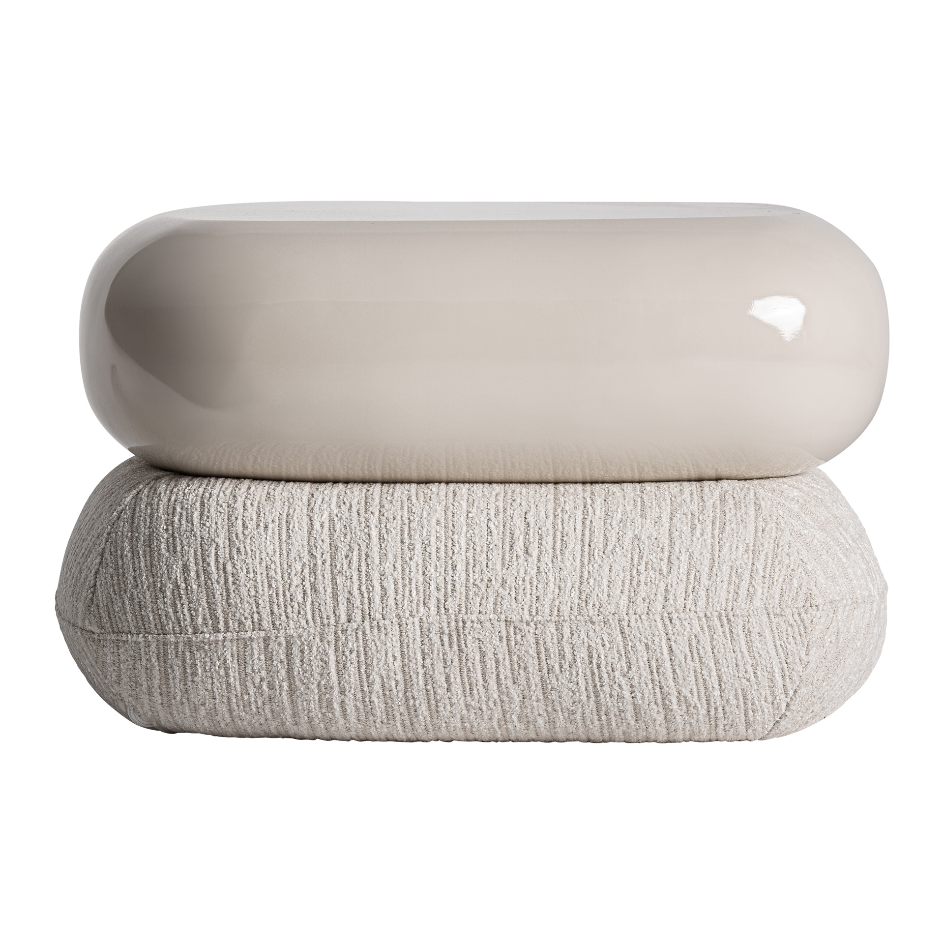 Подставка для ног изготовлена из бежевого МДФ в сочетании с бежевым полиэстером и поролоном.
