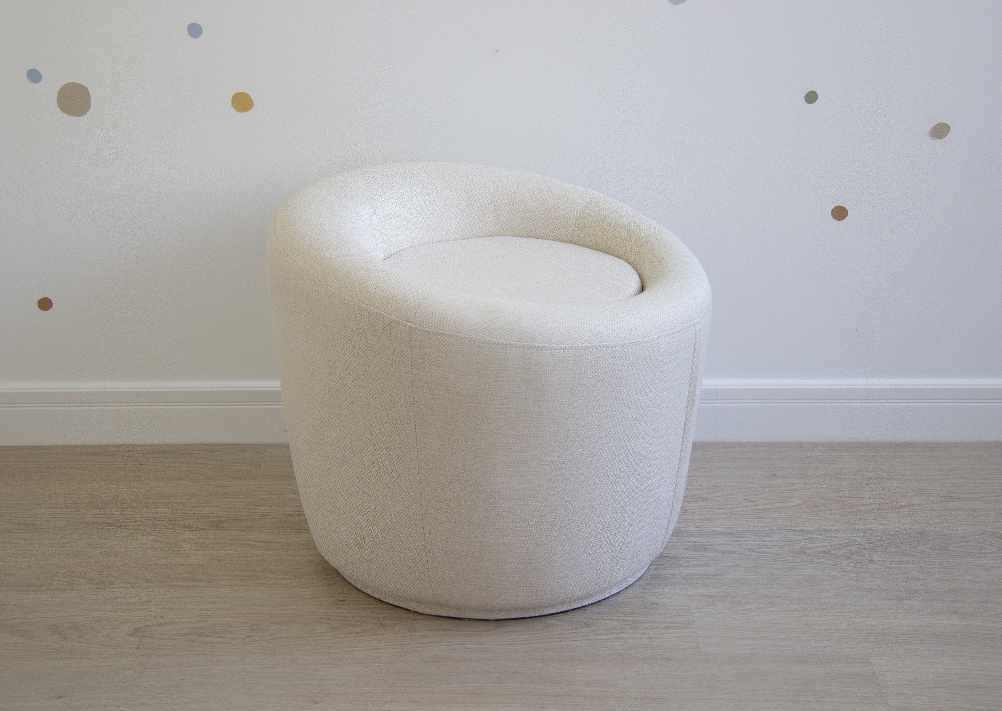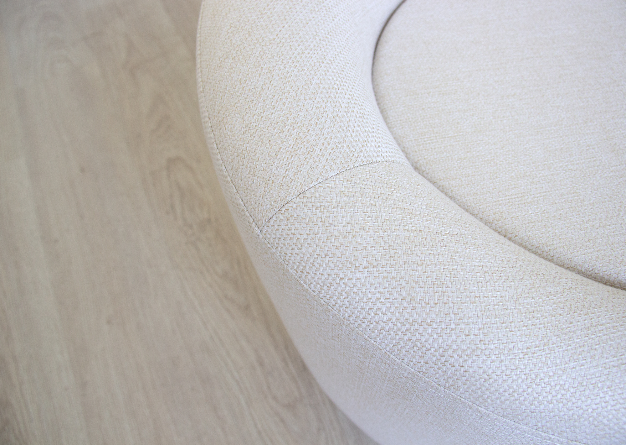 Комфортный мягкий пуф в тканевой обивке дополнит интерьер гостиной или спальни
