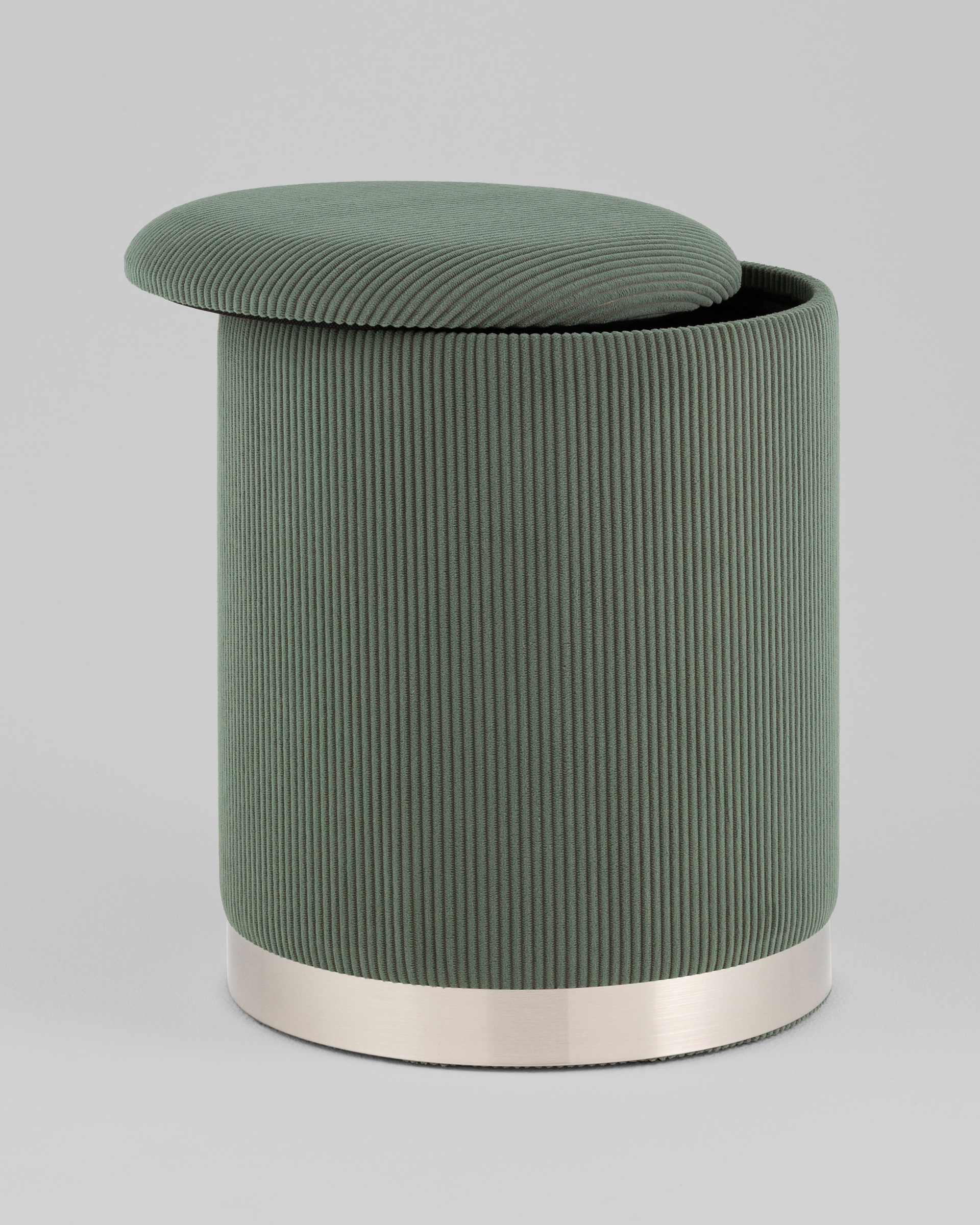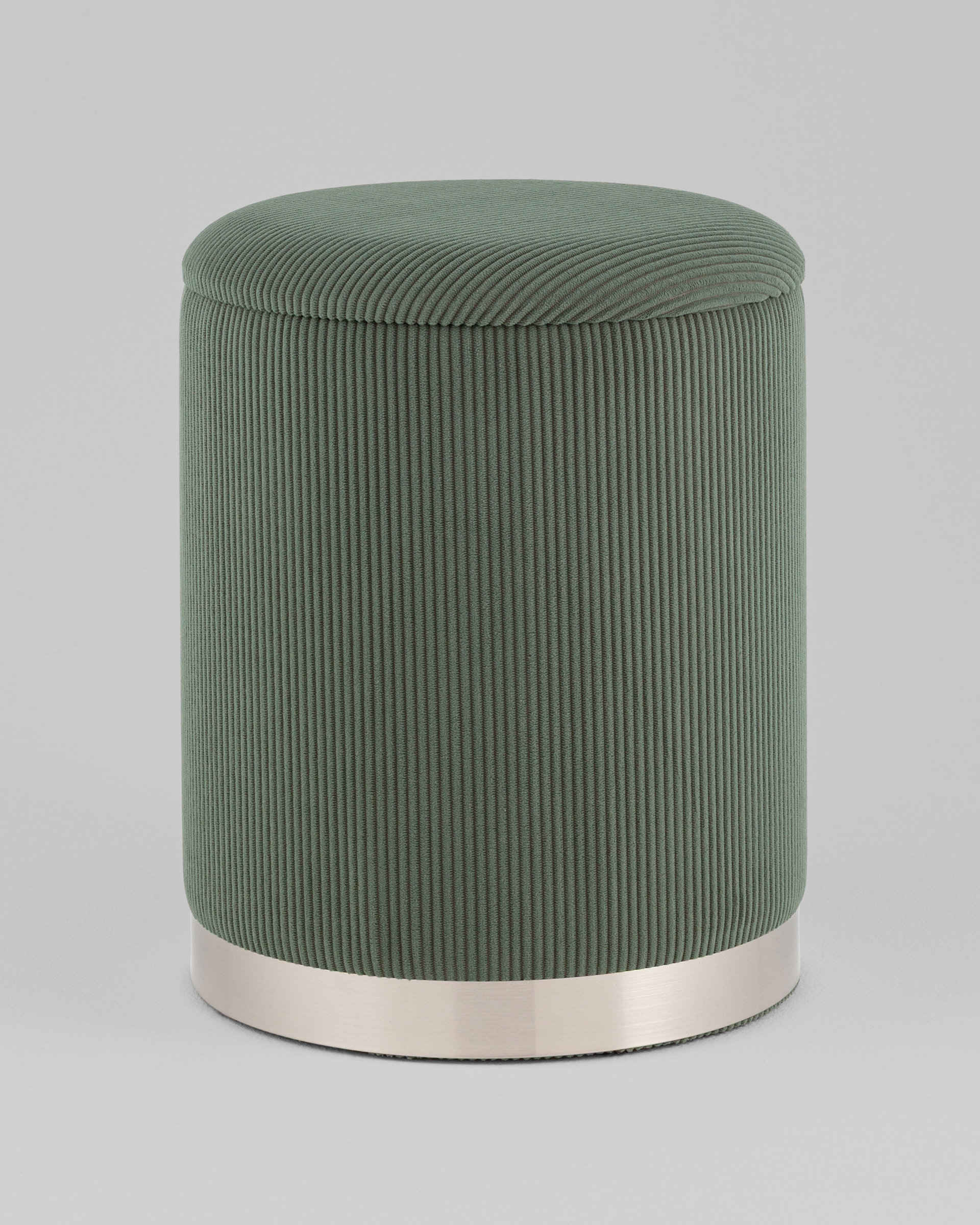 Пуф Эмили с ящиком серебро вельвет зелёный
