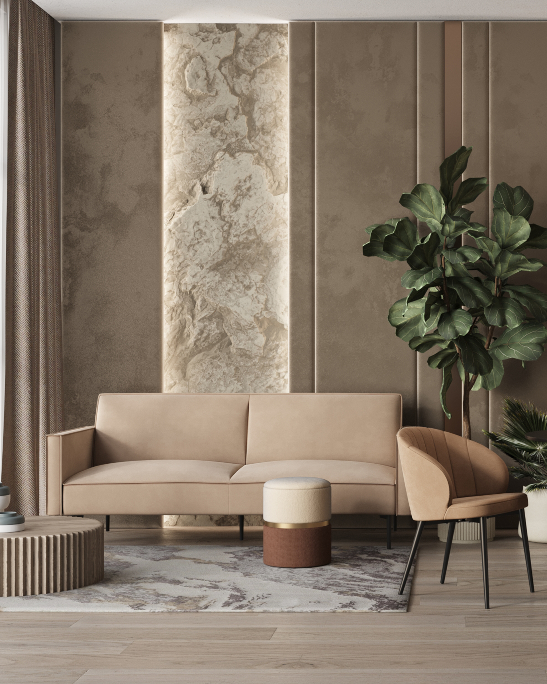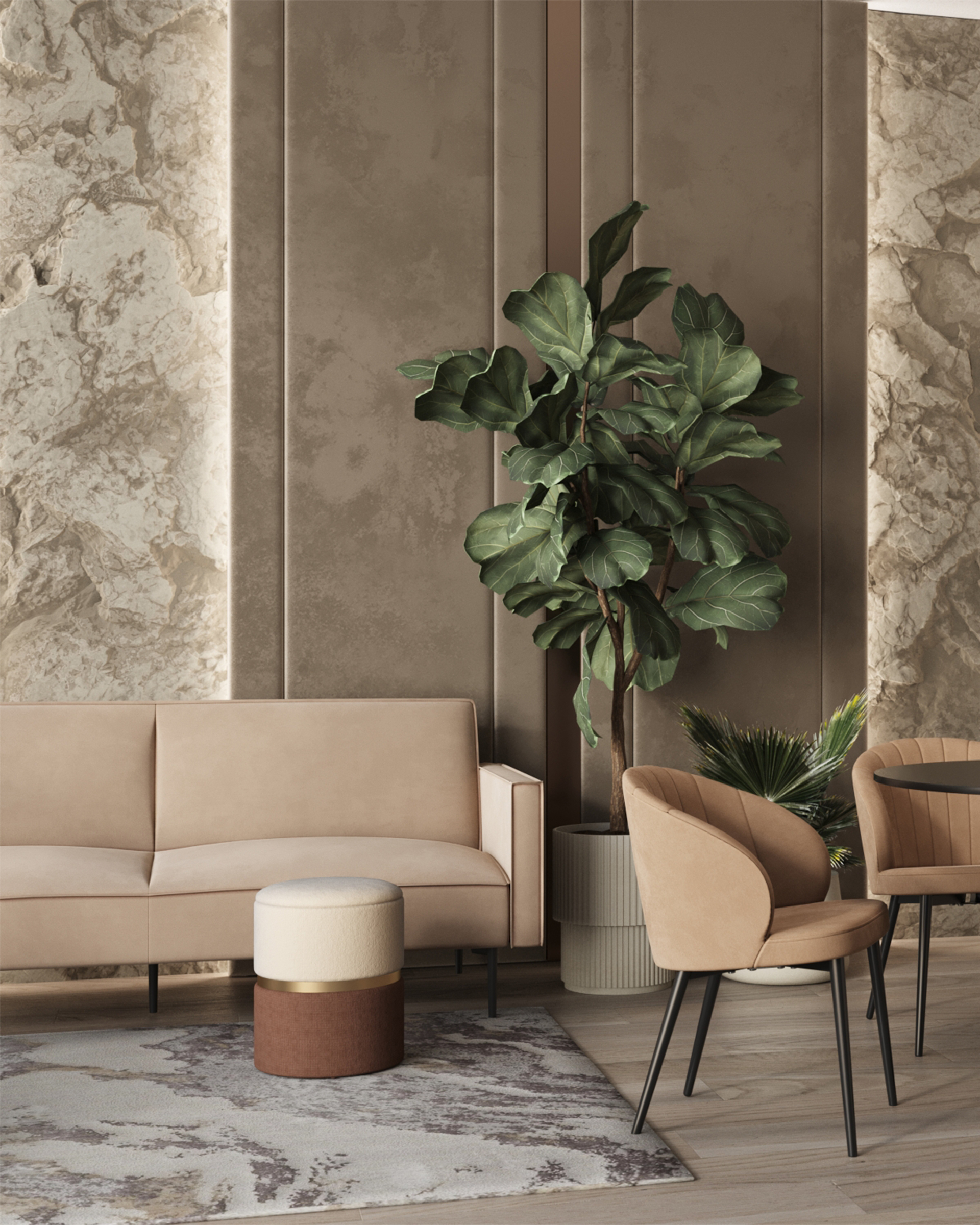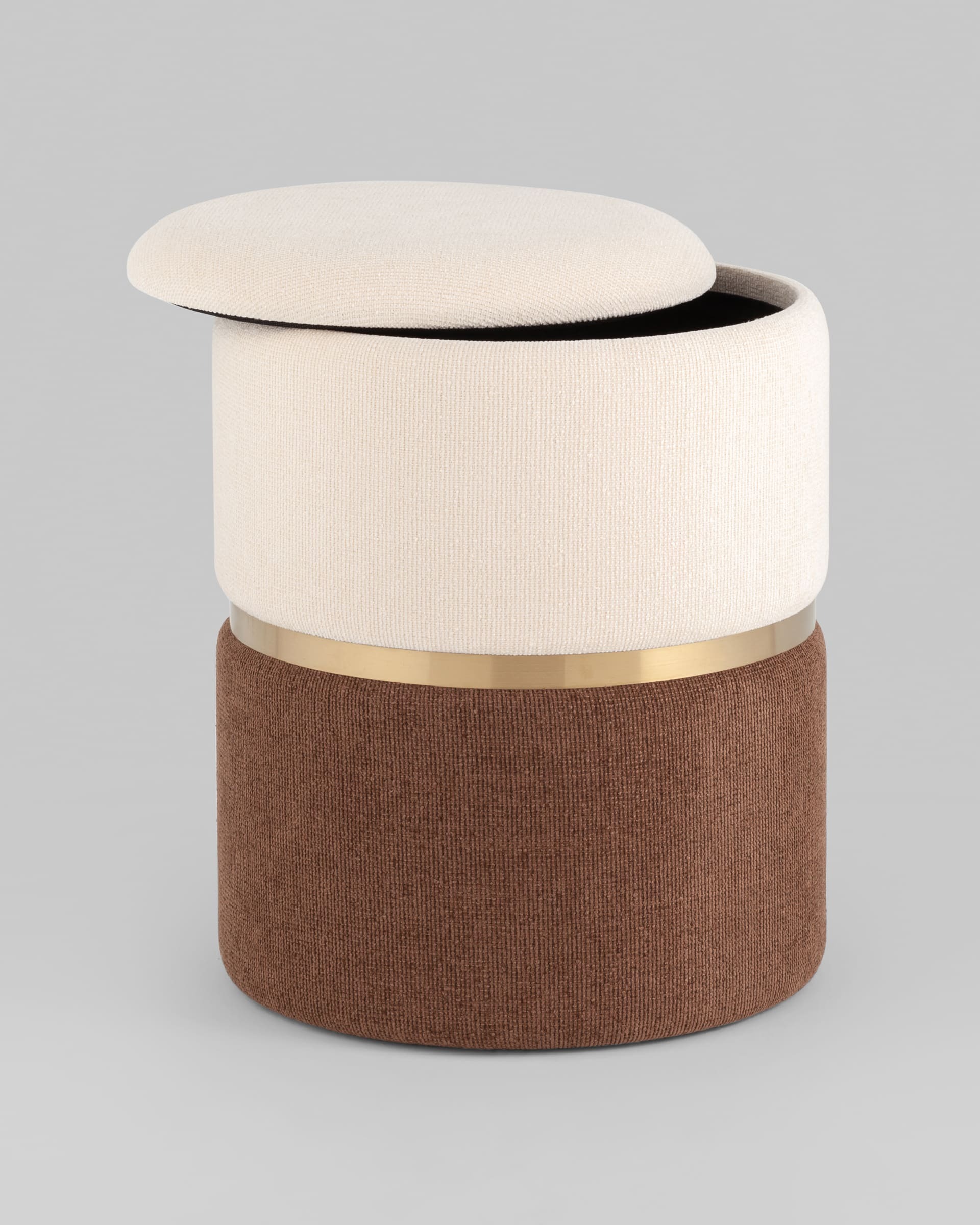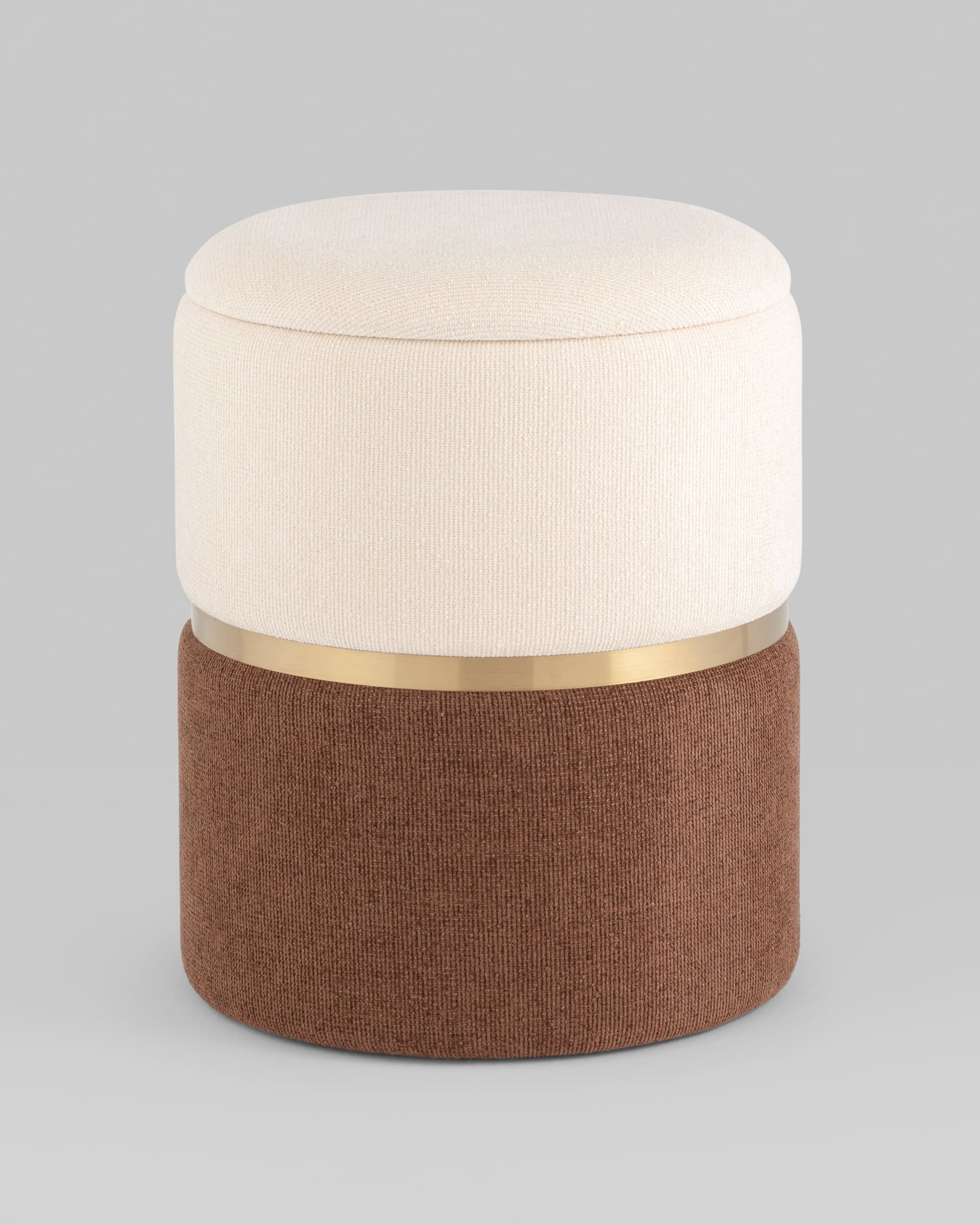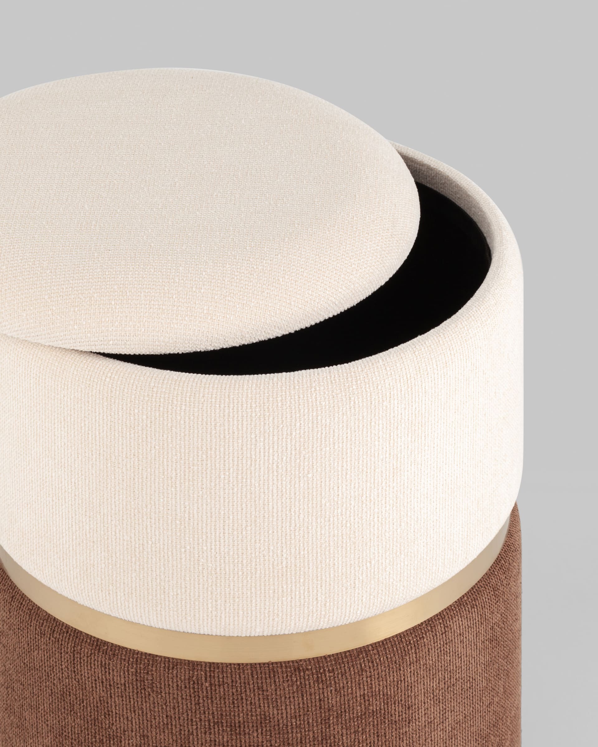 Пуф Кэрри с ящиком шенилл коричневый с декоративным золотым ободком