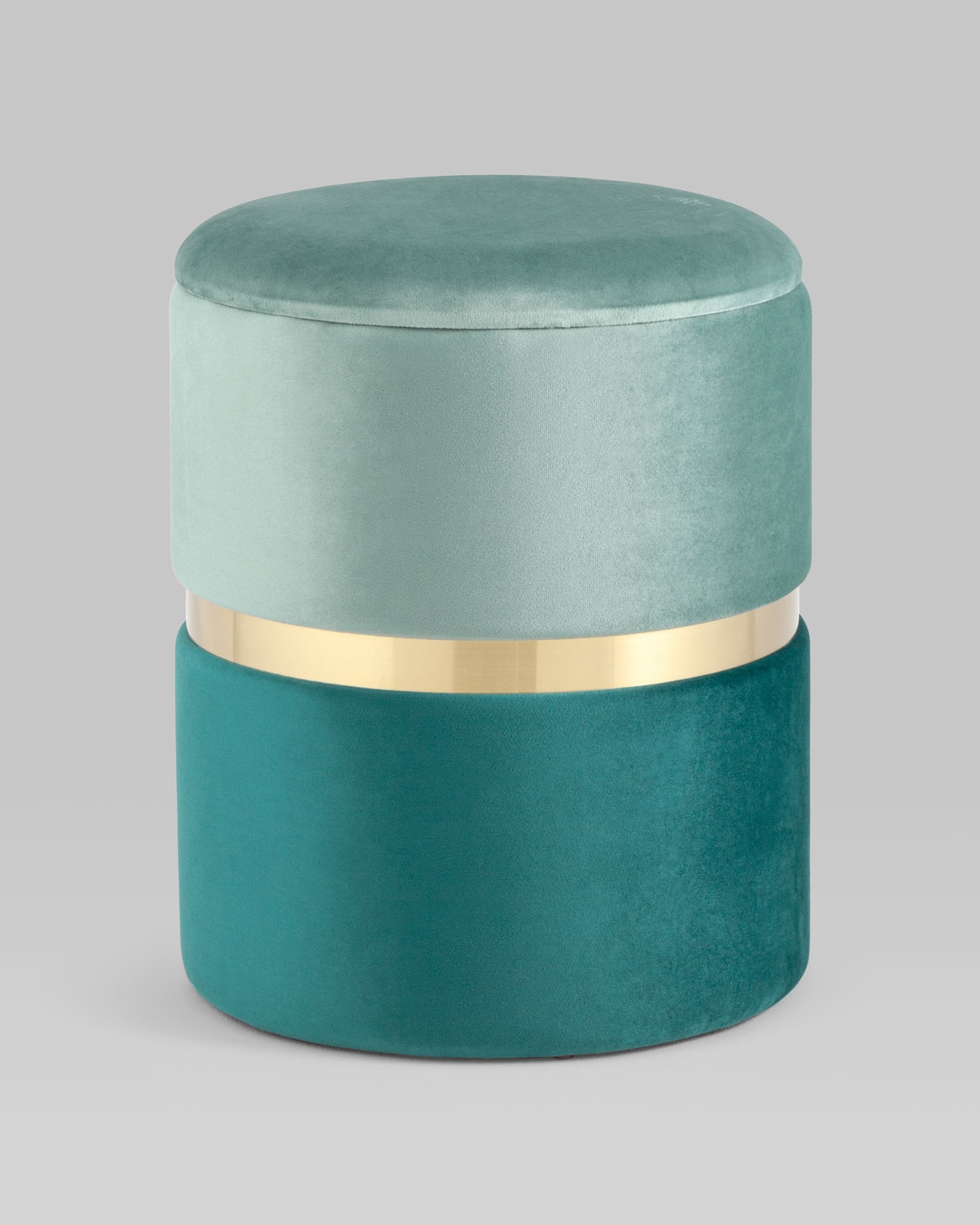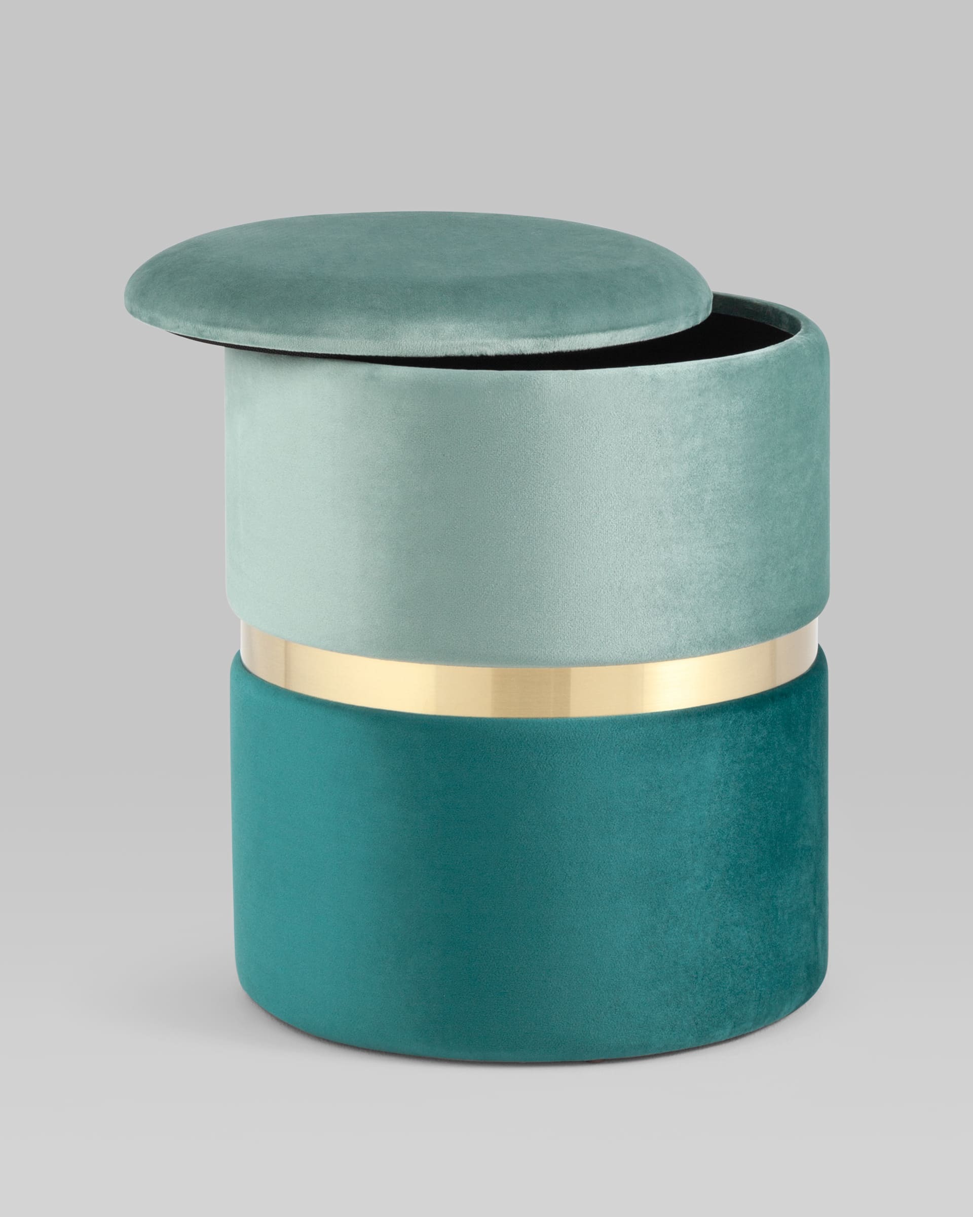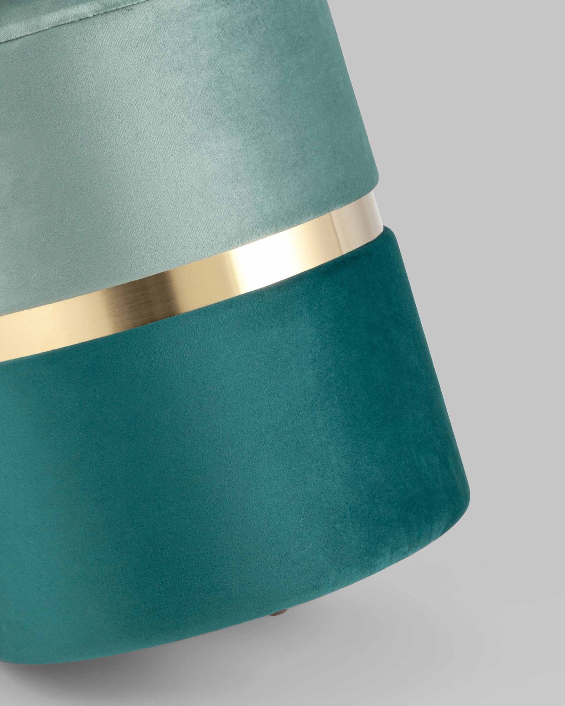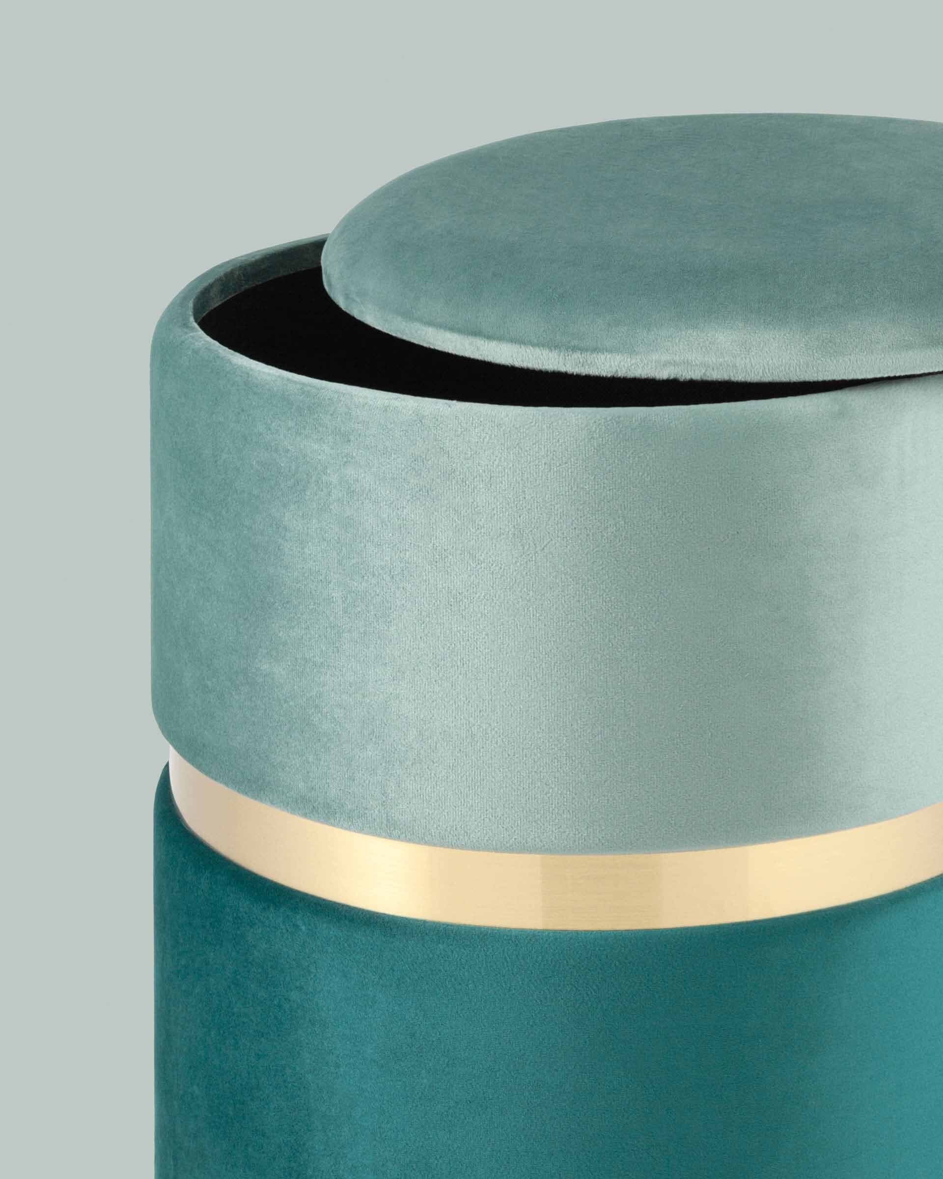 Пуф Кэрри с ящиком велюр бирюзовый с декоративным золотым ободком