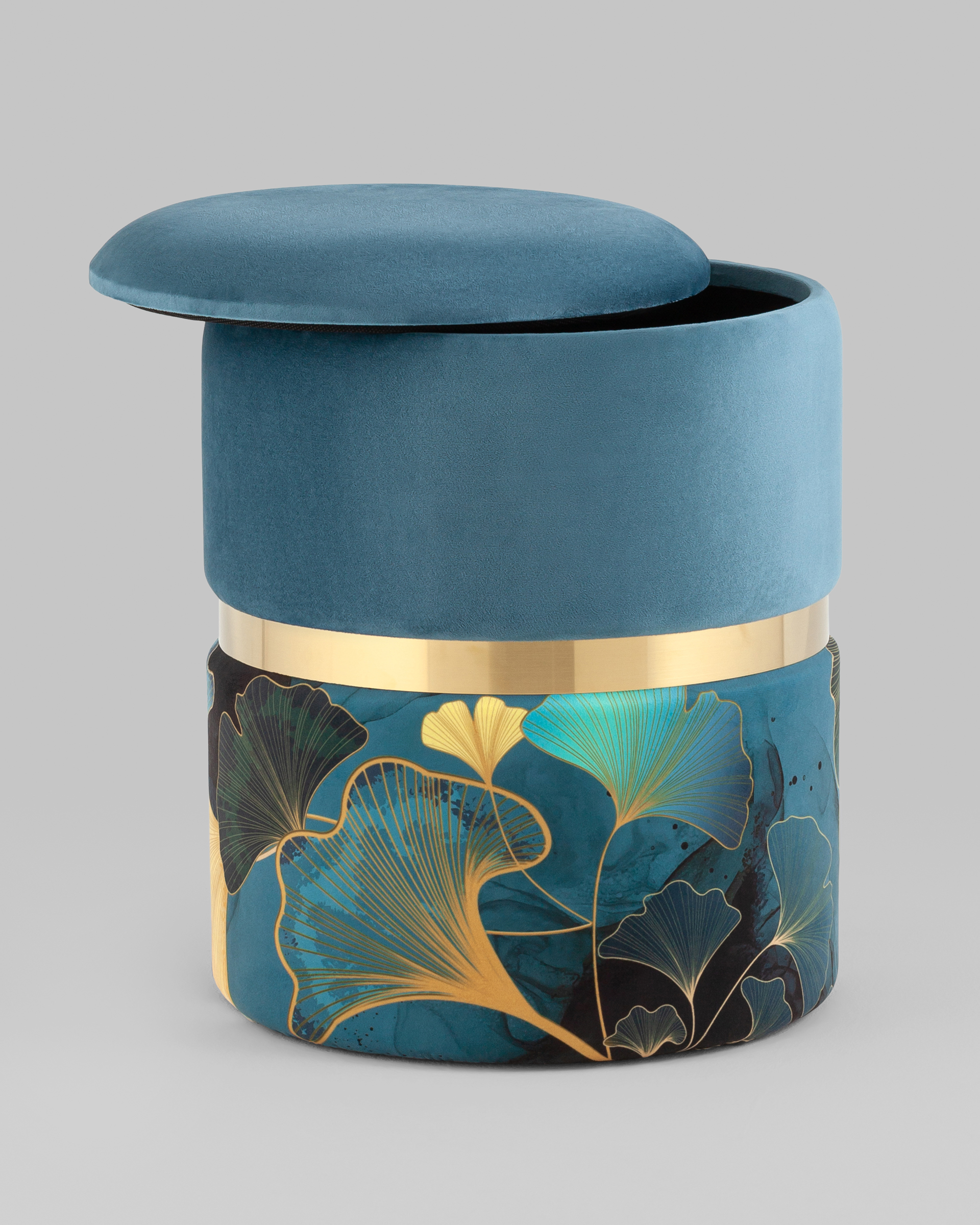Пуф Кэрри с ящиком велюр Gingko с декоративным золотым ободком