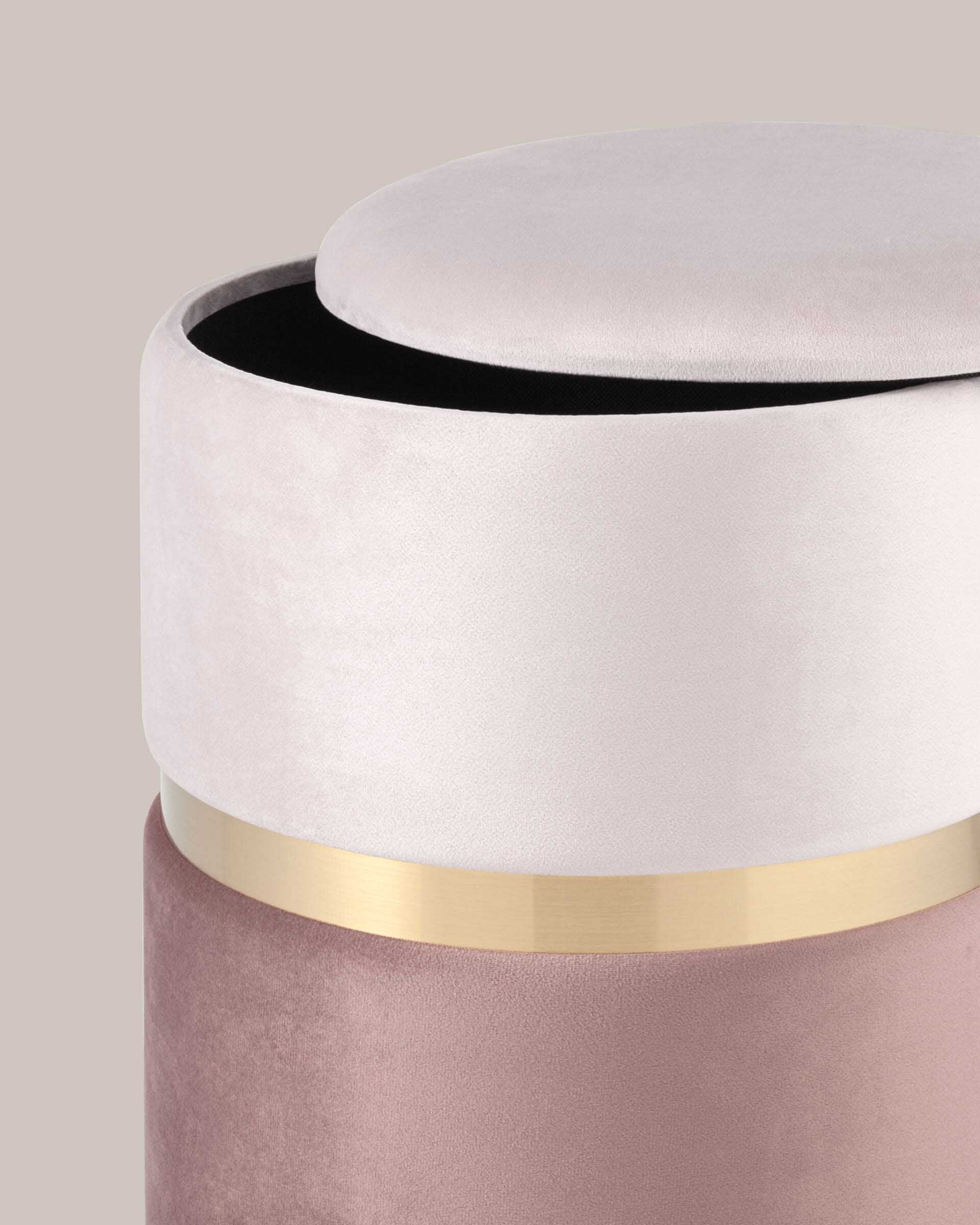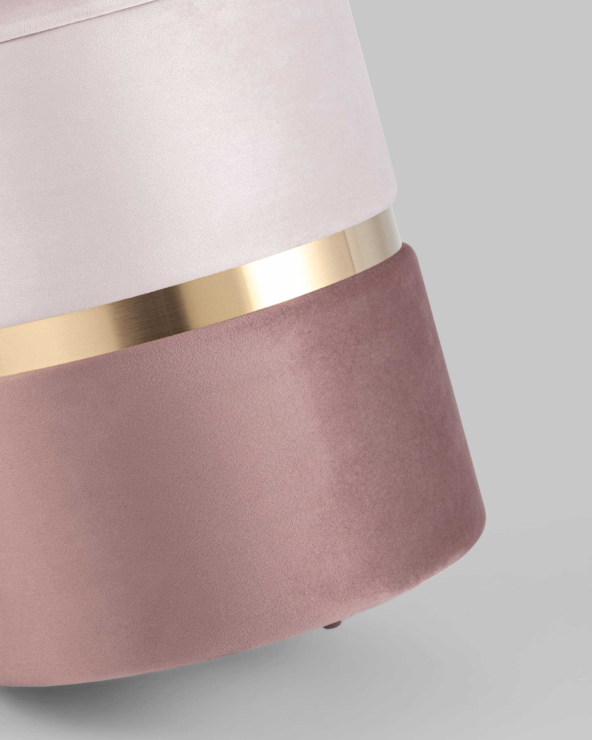 Пуф Кэрри с ящиком велюр розовый с декоративным золотым ободком