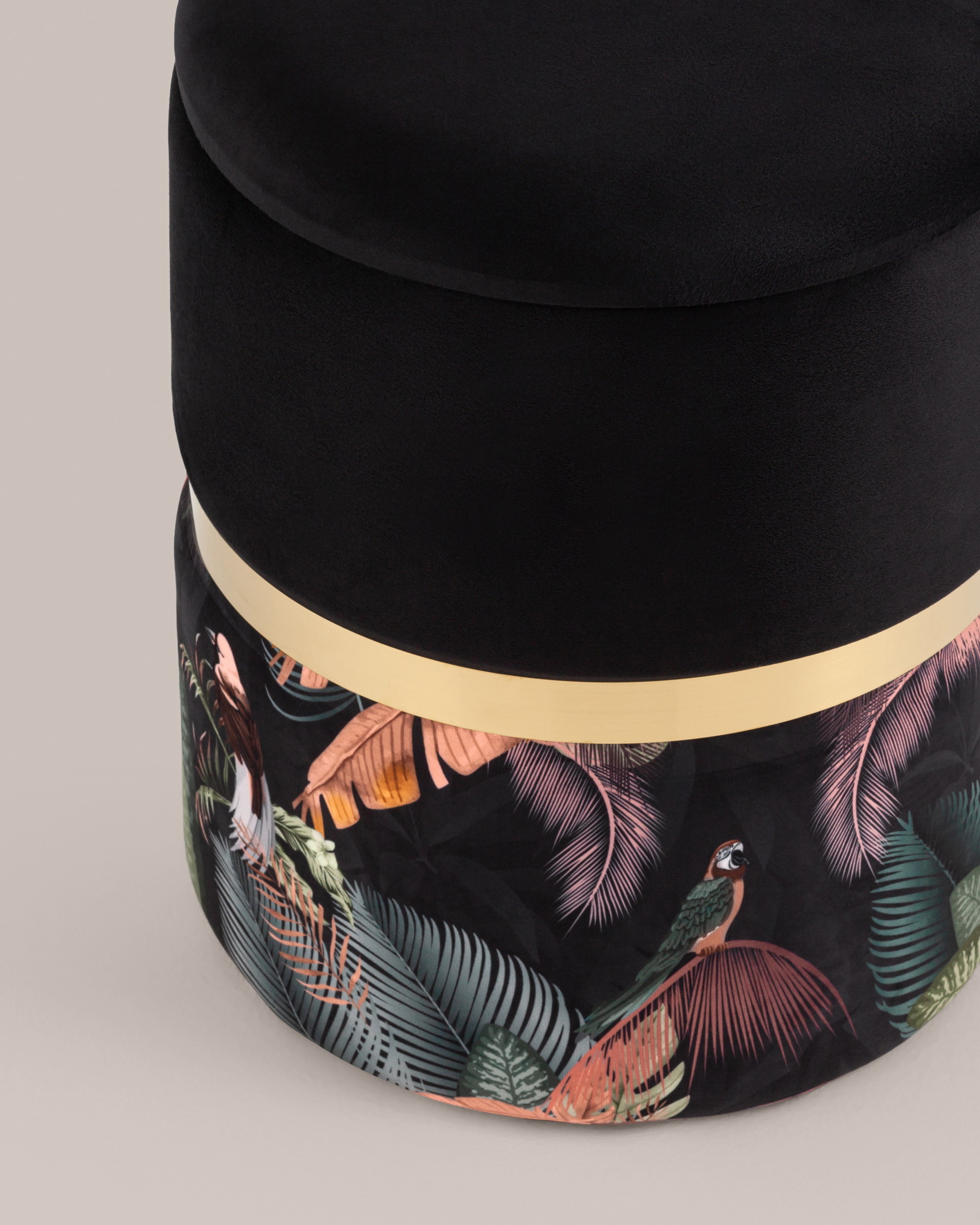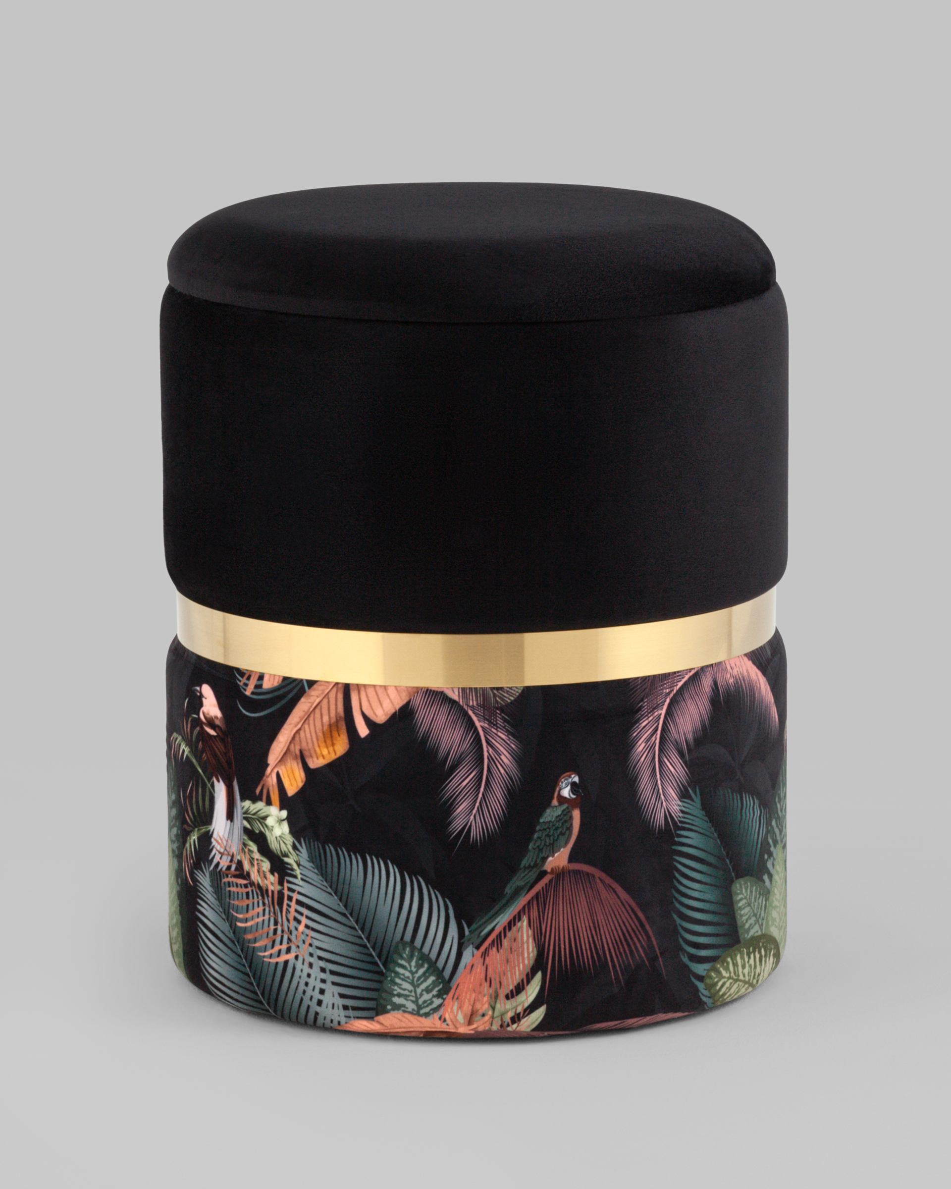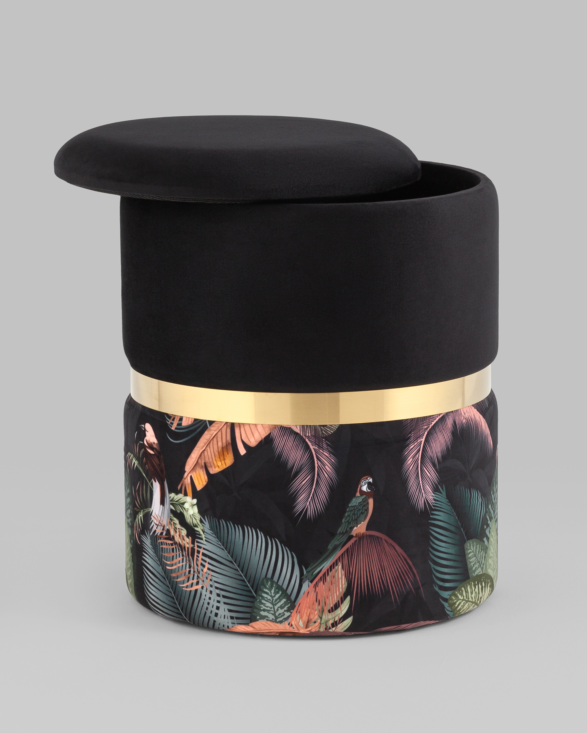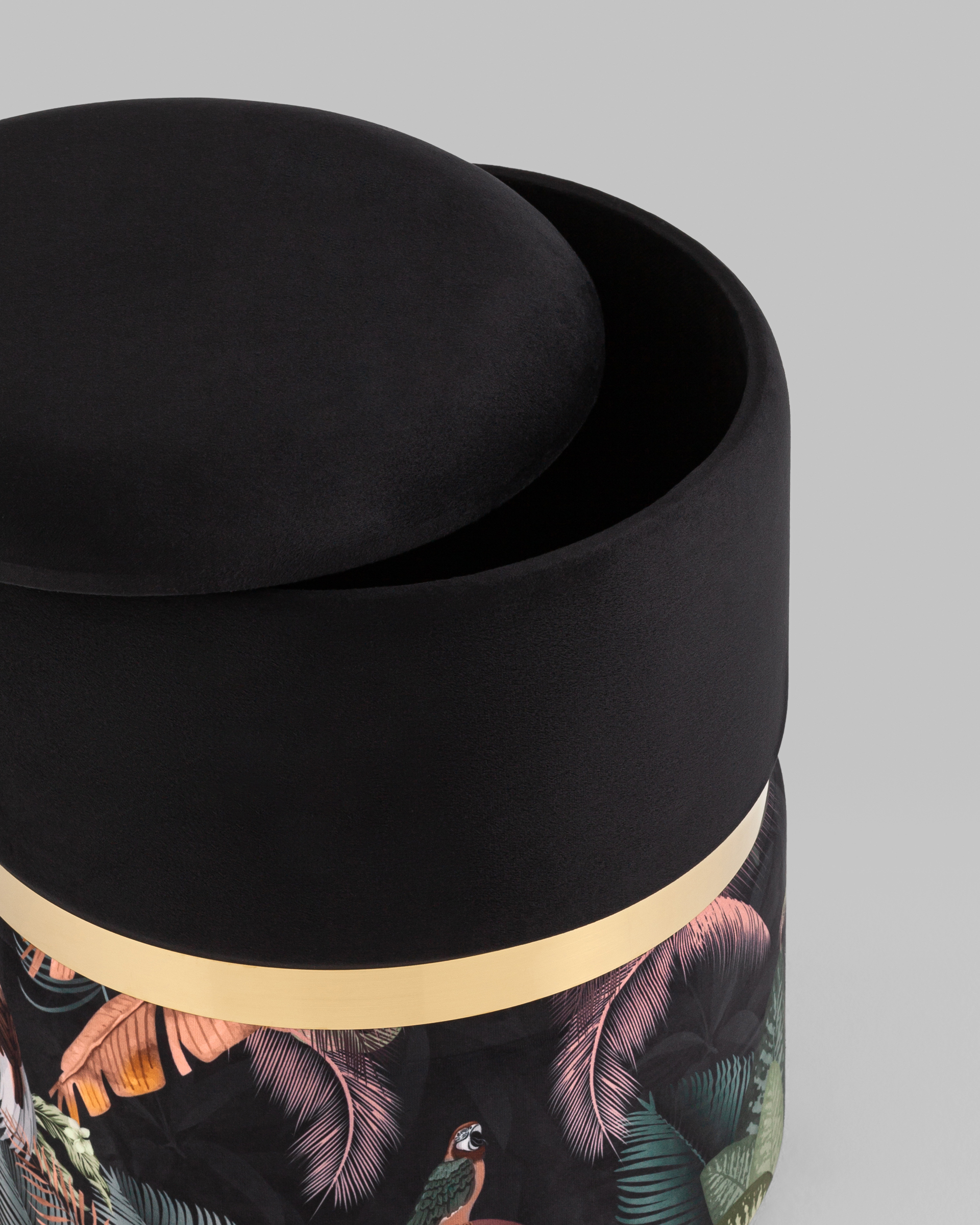 Пуф Кэрри с ящиком велюр Tropic с декоративным золотым ободком