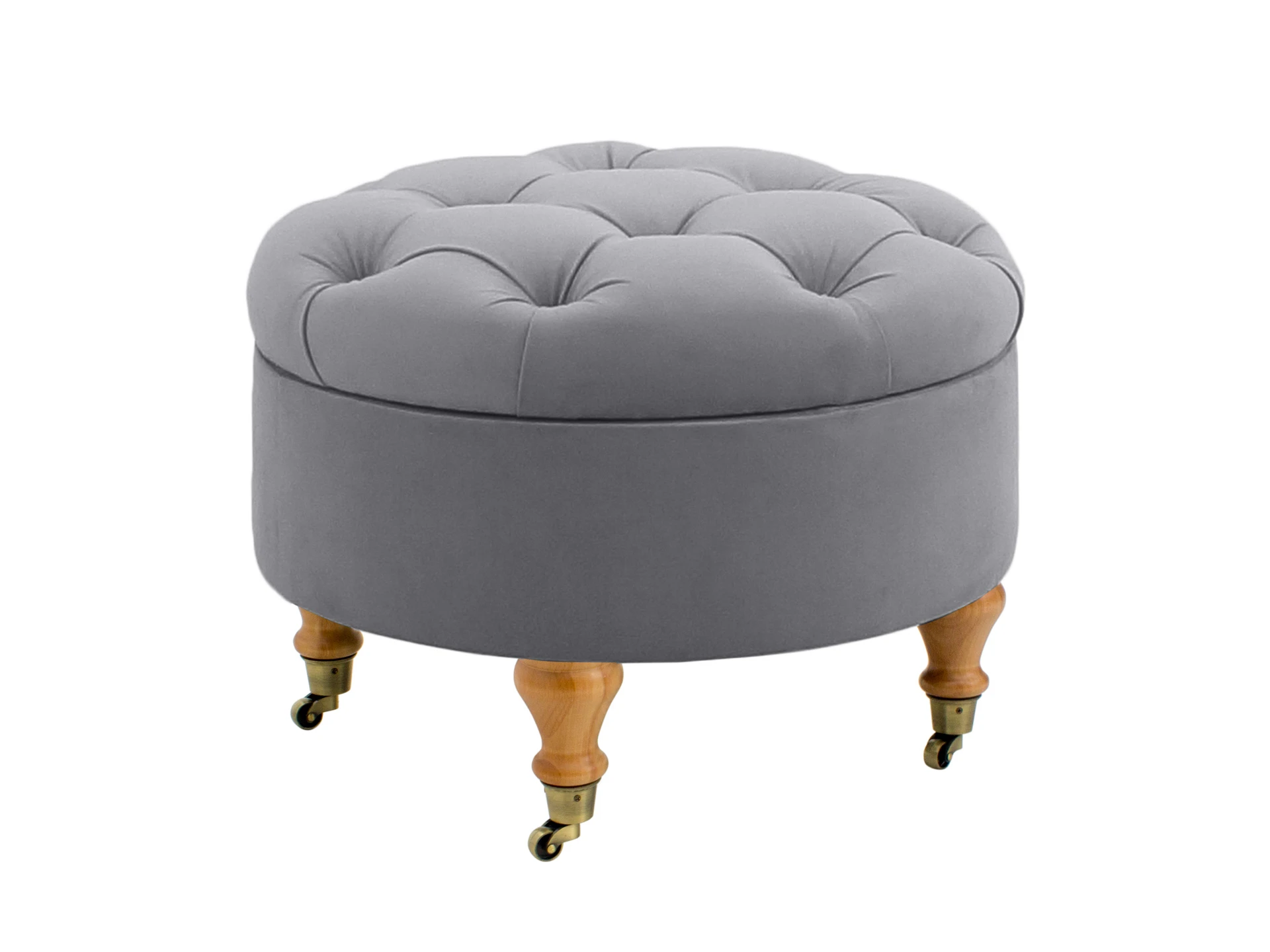 Пуф с емкостью для хранения, декорированный пуговицами.