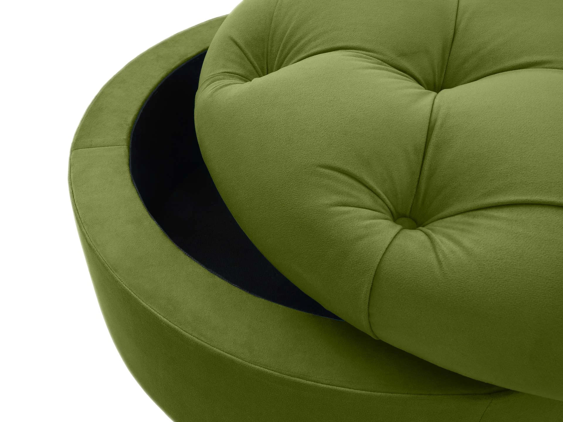 Пуф с емкостью для хранения, декорированный пуговицами.