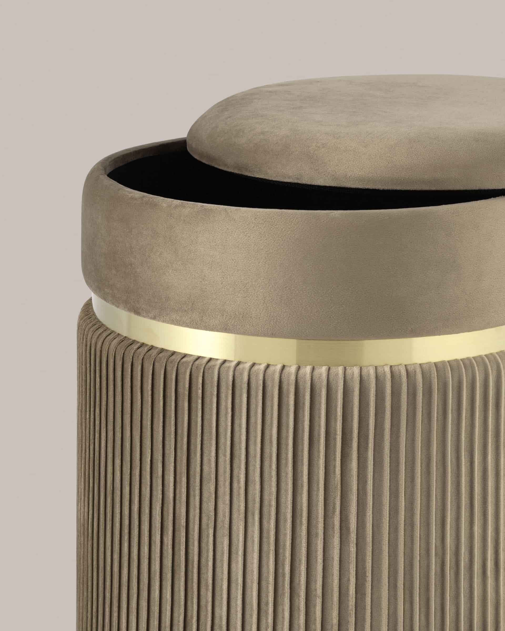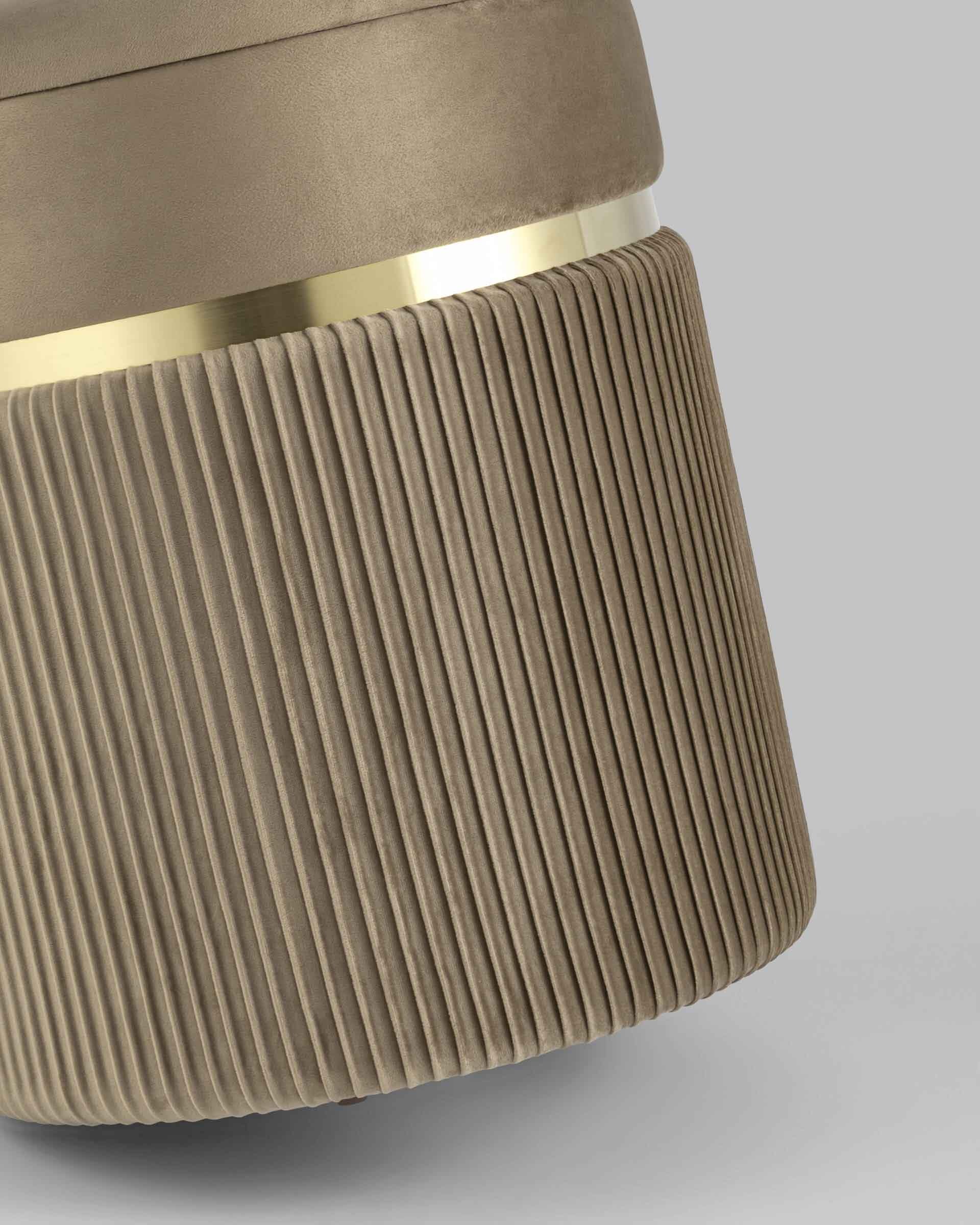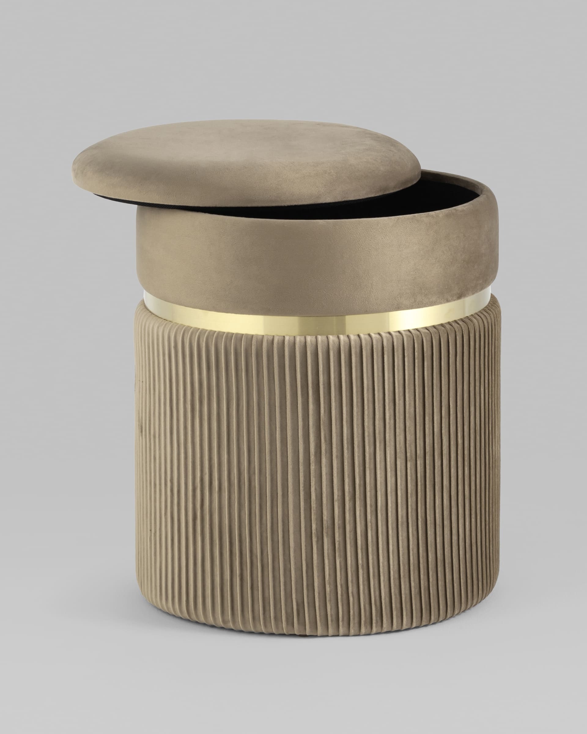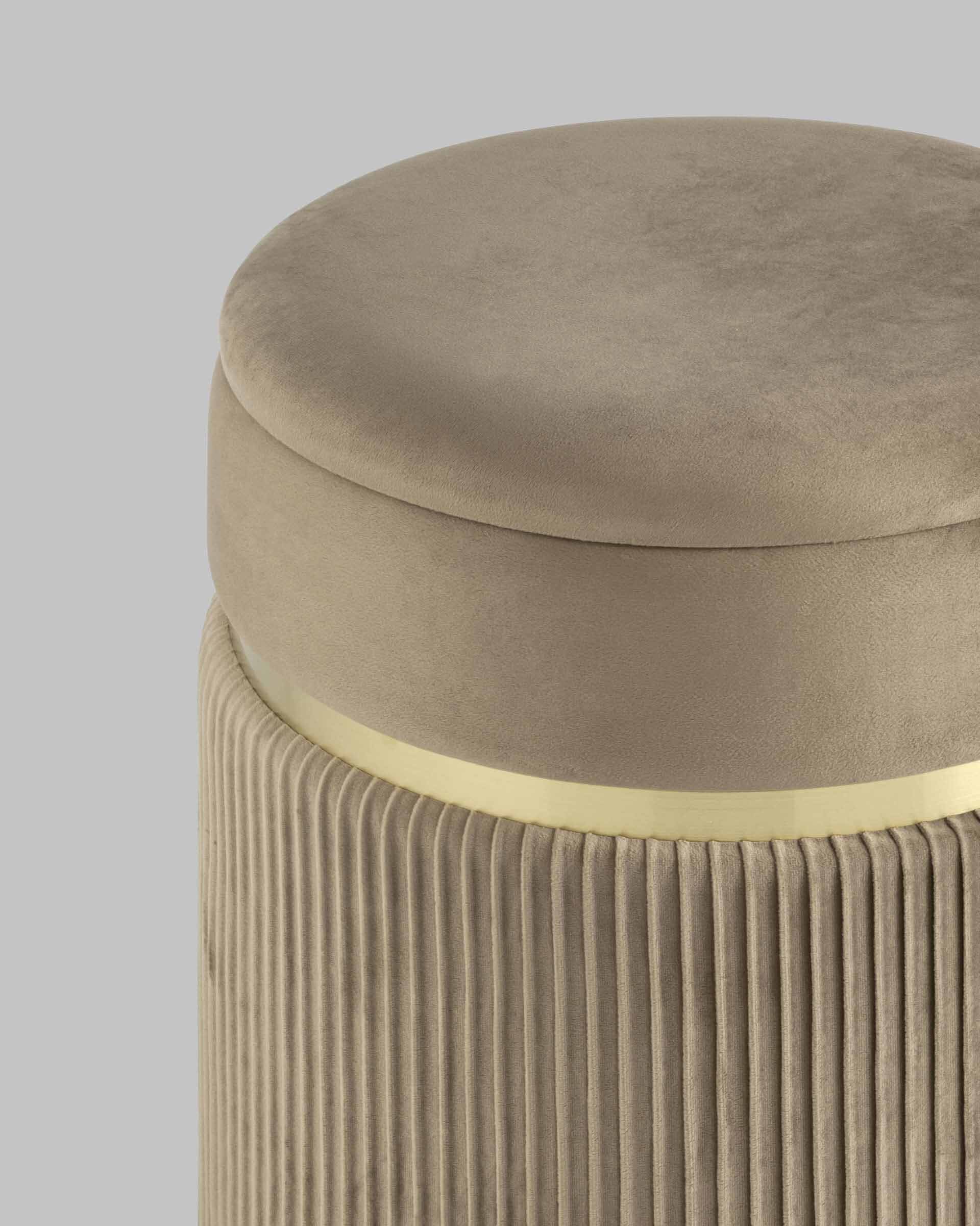 Пуф Миранда с ящиком велюр бежевый с декоративным золотым ободком
