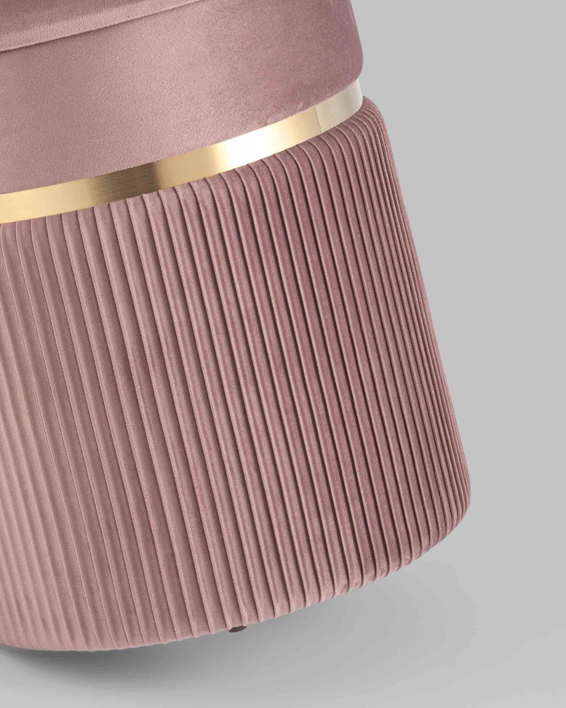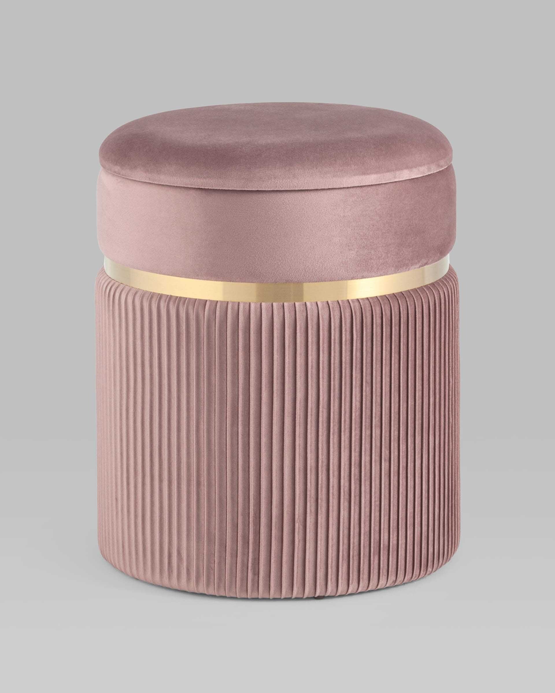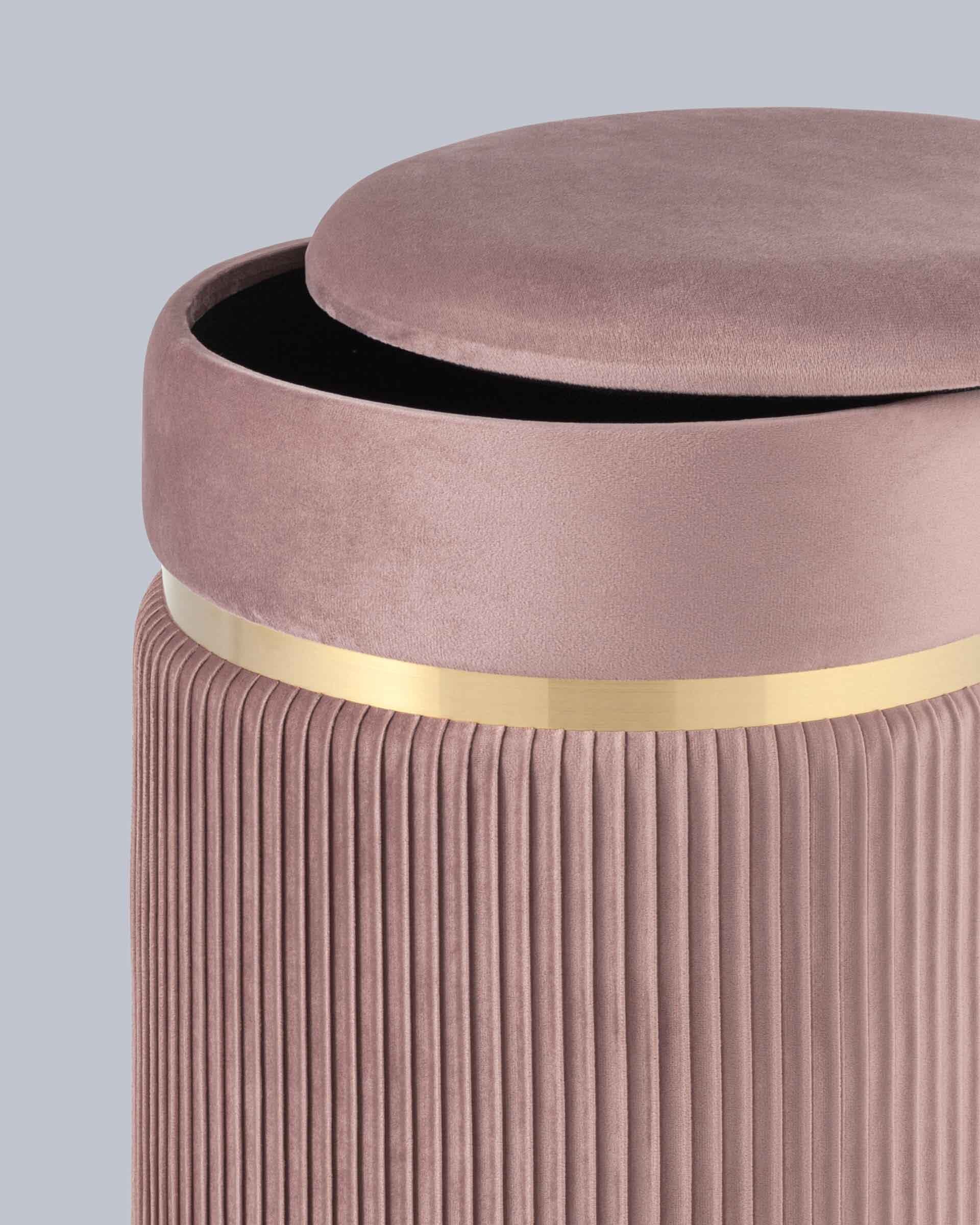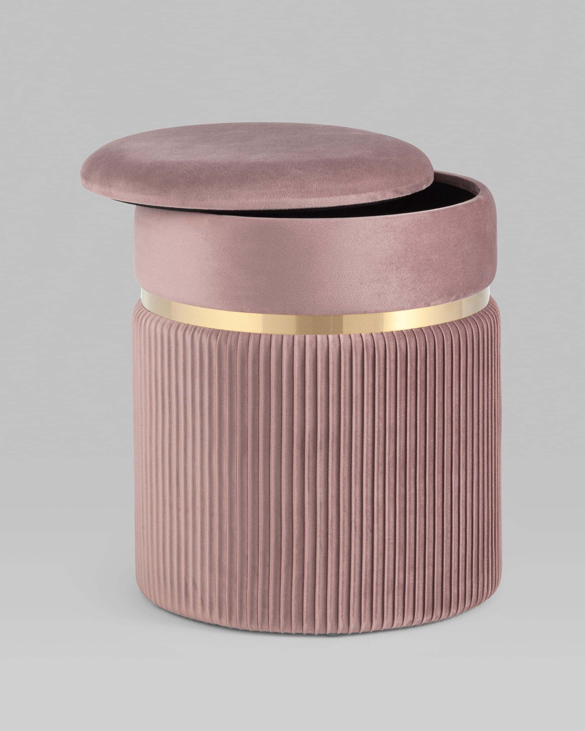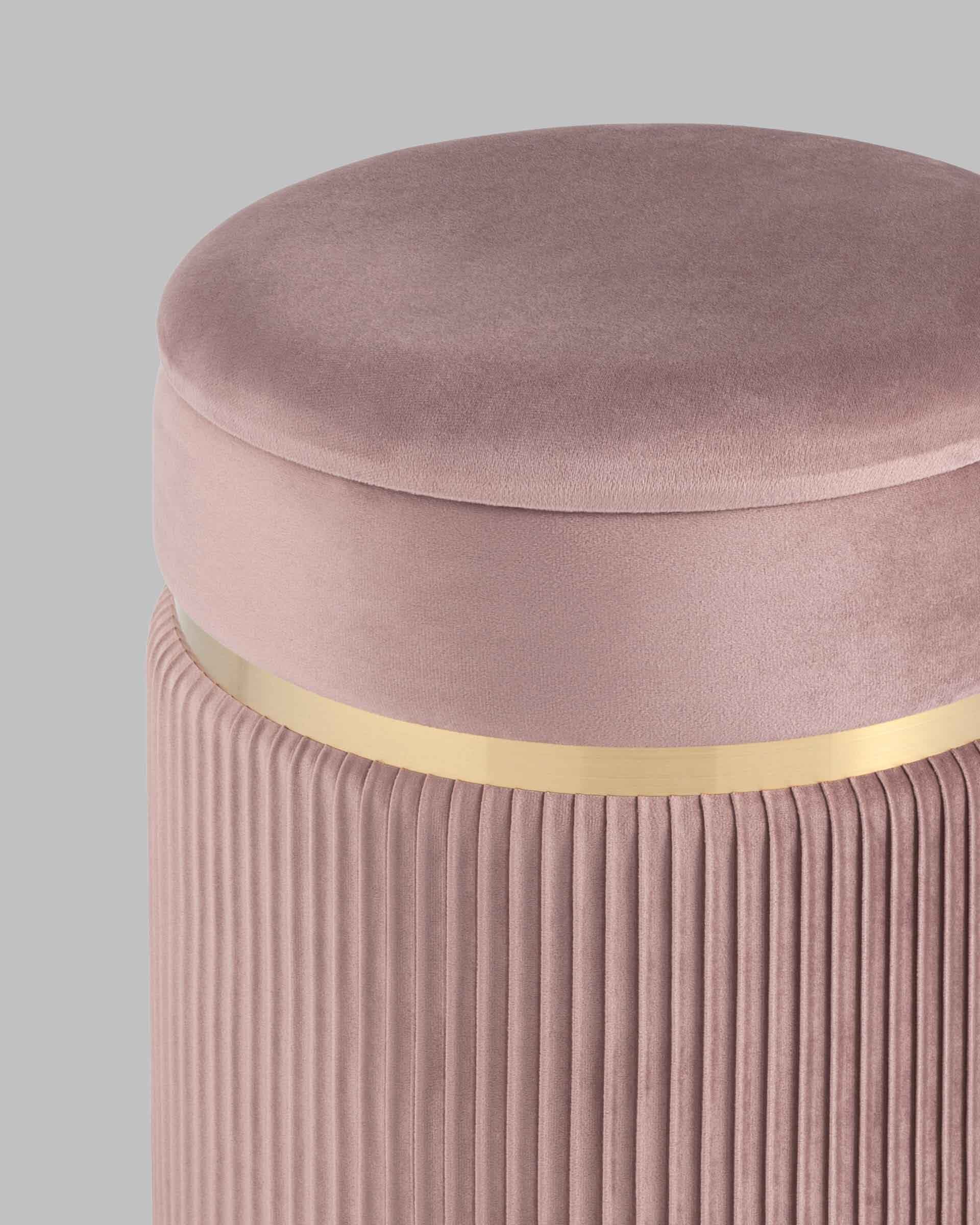 Пуф Миранда с ящиком велюр розовый с декоративным золотым ободком