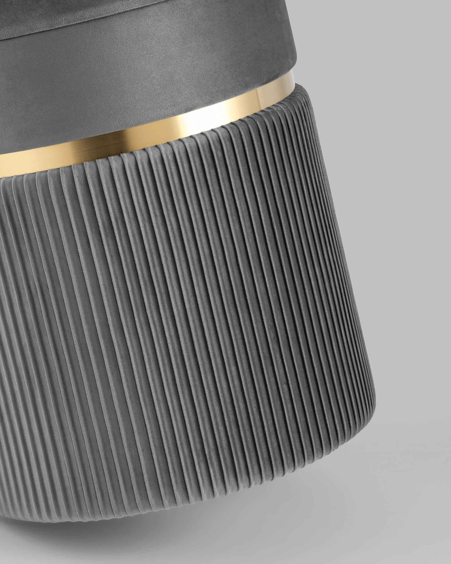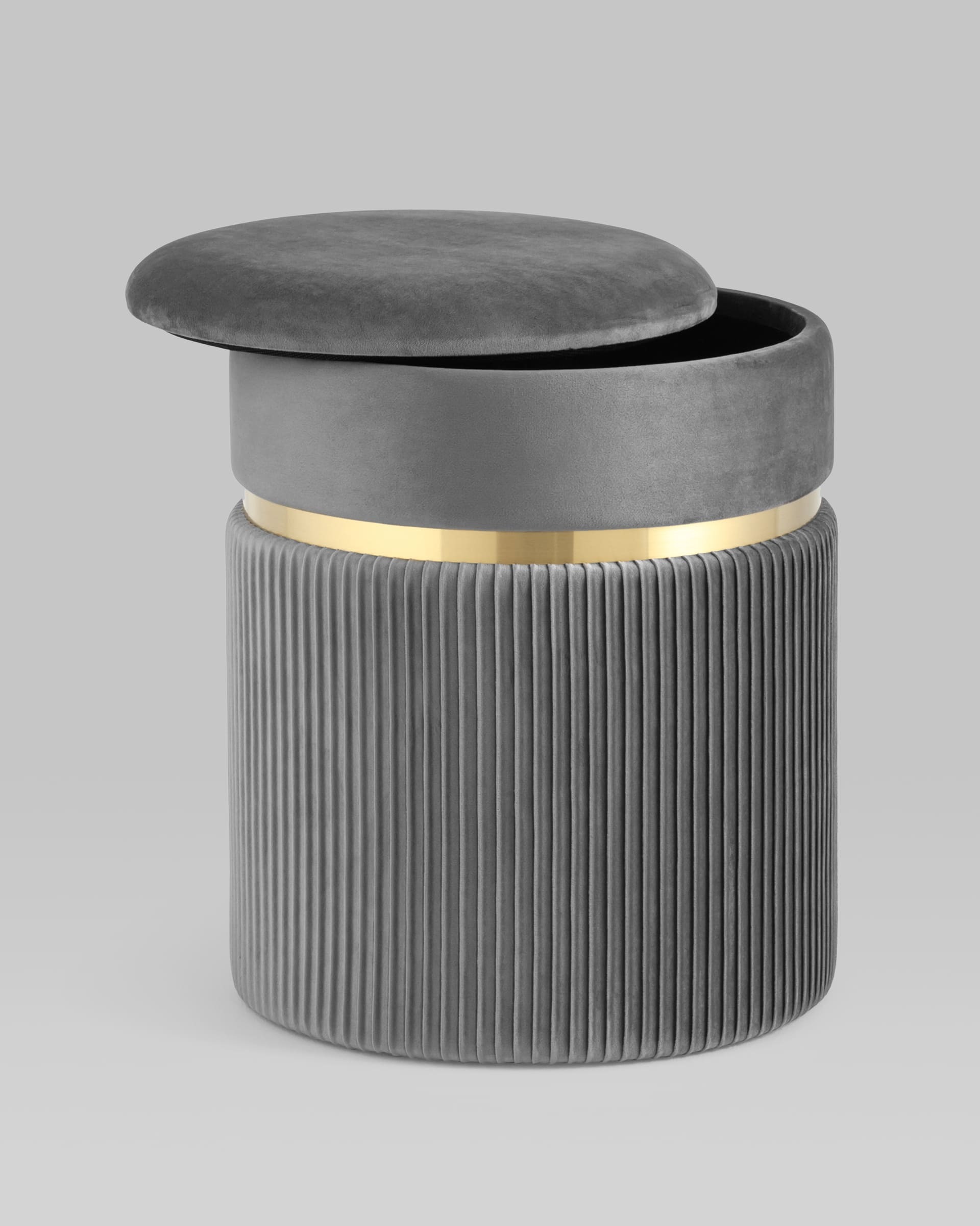 Пуф Миранда с ящиком велюр серый с декоративным золотым ободком