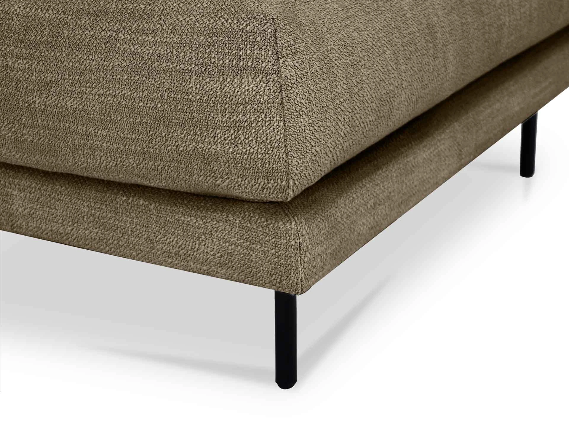 Каркас изделия состоит из деревянных брусков (хвойных пород) и березовой фанеры марки ФК. На рамку каркаса установлен ряд плоских пружин (тип – «змейка»), поверх пружин проложен слой войлока, сверху войлок закрыт лицевым чехлом из ткани. Наполнение: настил из войлока, настил из двух слоев пенополиуретана (поролон марки Memory Foam и супермягкий), холлофайбер. Внутренний чехол выполнен из периотека на текстильной основе. В основании – металлические опоры высотой 160 мм, с пластиковыми подпятниками, черного цвета.