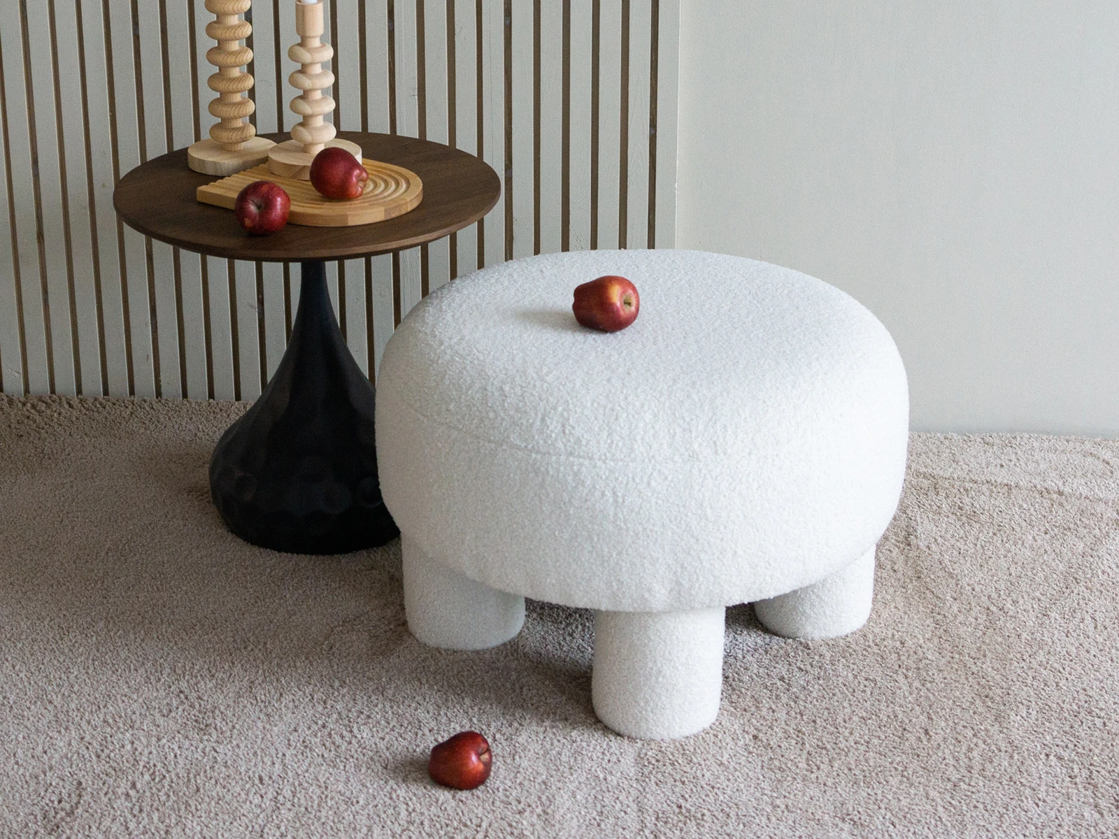 Каркасный пуфик Ron ron очаровывает органичностью и плавными линиями. Круглое мягкое сиденье установлено на 4 цилиндрические опоры, что обеспечивает устойчивость и надежность. Обивка — искусственный мех с фактурой «букле», который придает изделию нежности и осязаемого комфорта. Станет идеальным компаньоном для дивана, кресла, журнального столика. Подставка для ног, сиденье, меховой «столик» — Ron ron исполнит любой ваш каприз.