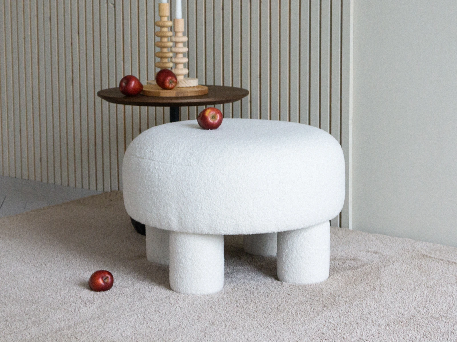 Каркасный пуфик Ron ron очаровывает органичностью и плавными линиями. Круглое мягкое сиденье установлено на 4 цилиндрические опоры, что обеспечивает устойчивость и надежность. Обивка — искусственный мех с фактурой «букле», который придает изделию нежности и осязаемого комфорта. Станет идеальным компаньоном для дивана, кресла, журнального столика. Подставка для ног, сиденье, меховой «столик» — Ron ron исполнит любой ваш каприз.
