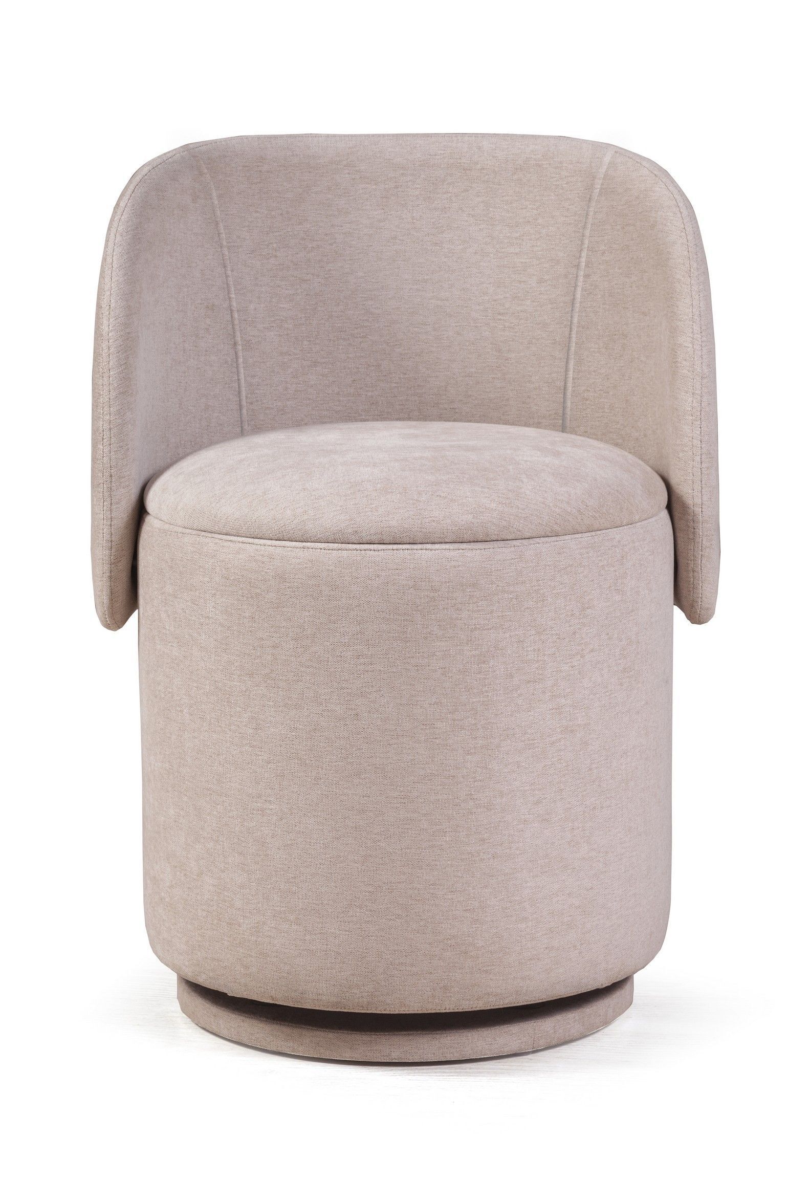 Поворотное основание (360 градусов) делает пуф удобным в использовании – не нужно двигать его целиком, чтобы повернуться. Это особенно актуально для туалетных столиков и небольших пространств.