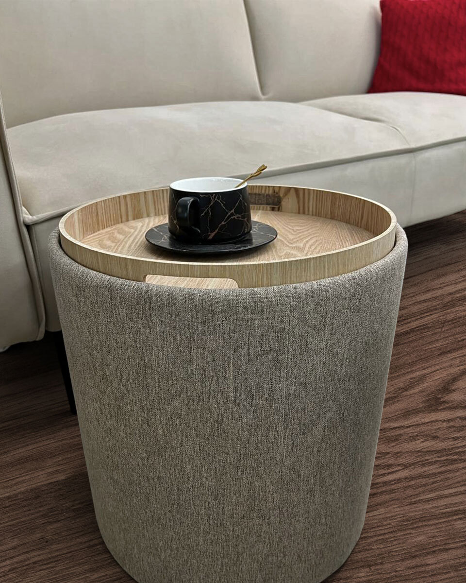 Пуф с ящиком Хюгге S рогожка серый двухсторонняя крышка
