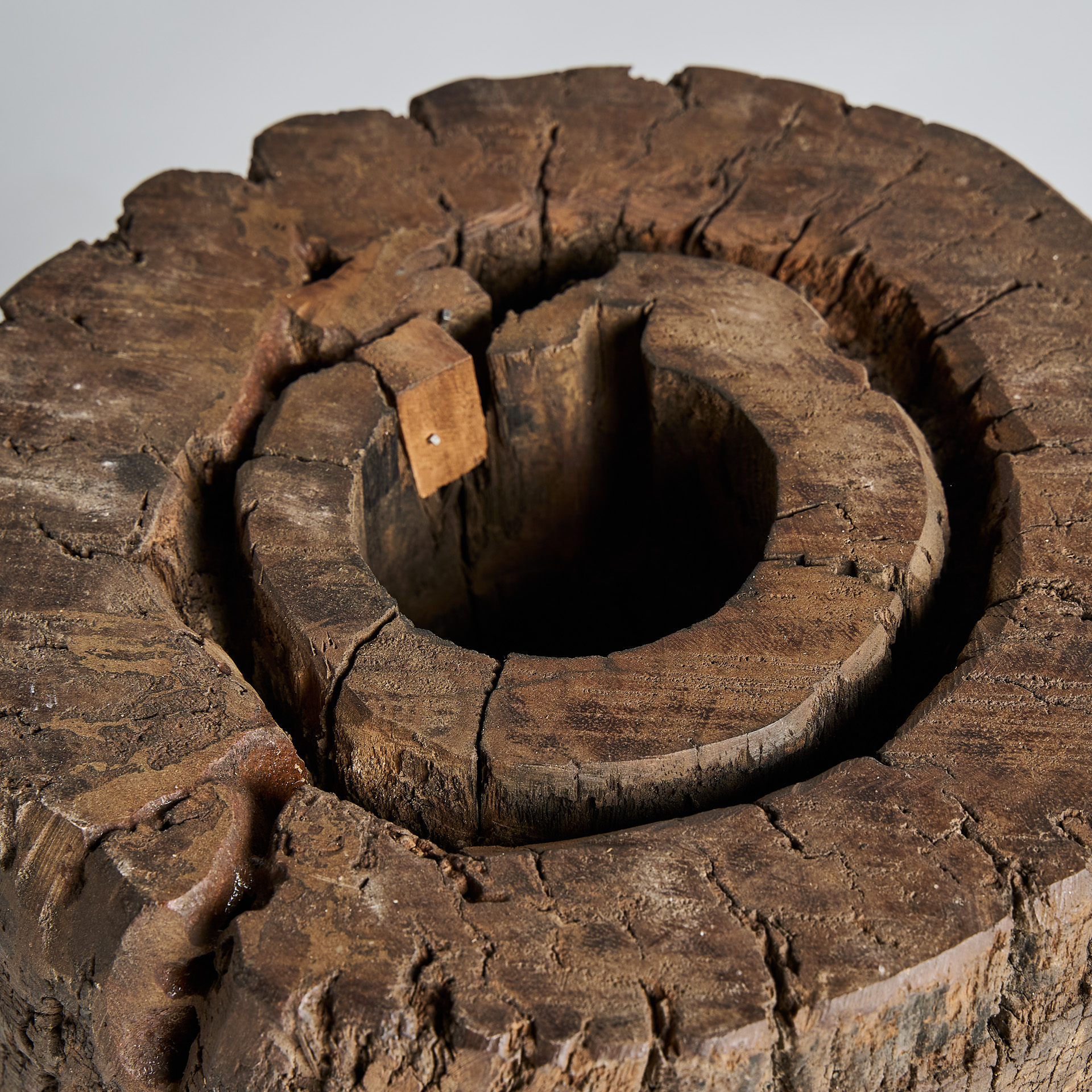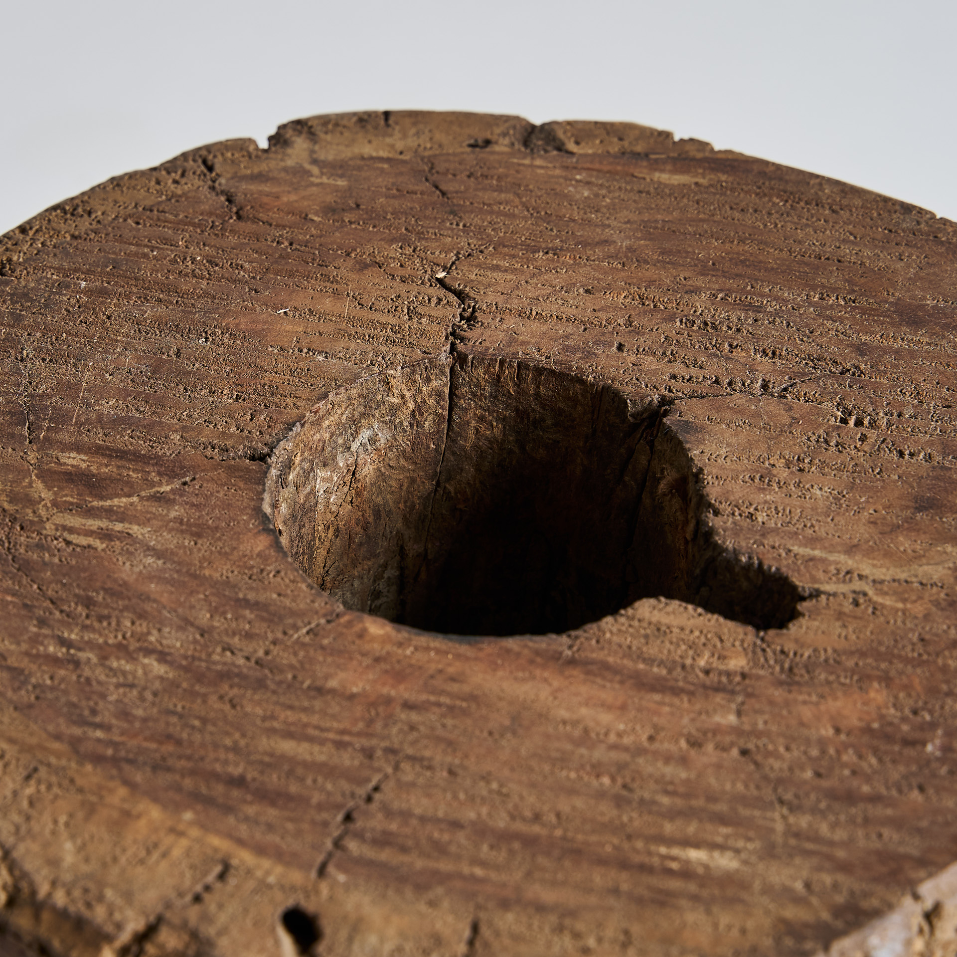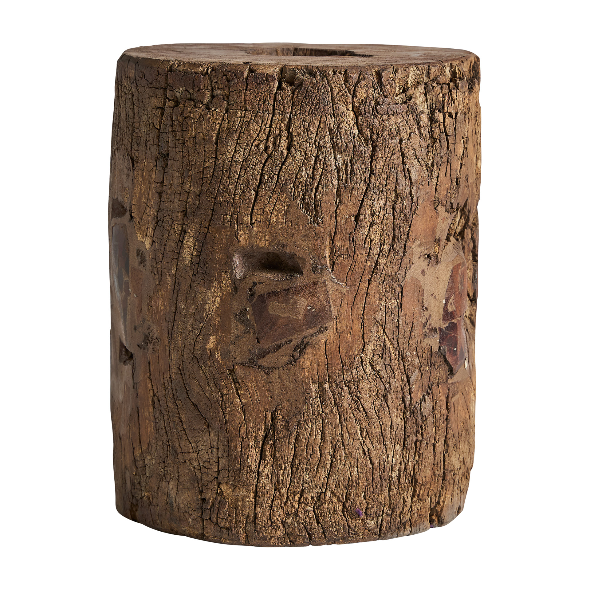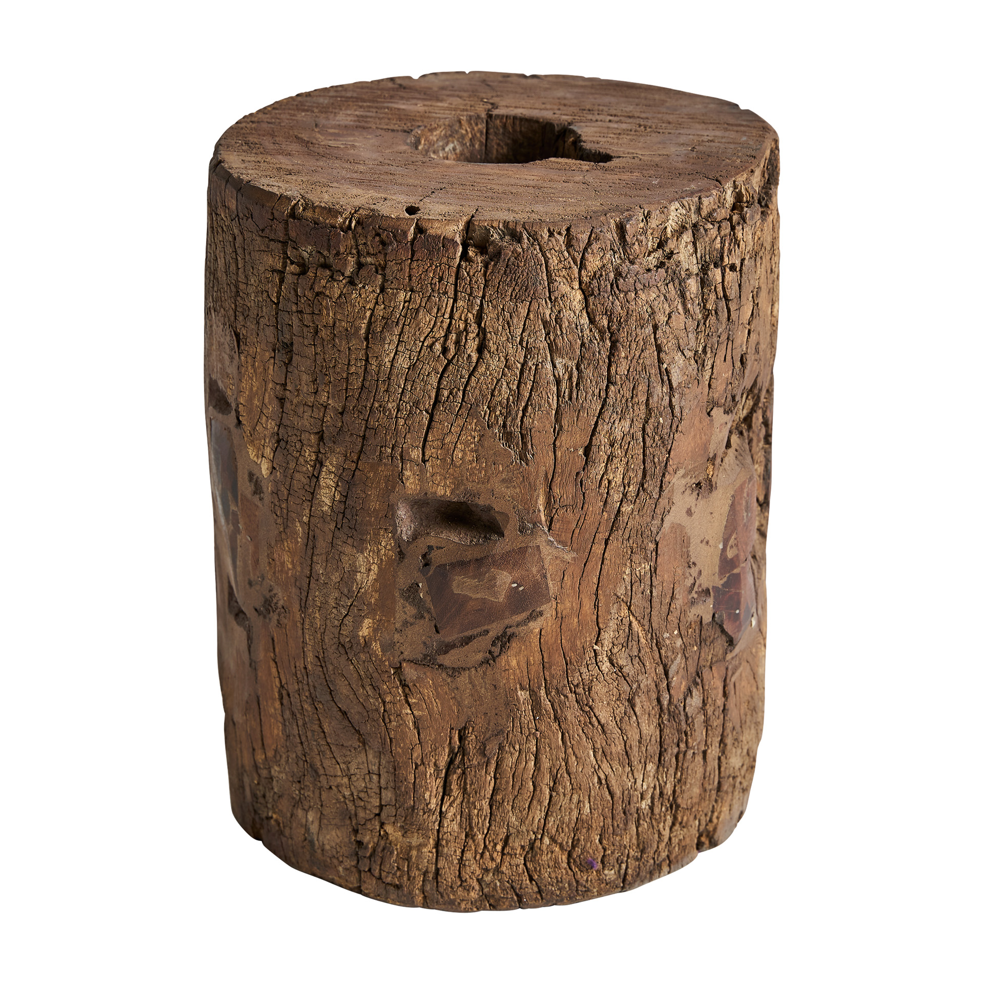 Пуф в этническом стиле, изготовленный из мангового дерева коричневого цвета с состаренной отделкой.