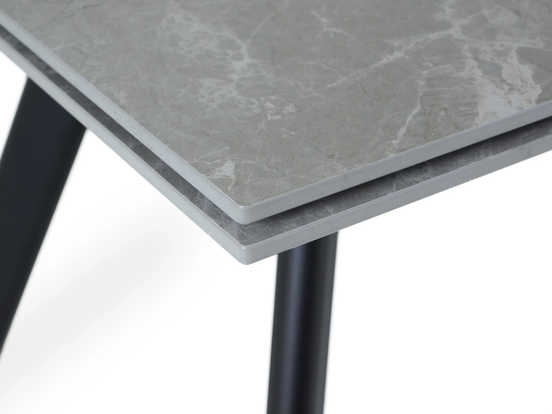 Материал столешницы - керамика толщиной 12 мм., материал основания – металл черного матового цвета.