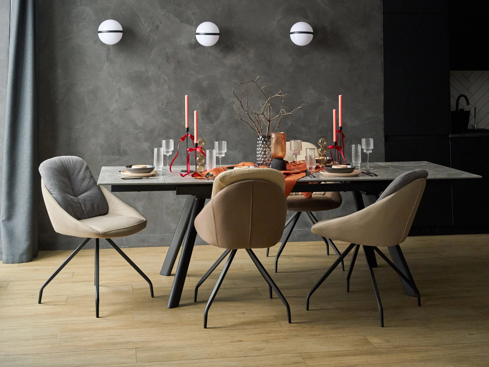 Столешница имеет естественный красивый узор, напоминающий текстуру натурального мрамора. Керамика обладает высокой термостойкостью. Можно смело ставить горячее без опасений повредить поверхность. Также она не впитывает влагу, на ней не образуется плесень, бактерии. Считается одним из самых экологичных и безопасных материалов для кухни. Будет радовать вас презентабельным видом долгое время. Длину стола легко увеличить со 160 см до 240. Для этого необходимо просто разложить скрытые боковые элементы. Стол с трансформацией отличается большой вместимостью и возможностью комфортно разместить гостей. Продуманный дизайн стола Bronte идеально подходит как для городских интерьеров в индустриальном духе, так и для загородных домов с эстетикой натуральных материалов.