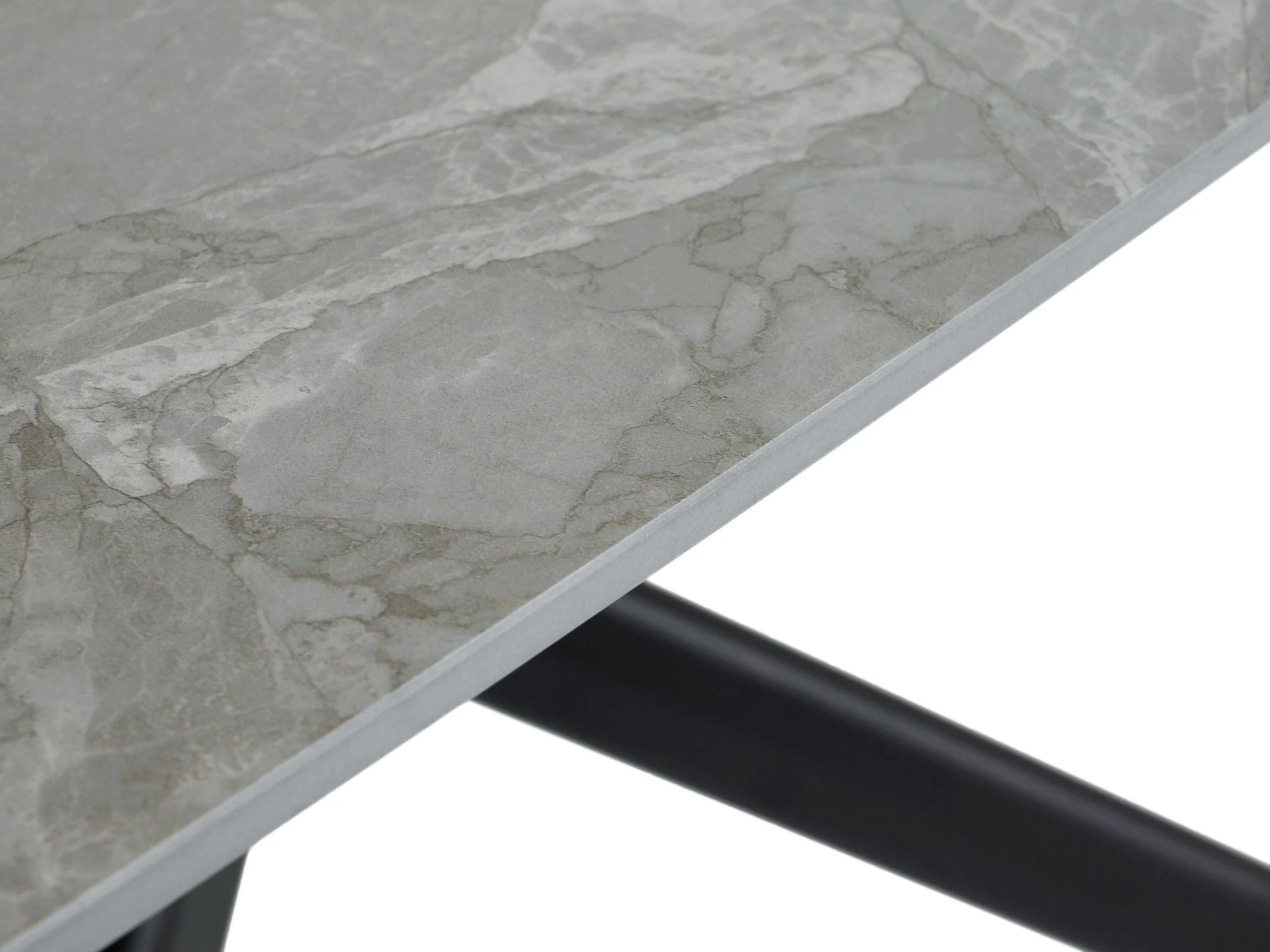 Материал столешницы - керамика толщиной 12 мм., материал основания – металл черного матового цвета.