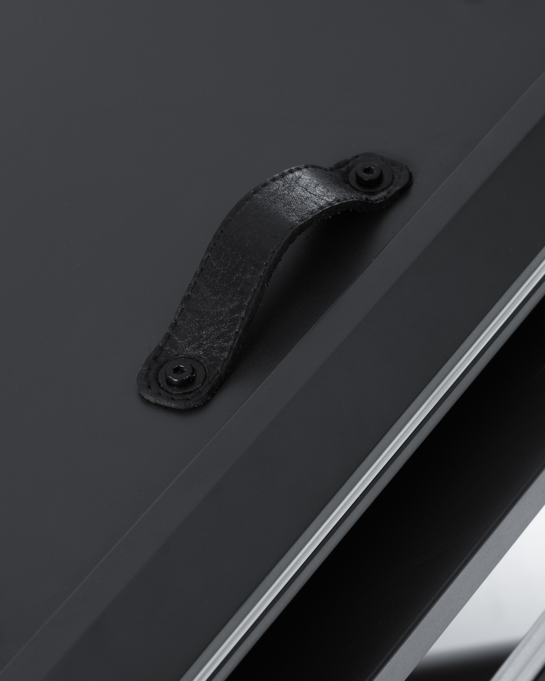 В коллекции Theone также присутствует стол с покрытием из черного матового стекла.