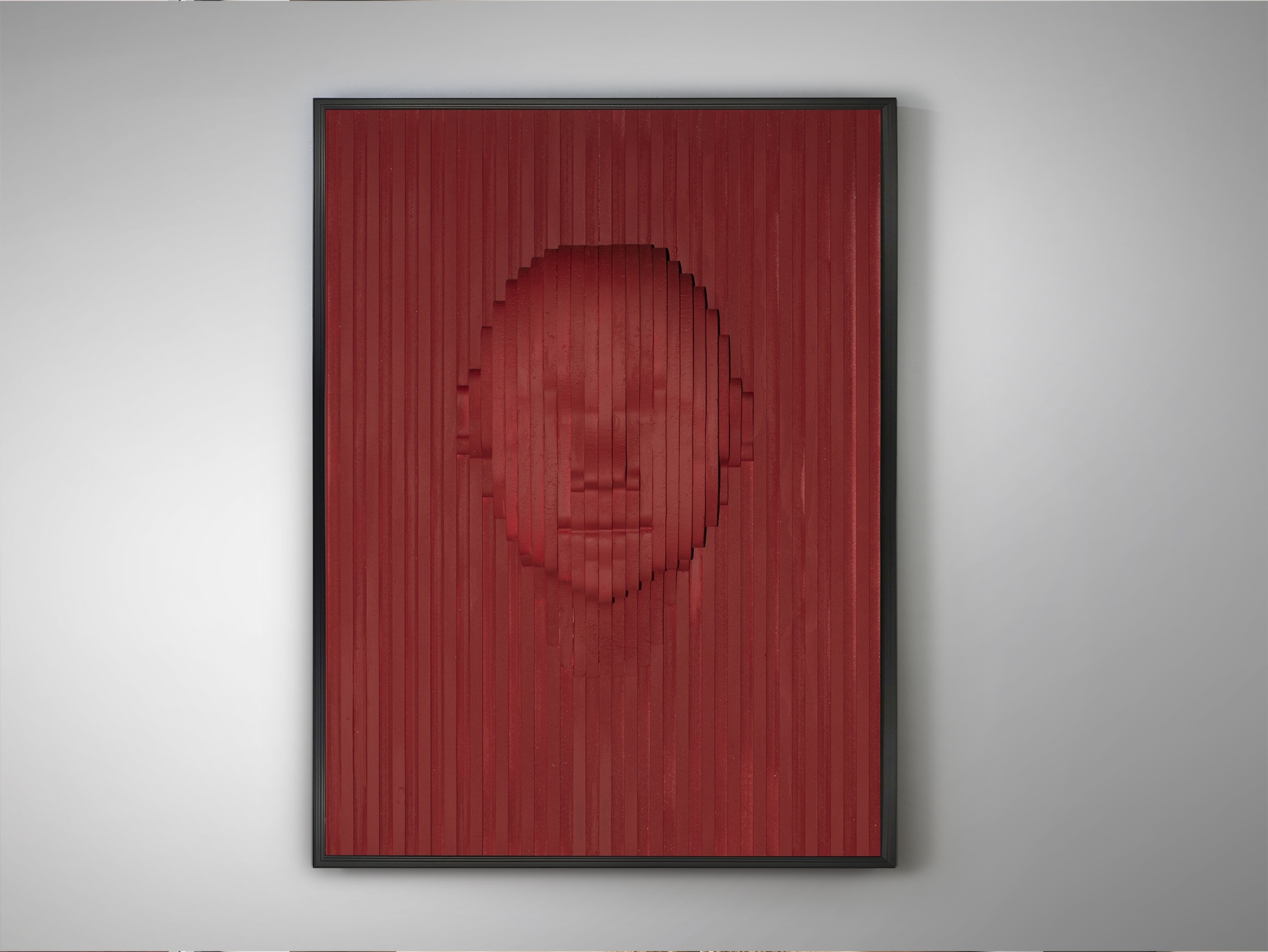 Барельеф из полистирола и МДФ, красная отделка. Рамка из черного полистирола.