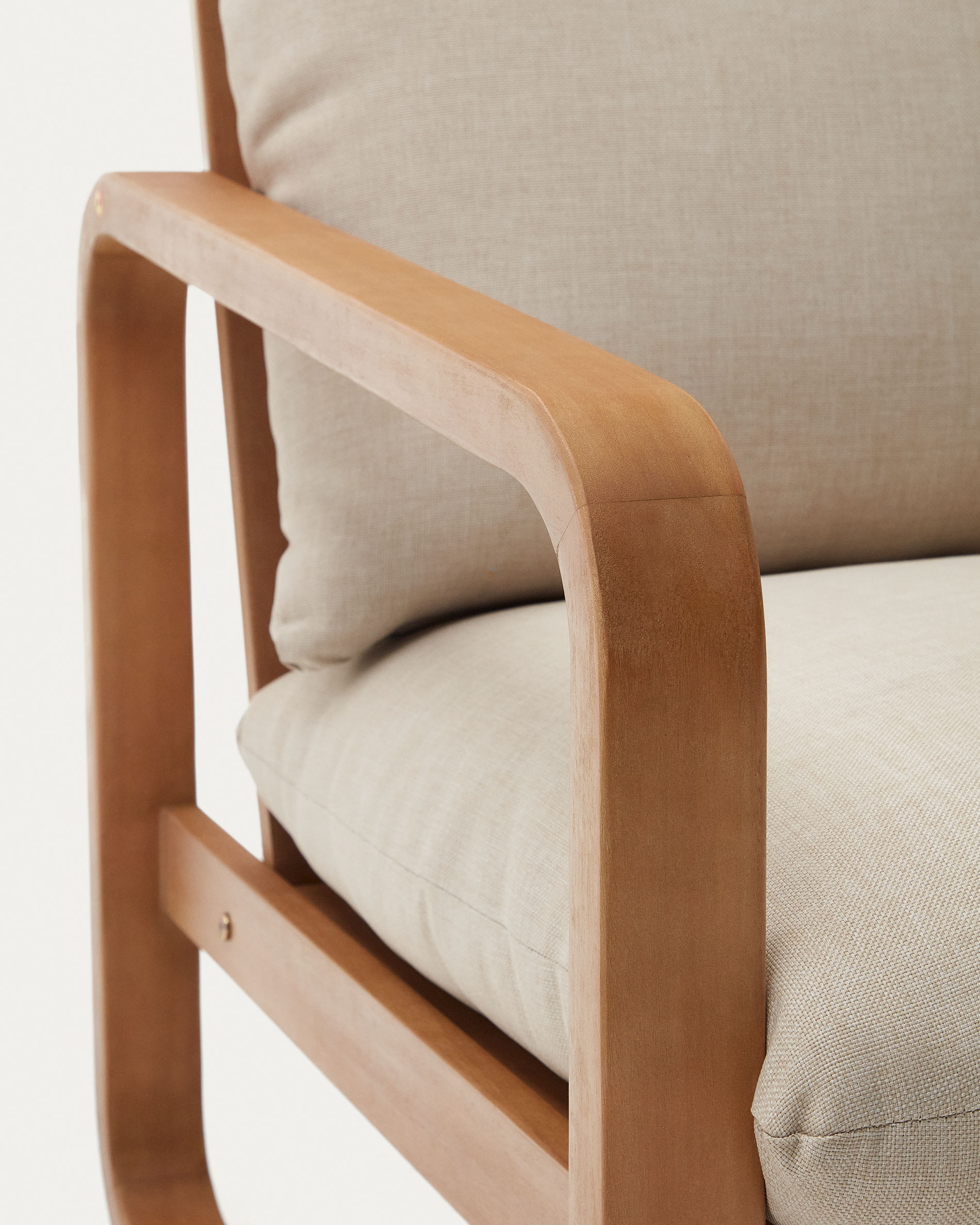 Диван полностью сделан из древесины эвкалипта, которая покрыта лаком для защиты от атмосферных воздействий.