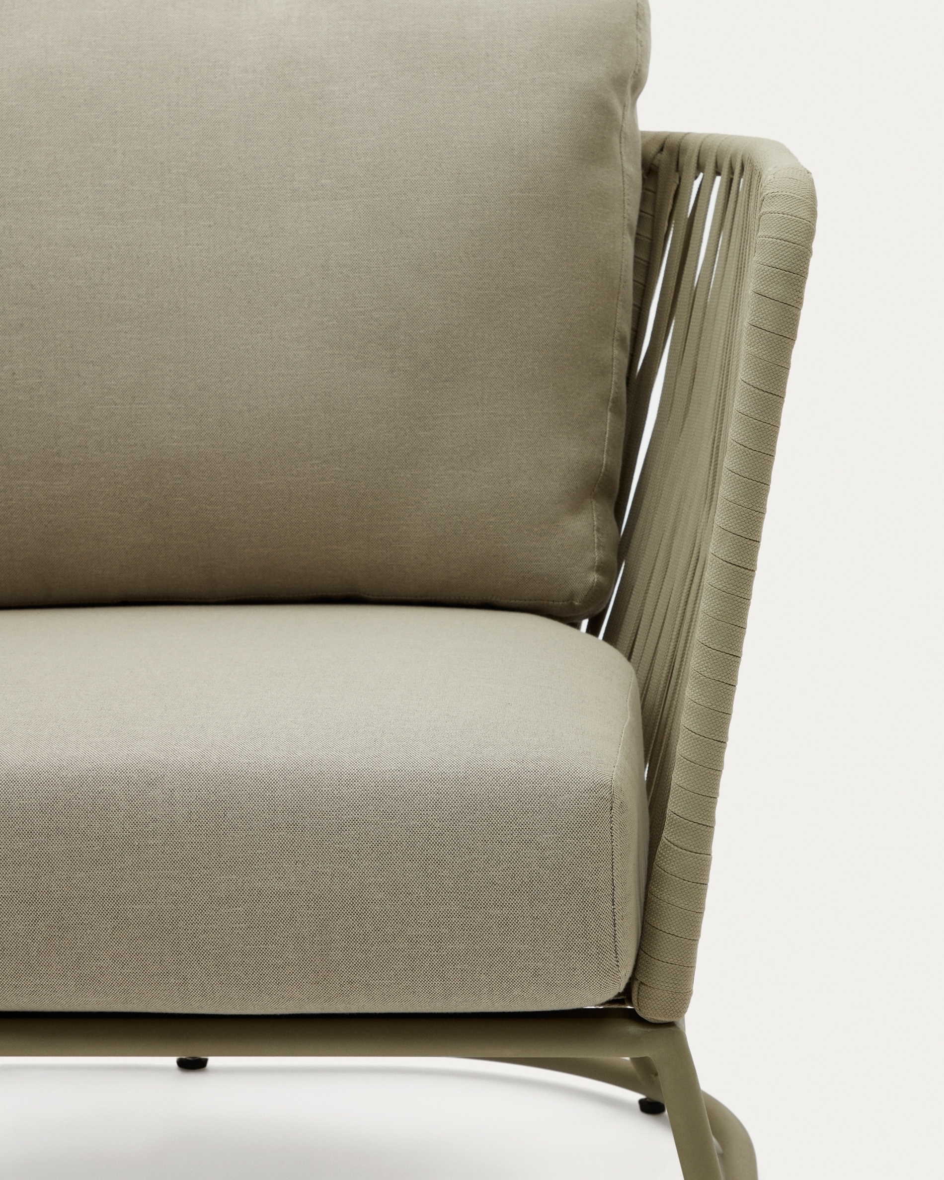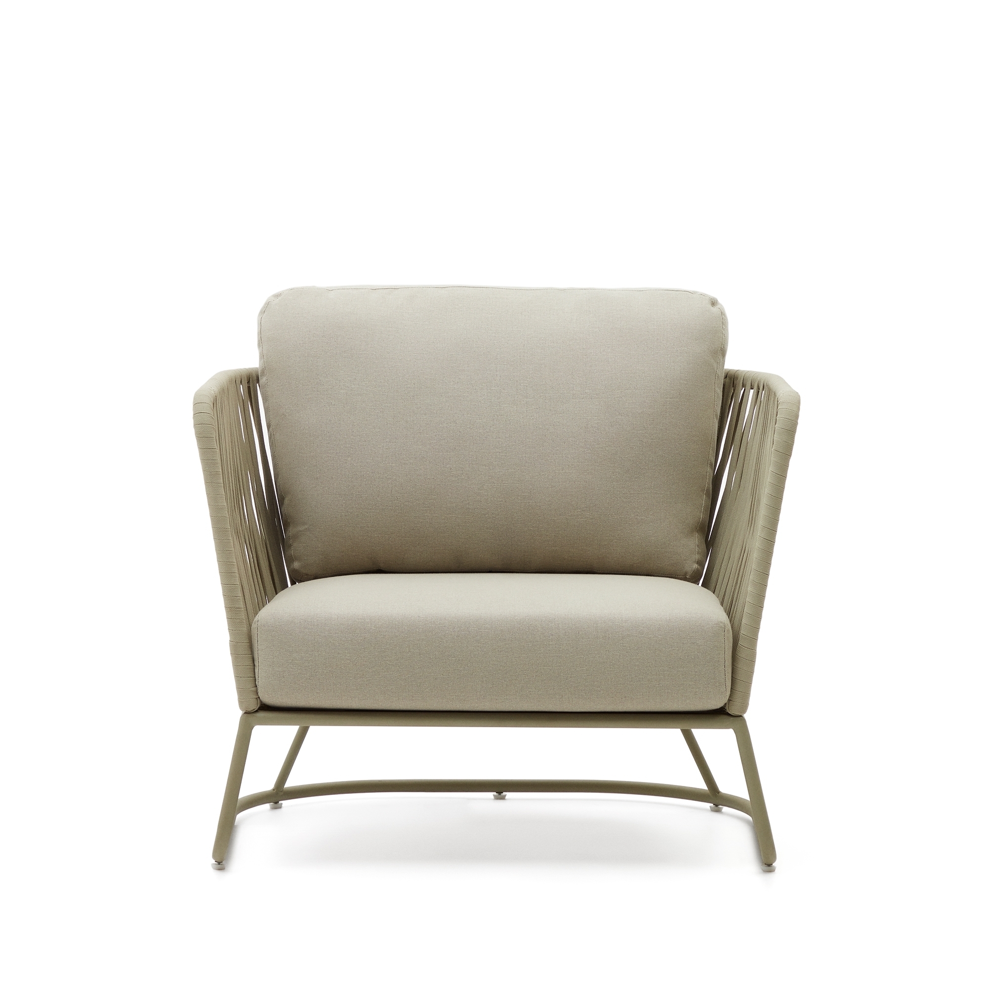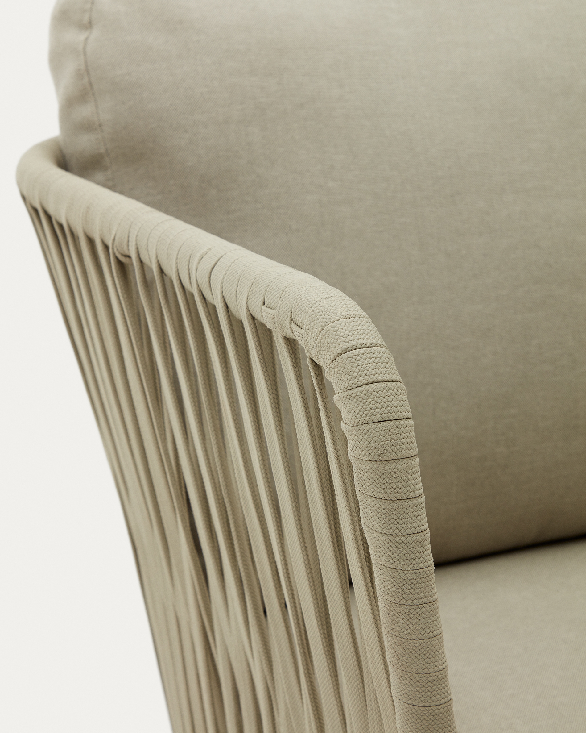 Saconca - идеальная коллекция для любого экстерьера. Создайте идеальный контраст на своей террасе или в саду с помощью этого кресла, сочетающего в себе натуральность шнура и современность стали.
