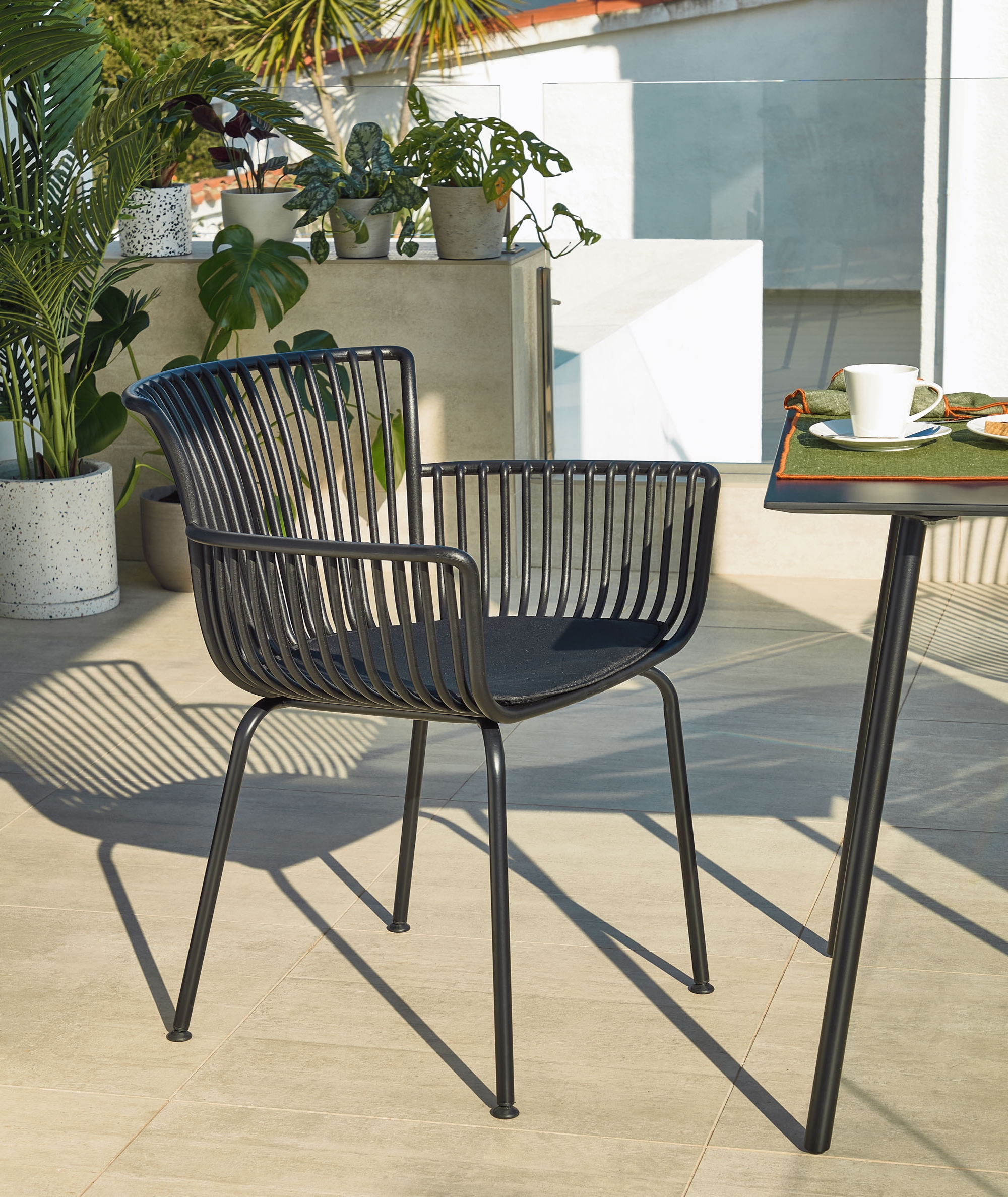 Садовый стул Surpika представлен в двух цветах – черном и бежевом.