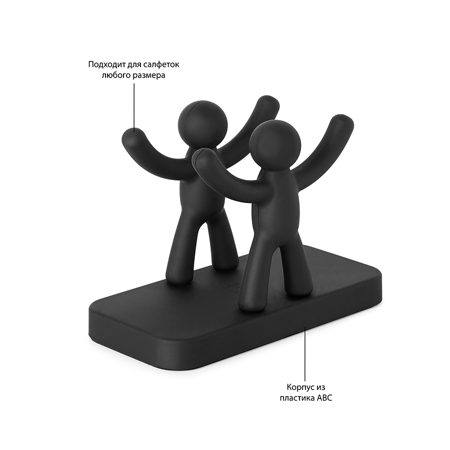Два трогательных человека плотно держат половину стандартной пачки бумажных салфеток. Замечательное дополнение к продуктам из серии Buddy, например к держателю полотенец, заглушке для раковины и емкости для заваривания.
