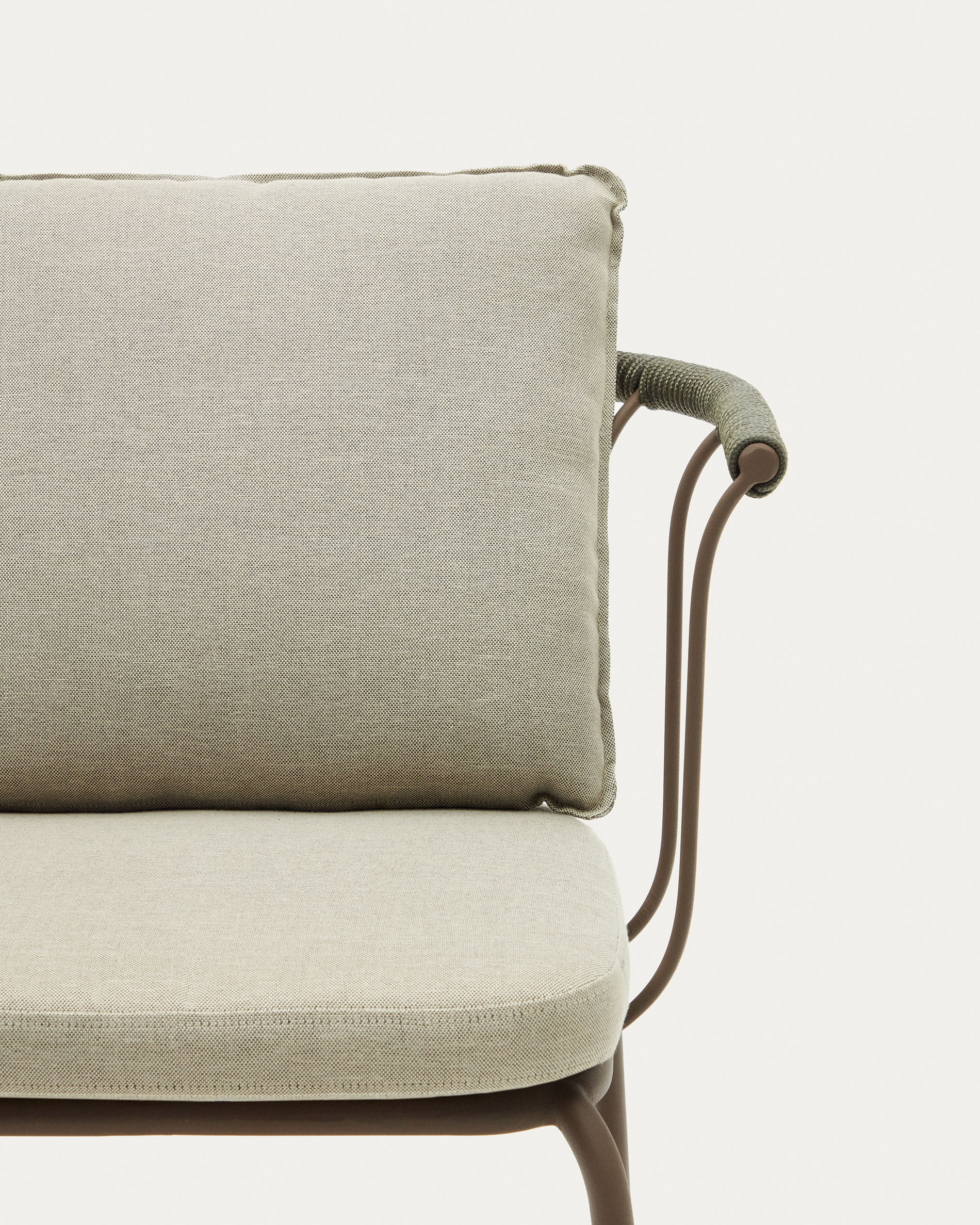 Спинка окантована прочной синтетической веревкой зеленого цвета.