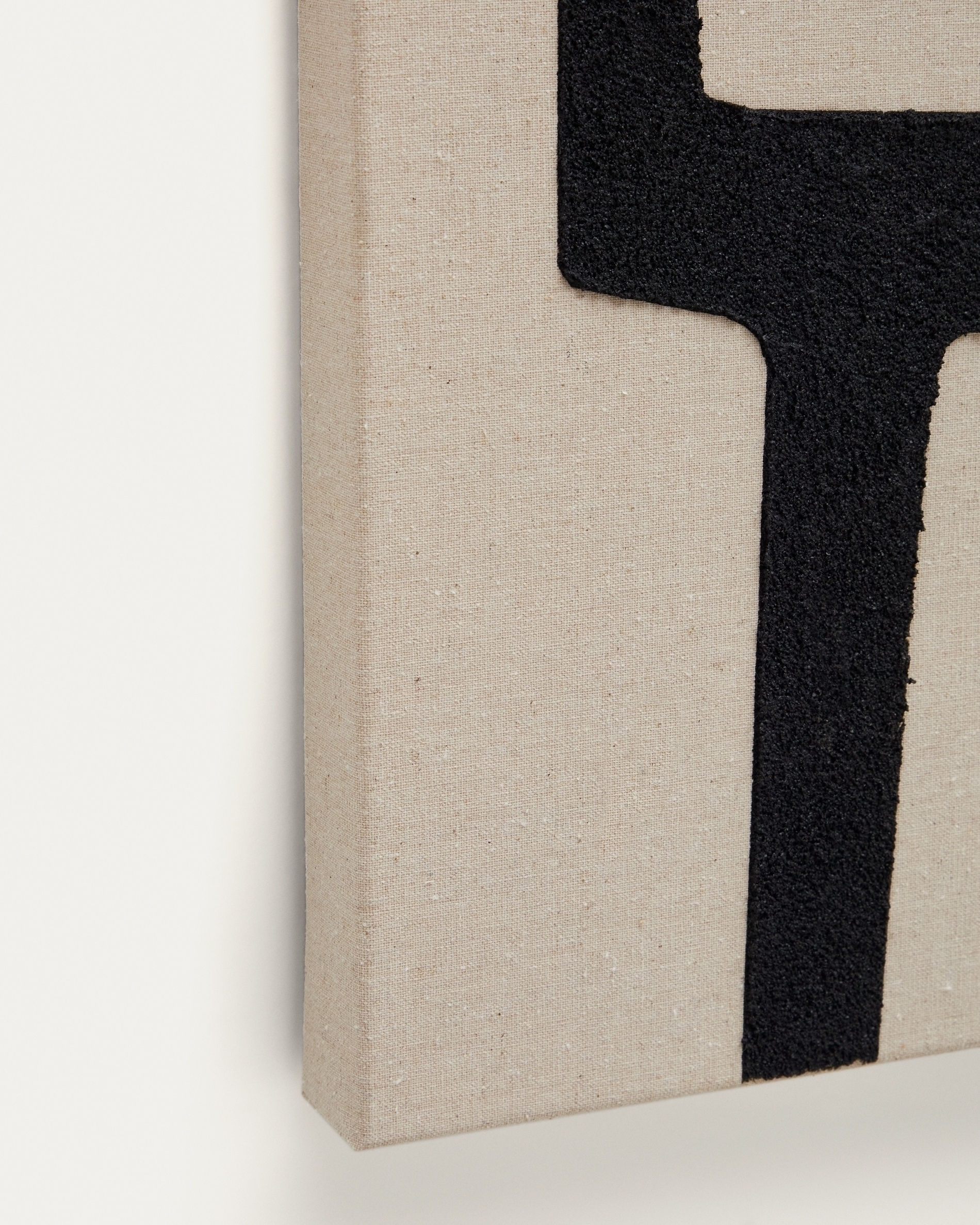 Картина имеет прямоугольную форму. Рисунок изображен на холсте стойкой, гипоаллергенной краской черного или темно-коричневого цвета (зависит от выбранного вами варианта).
