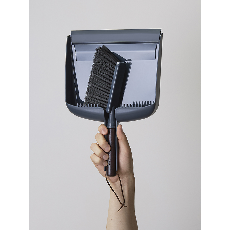 - Особенности дизайна обеспечивают надежную фиксацию щетки внутри совка для удобного и компактного хранения.