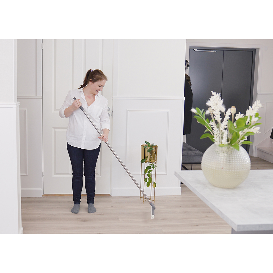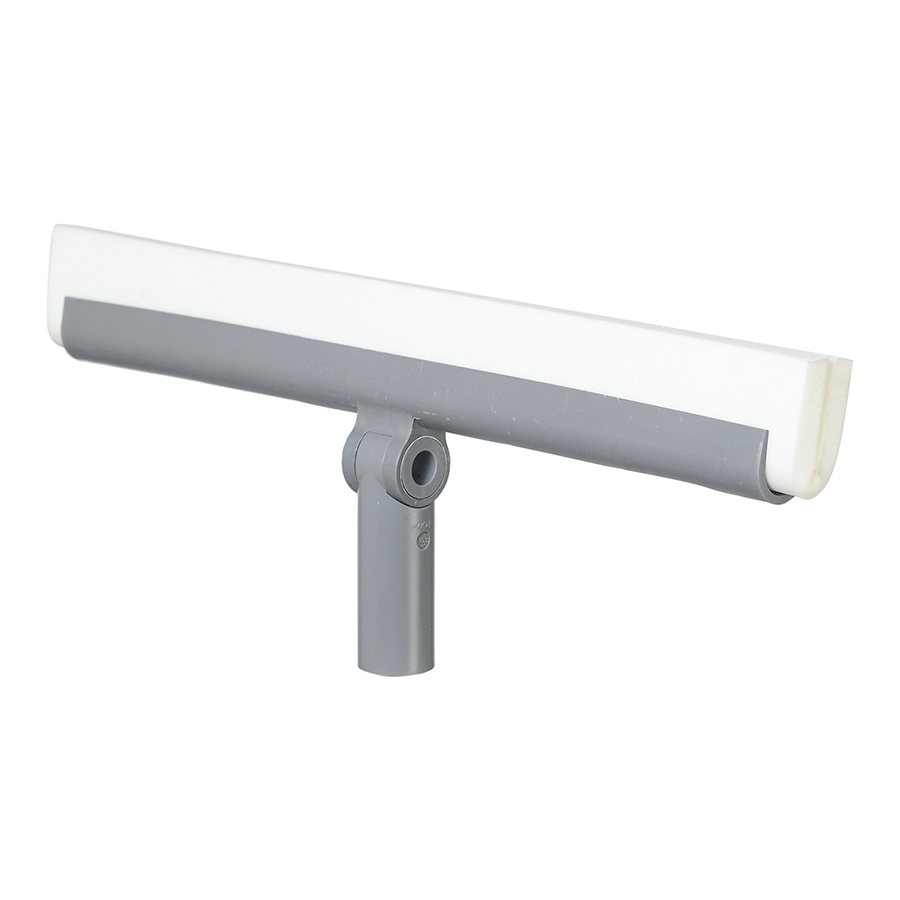 Швабра-скребок для пола состоит из прочного пластикового корпуса, в основе которого зафиксирован сквидж для воды. Он представлен в виде двойной полоски, выполненной из плотного износостойкого материала. Швабра отлично удаляет воду и моющие средства даже в стыках напольных покрытий. Швабра идеально подходит для уборки в ванной комнате, на кухне, на террасе или у бассейна. Телескопическая ручка приобретается отдельно. Скребок легко крепится к ней с помощью защелкивающегося механизма.